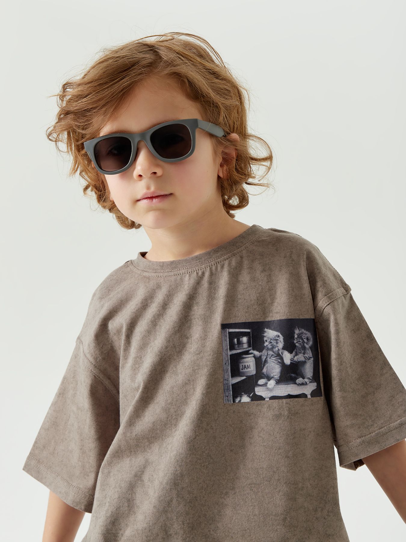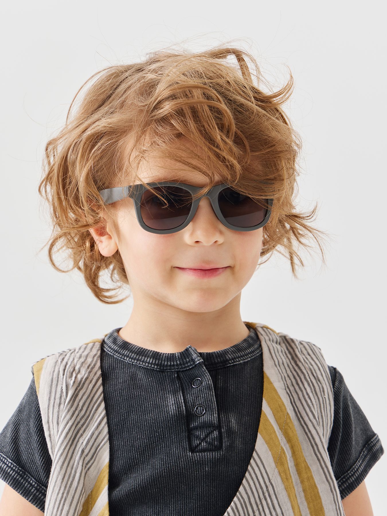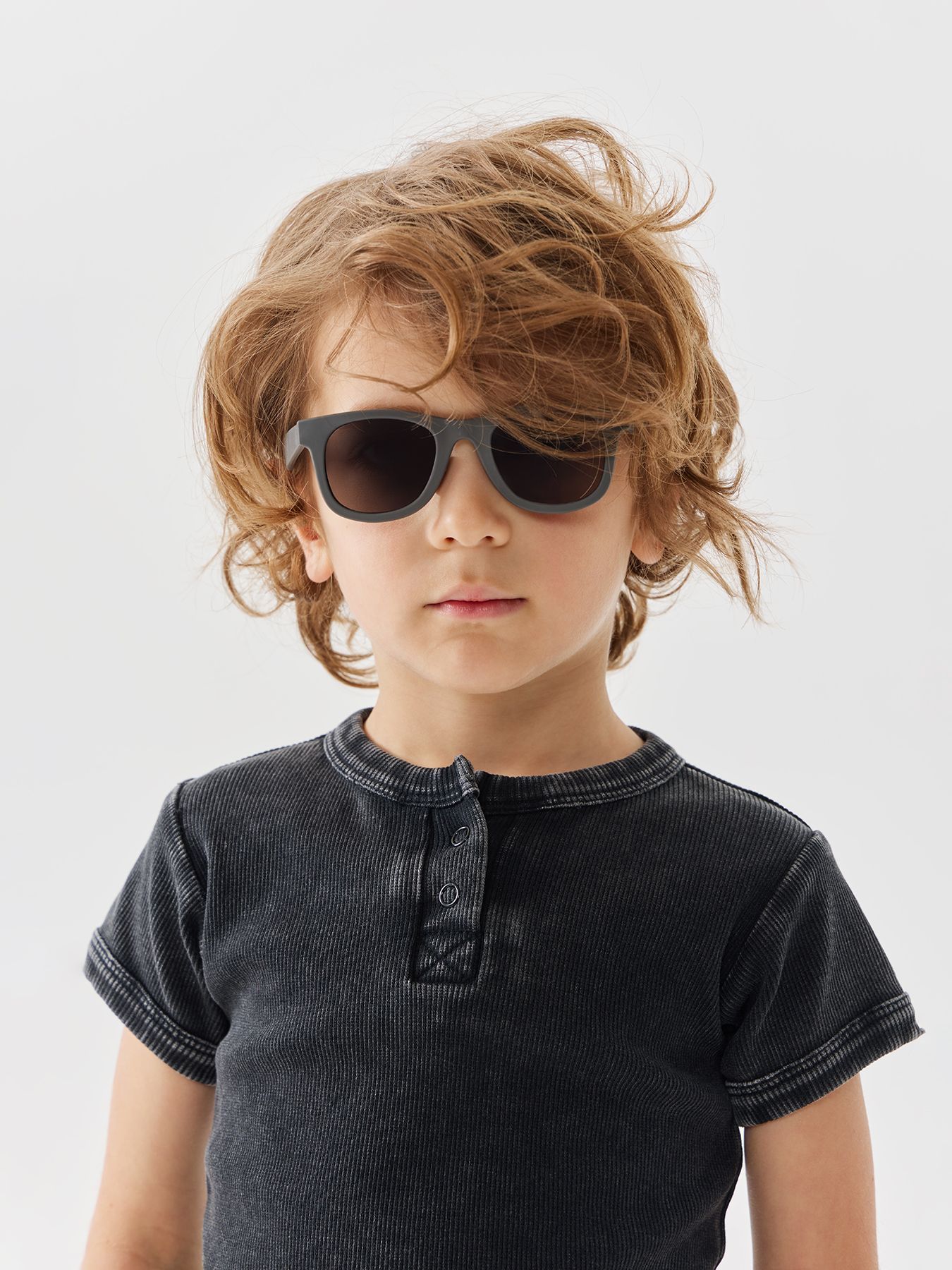 Солнцезащитные очки универсальной формы подойдут для любого овала лица. Тёмно-серые линзы выглядят стильно и обладают максимальным уровнем защиты от ультрафиолетового излучения – UV400. Оправа из резины приятна на ощупь, а гнущиеся дужки позволят надёжно зафиксировать очки на голове.