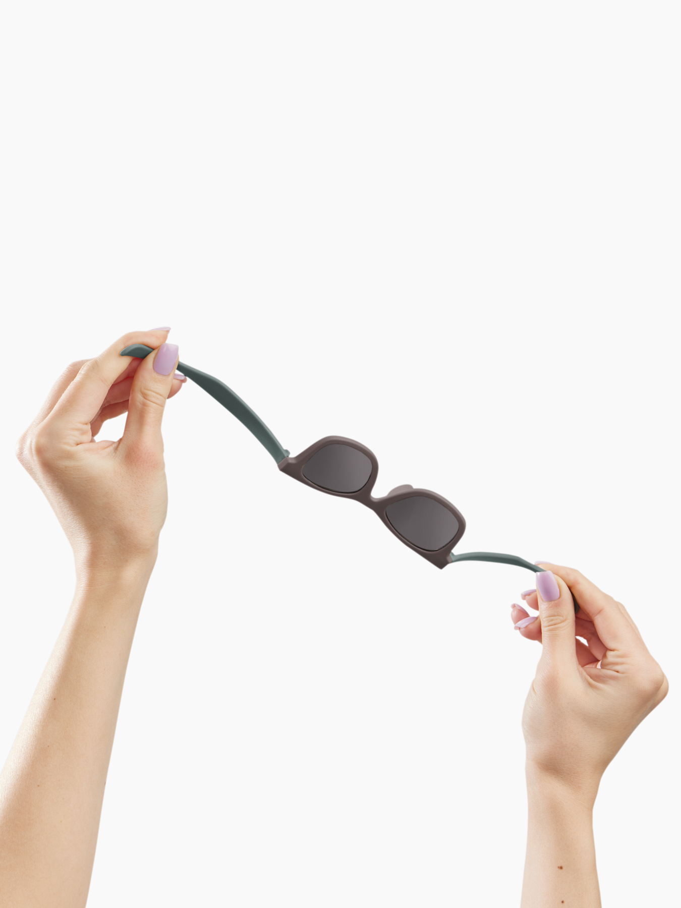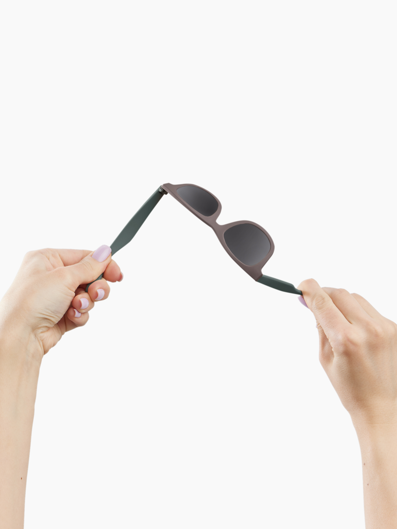 Солнцезащитные очки универсальной формы подойдут для любого овала лица. Тёмно-серые линзы выглядят стильно и обладают максимальным уровнем защиты от ультрафиолетового излучения – UV400. Оправа из резины приятна на ощупь, а гнущиеся дужки позволят надёжно зафиксировать очки на голове.