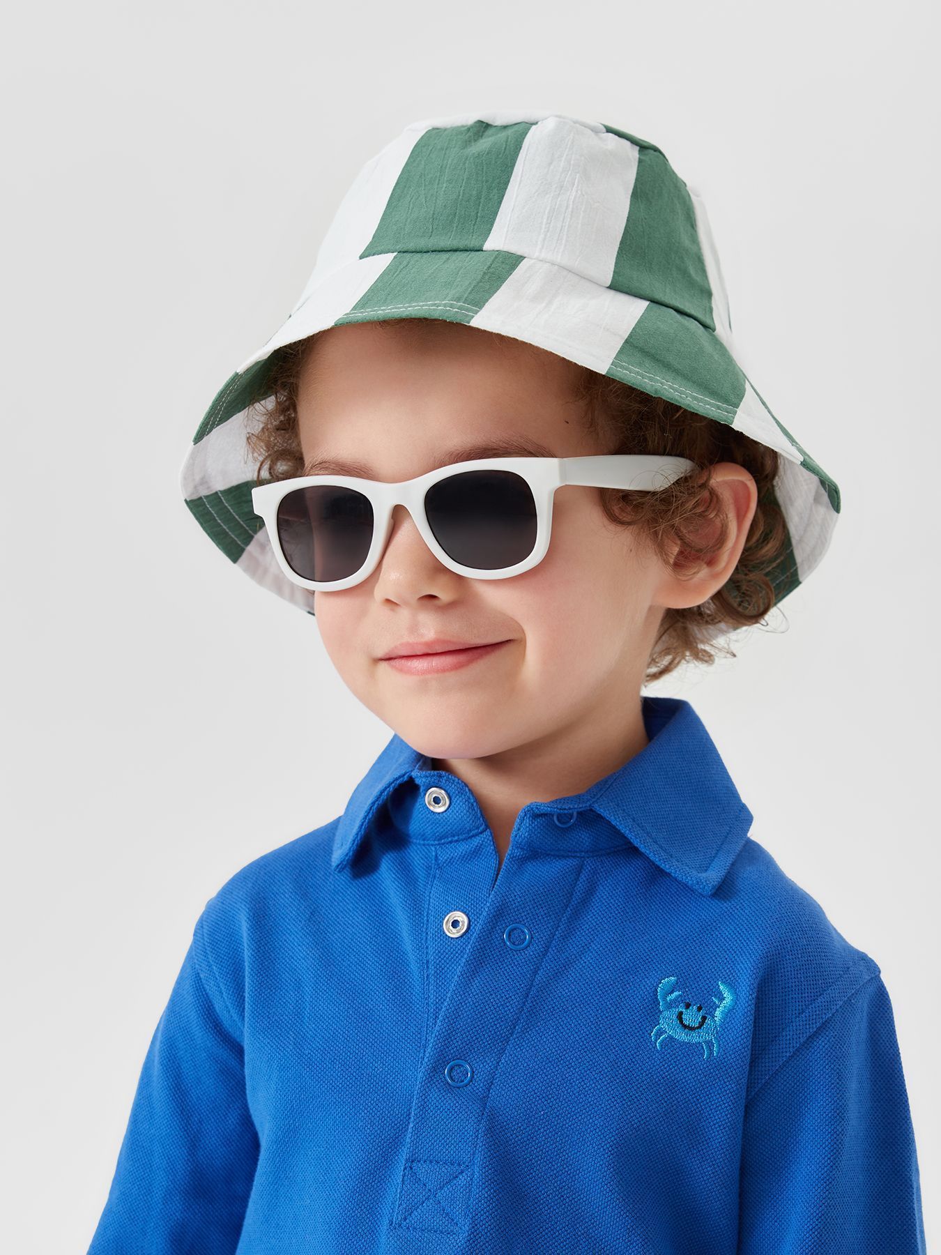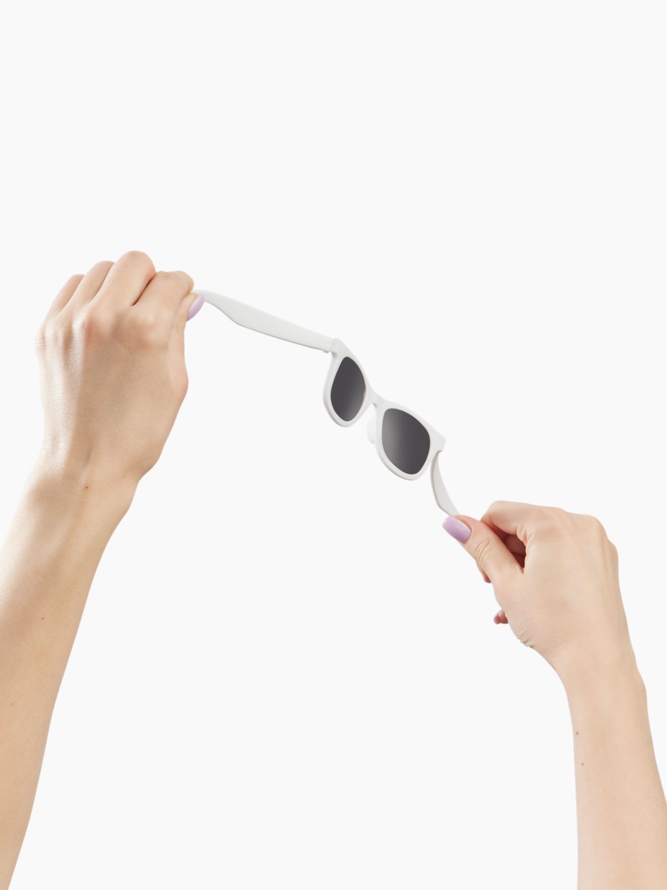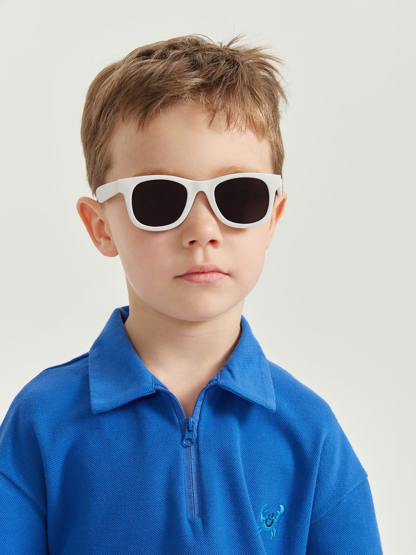 Солнцезащитные очки универсальной формы подойдут для любого овала лица. Тёмно-серые линзы выглядят стильно и обладают максимальным уровнем защиты от ультрафиолетового излучения – UV400. Оправа из резины приятна на ощупь, а гнущиеся дужки позволят надёжно зафиксировать очки на голове.