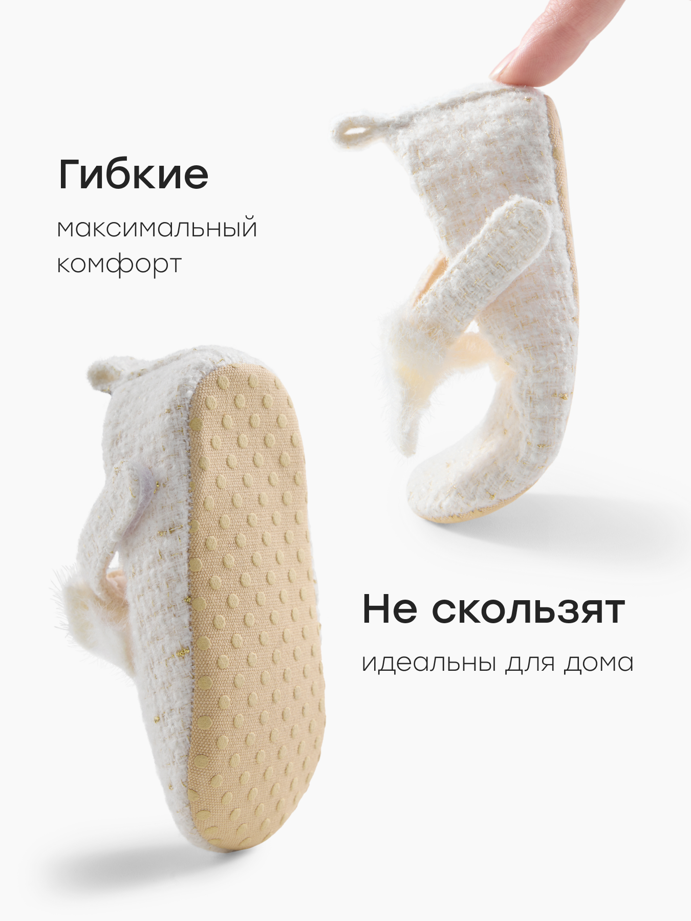 • Гибкая противоскользящая подошва — безопасные и удобные при первых шагах