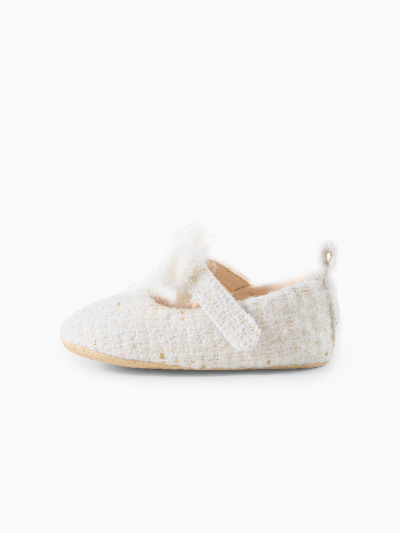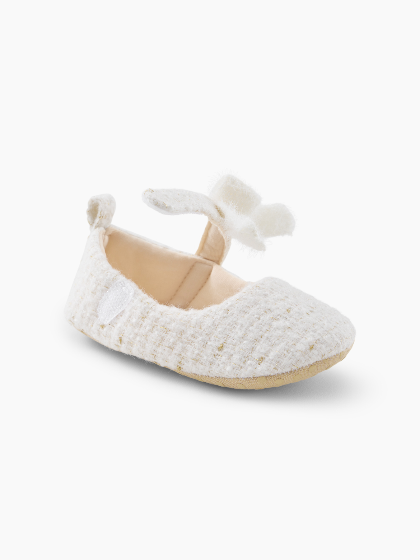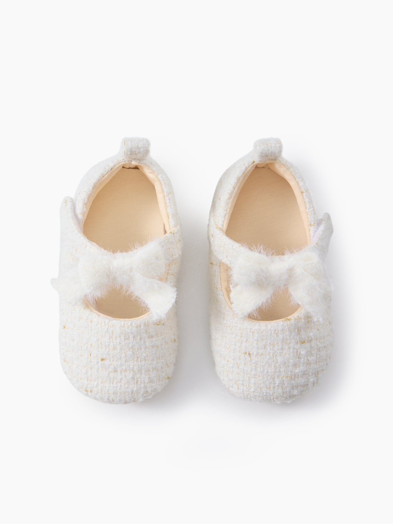 Пинетки Happy Baby — лёгкие и мягкие пинетки из натурального хлопка с изящным золотистым переплетением. Такие пинетки нарядные подойдут для девочки и станут отличным выбором для праздников, фотосессий или уютных домашних дней.