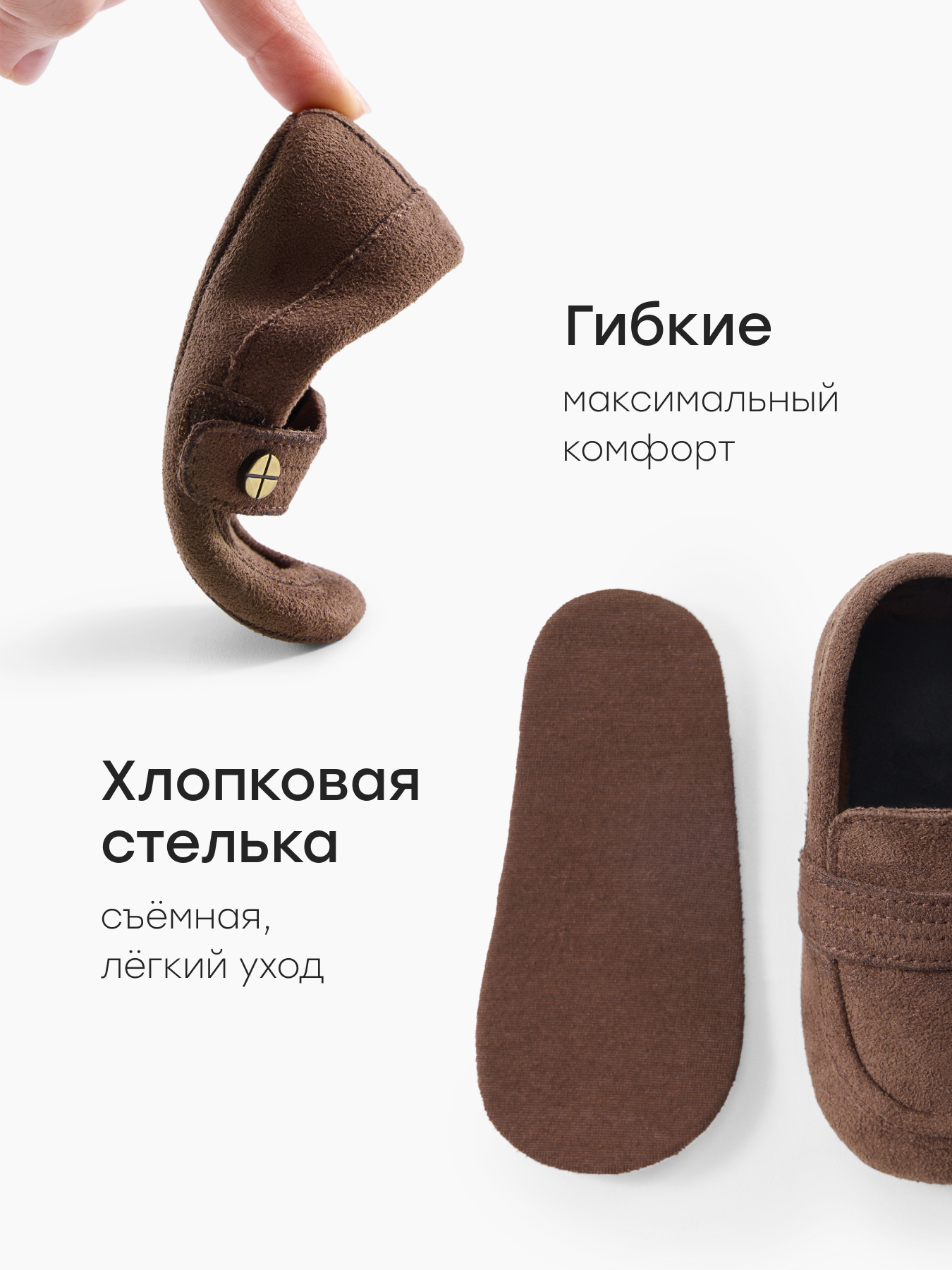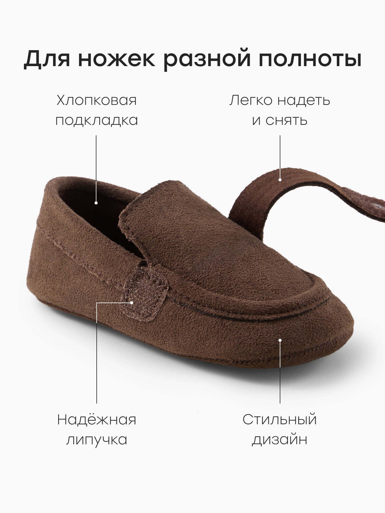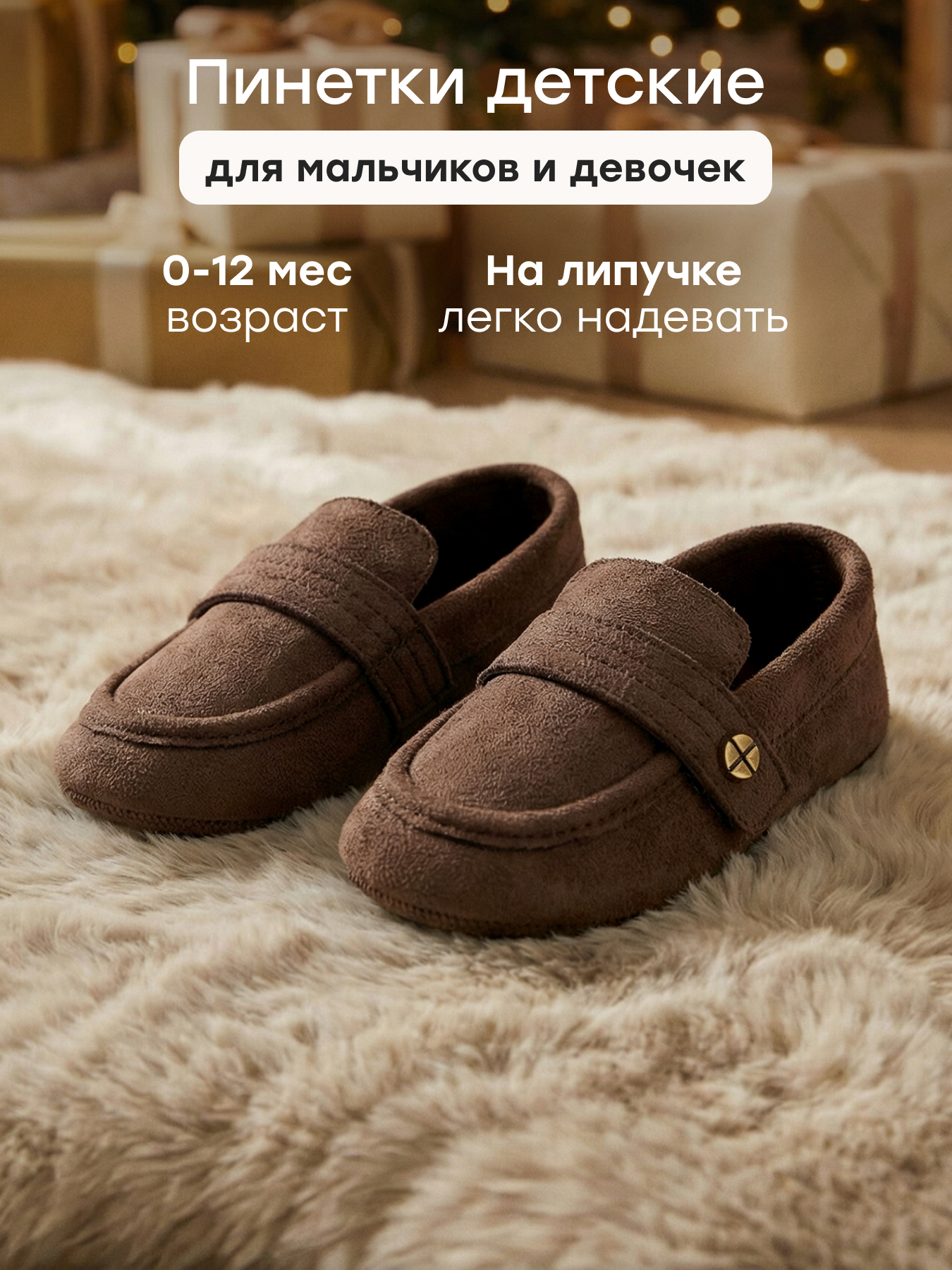 Пинетки Happy Baby — мягкая и удобная обувь для малышей, выполненная из приятной на ощупь искусственной замши. Благодаря лёгкой конструкции и гибкой подошве эти пинетки детские обеспечивают комфорт при каждом движении ребёнка. Стильный дизайн в виде мини-мокасин для малыша делает модель универсальной — пинетки подойдут как для девочки, так и для мальчика, отлично дополнят праздничный наряд или повседневный домашний образ.