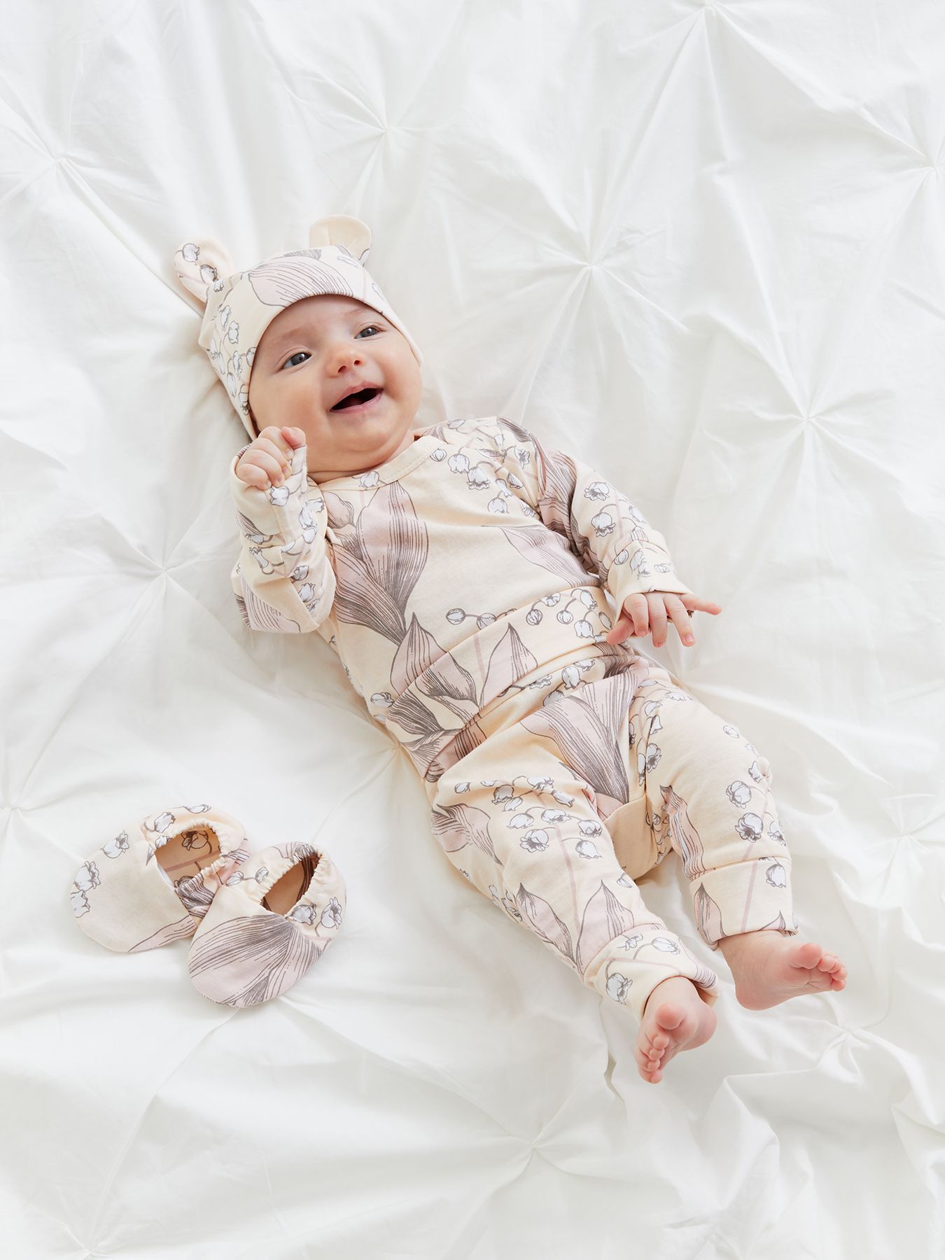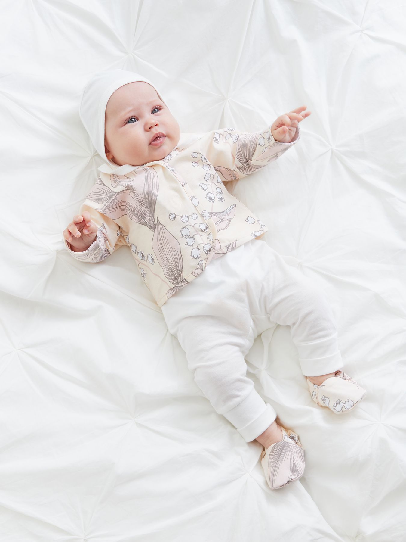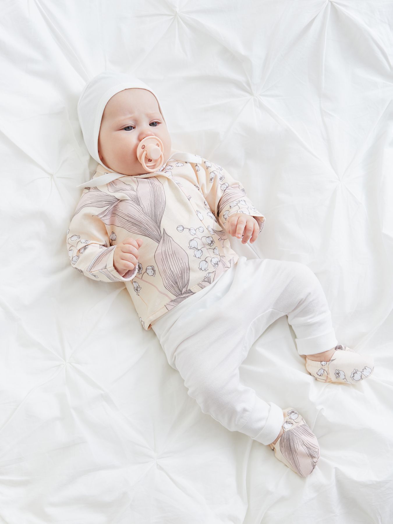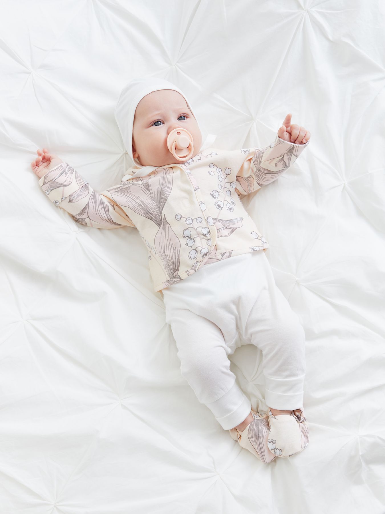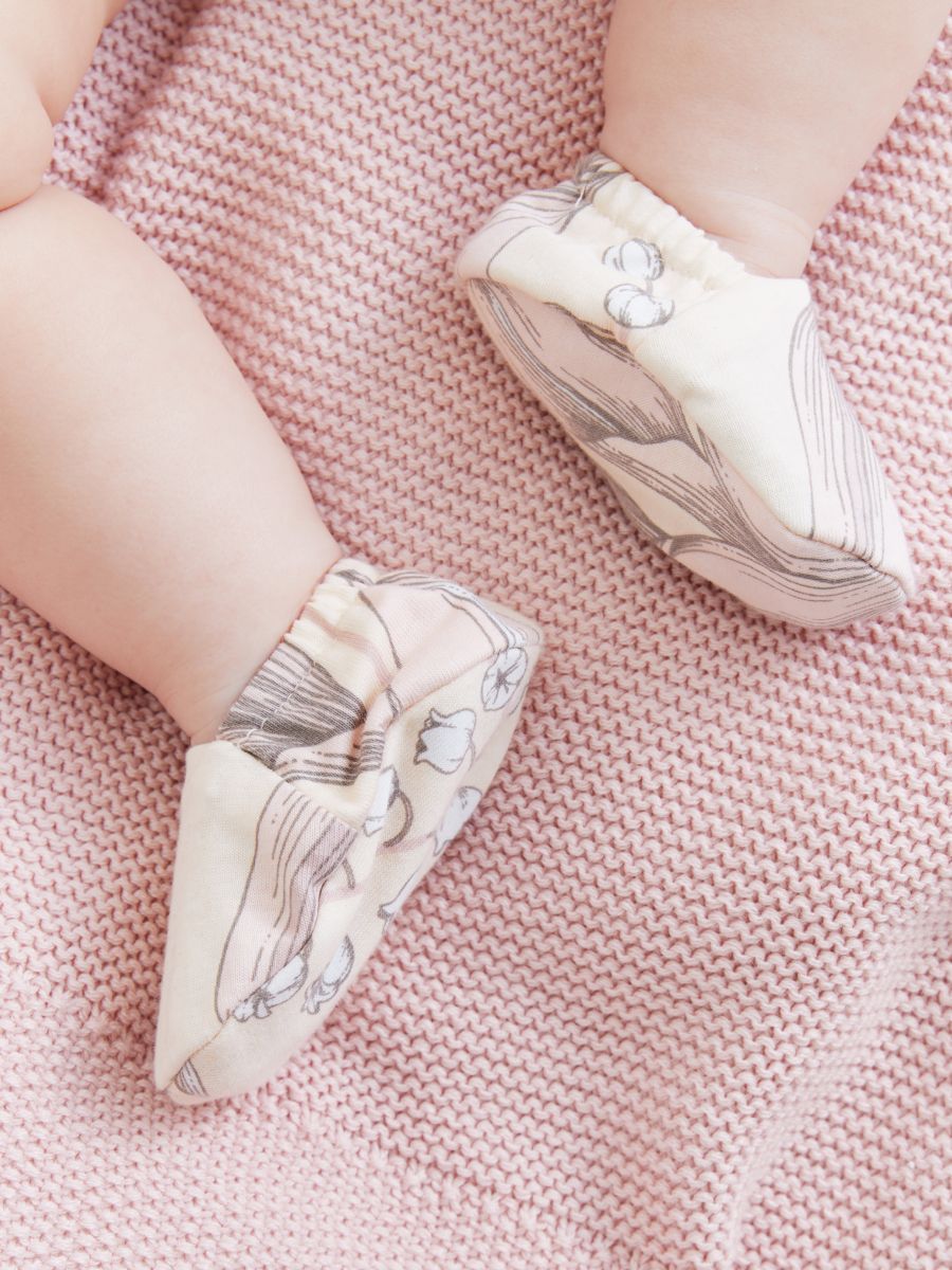 Уютные пинетки согреют ножки малыша с самого рождения. Продуманная конструкция обеспечивает правильную форму и высоту пинеток с учетом особенностей строения детской стопы, а мягкая резиночка надежно фиксирует пинетки на ноге, поэтому в них удобно спать и двигаться. Нежный дизайн поможет создать самый милый образ новорожденного для любого случая и первых фотосессий.
