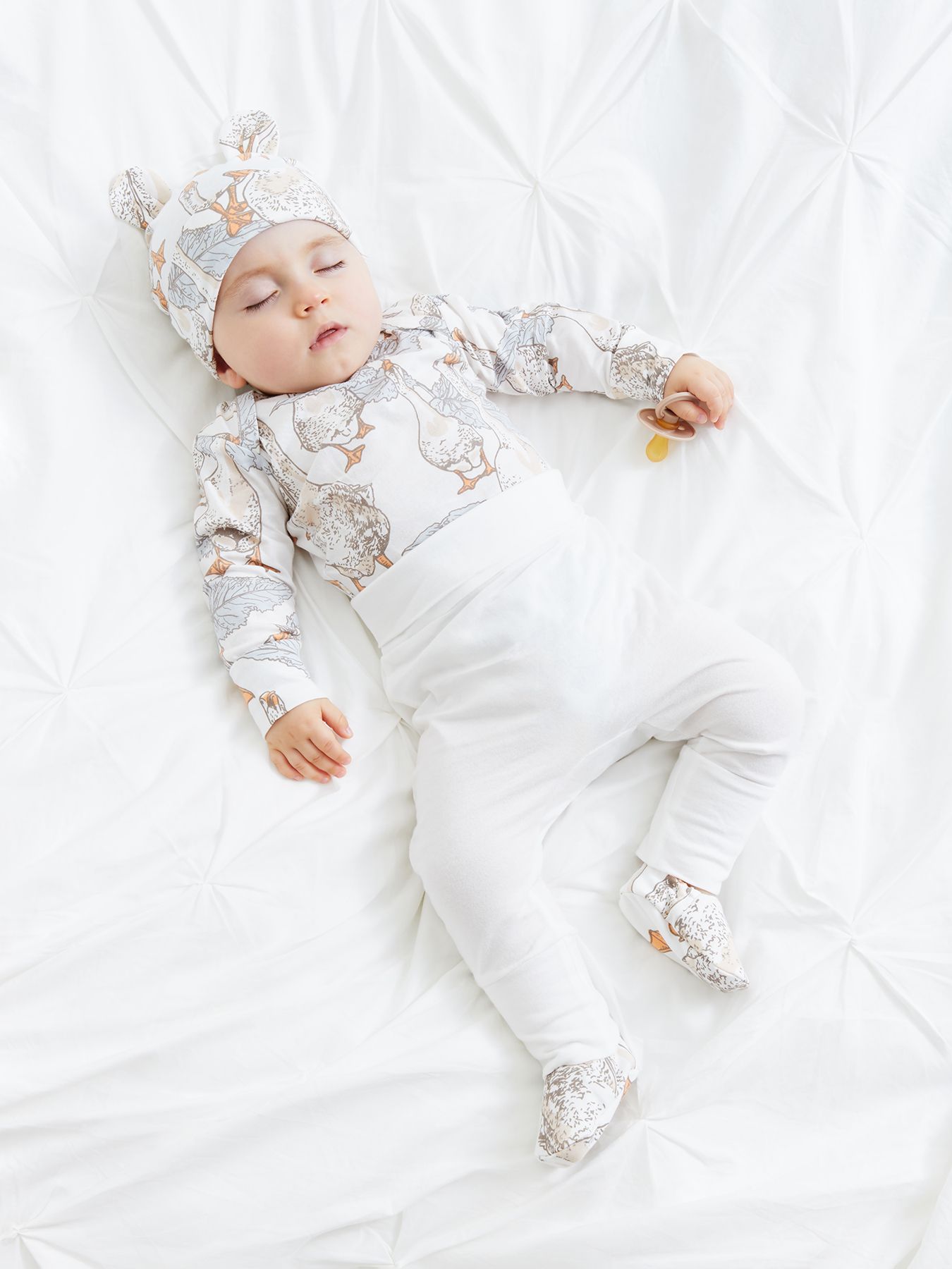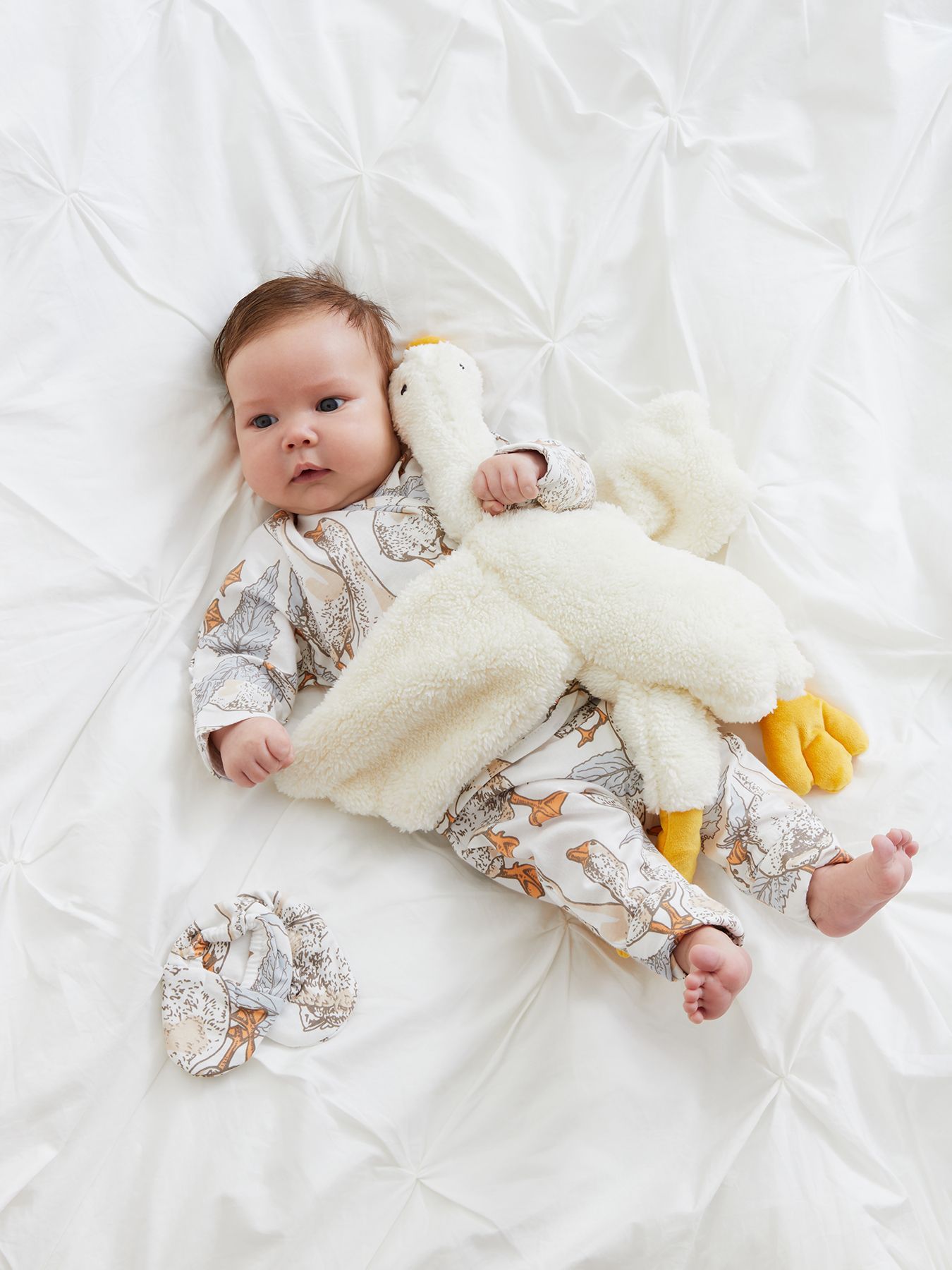 Уютные пинетки согреют ножки малыша с самого рождения. Продуманная конструкция обеспечивает правильную форму и высоту пинеток с учетом особенностей строения детской стопы, а мягкая резиночка надежно фиксирует пинетки на ноге, поэтому в них удобно спать и двигаться. Нежный дизайн поможет создать самый милый образ новорожденного для любого случая и первых фотосессий.