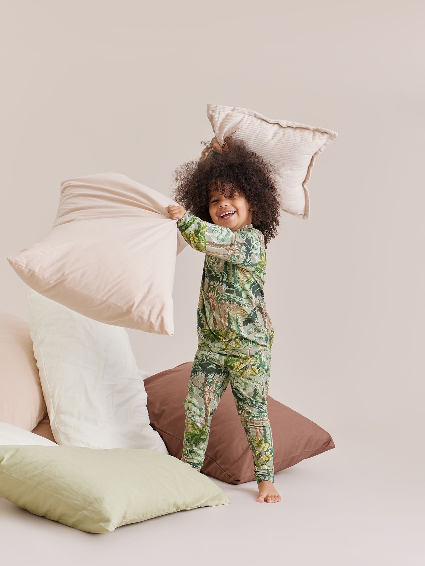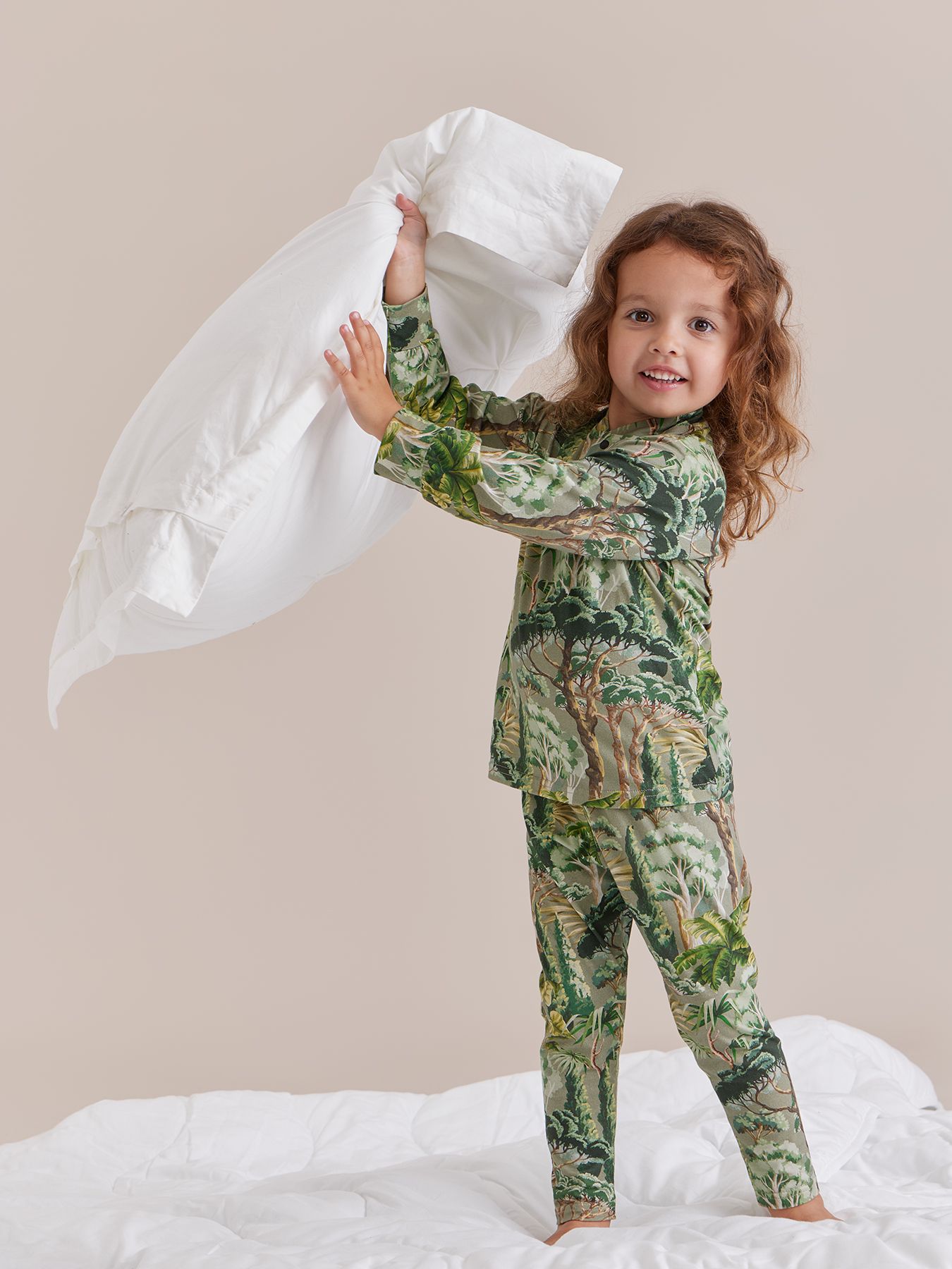 Уютная пижама создана для самых крепких снов. Сшит из мягкого материала смеси хлопка и эвкалиптового волокна. Материал хорошо тянется, нежно касается кожи, впитывает влагу. Крой и свободная посадка не сковывают движения. Мягкие резиночки на штанишках и манжетах не пережимают кожу. Горловина хорошо тянется и позволяет быстро снимать и надевать лонгслив. Стильная пижама подойдет для комфортного сна, игр дома и красивых фотосессий.