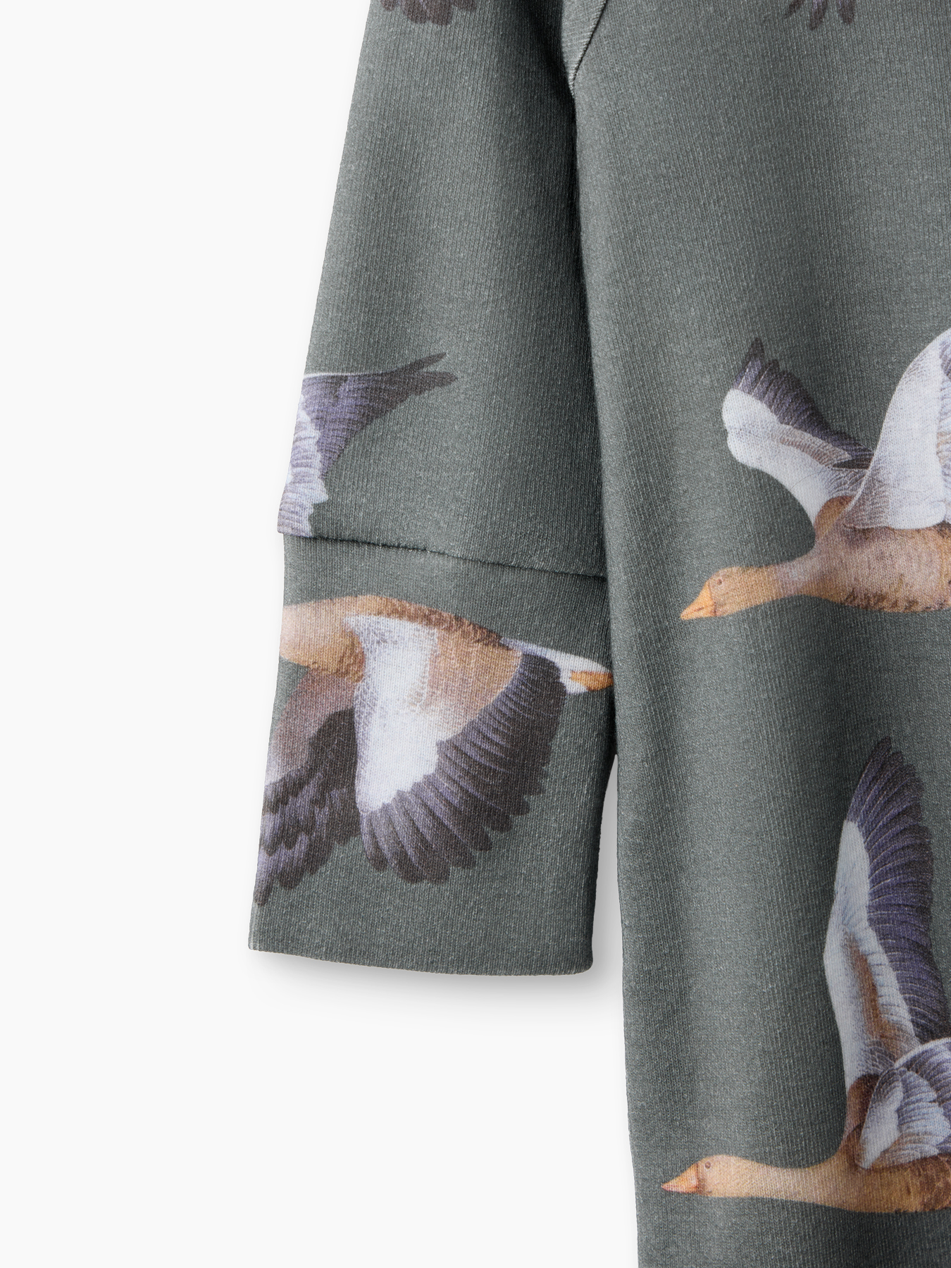 • Лаконичный дизайн — базовая расцветка с нежным принтом, окантовка на манжетах и рюша на воротнике дополняют образ