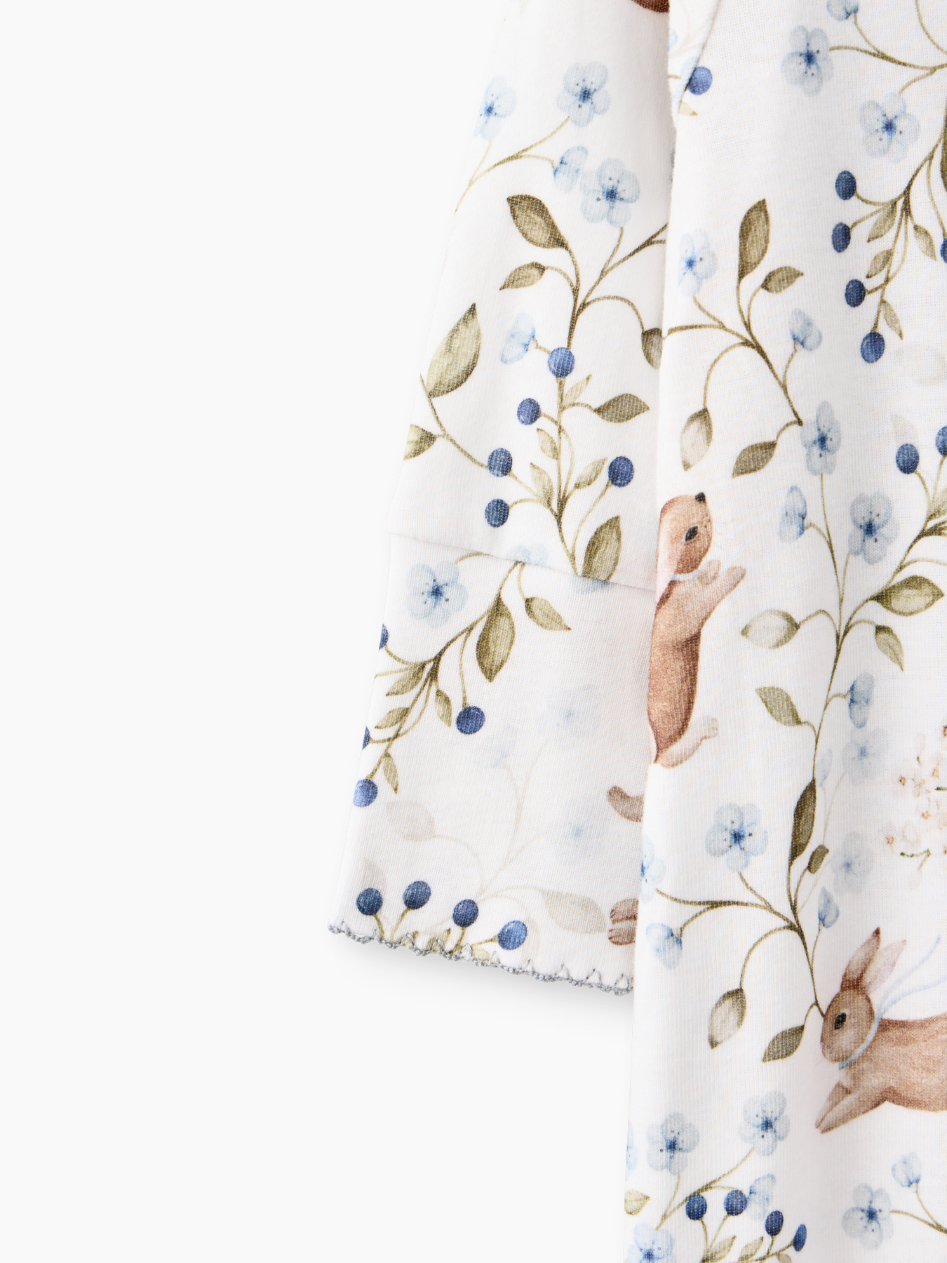 • Лаконичный дизайн — базовая расцветка с нежным принтом, окантовка на манжетах и рюша на воротнике дополняют образ
