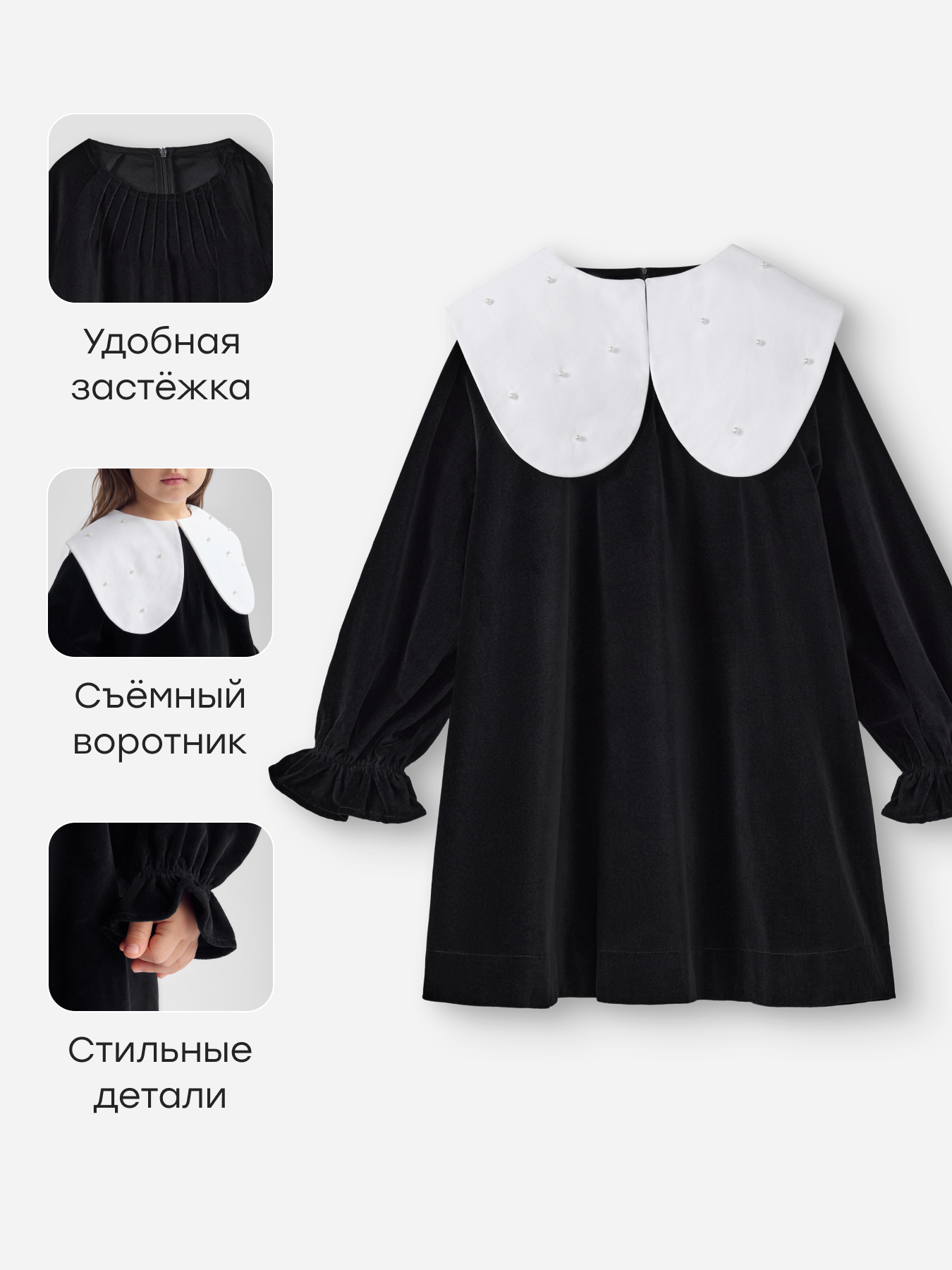 • Съемный отложной воротник на пуговицах – создает праздничный образ