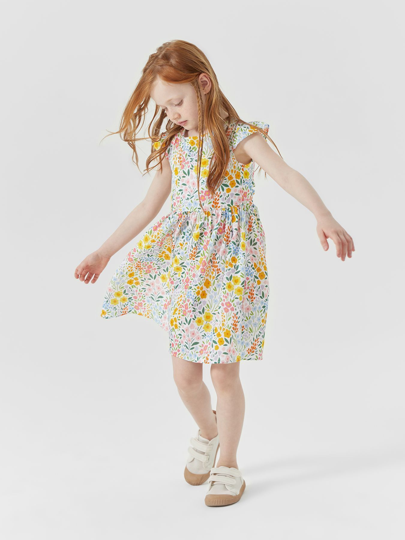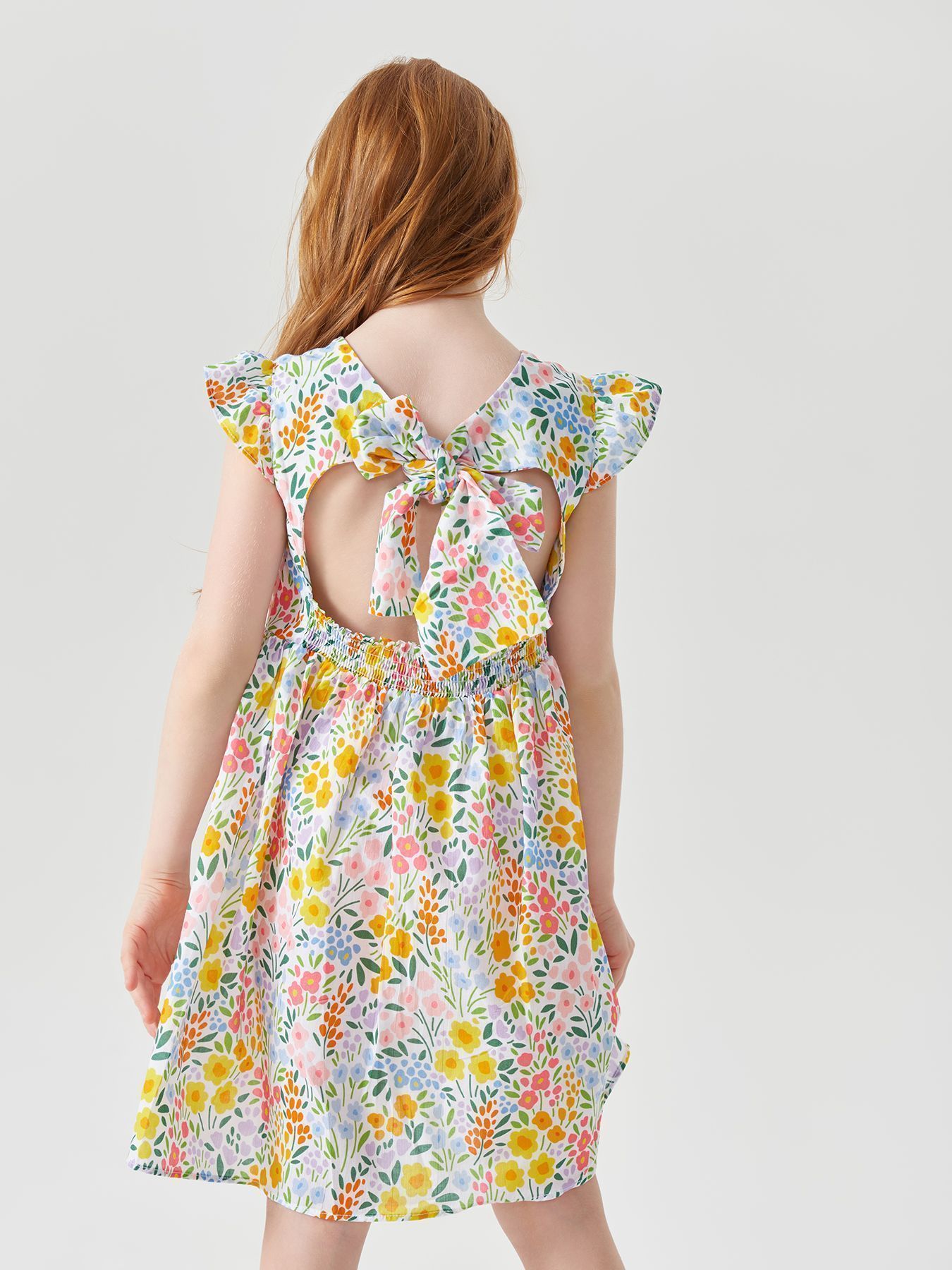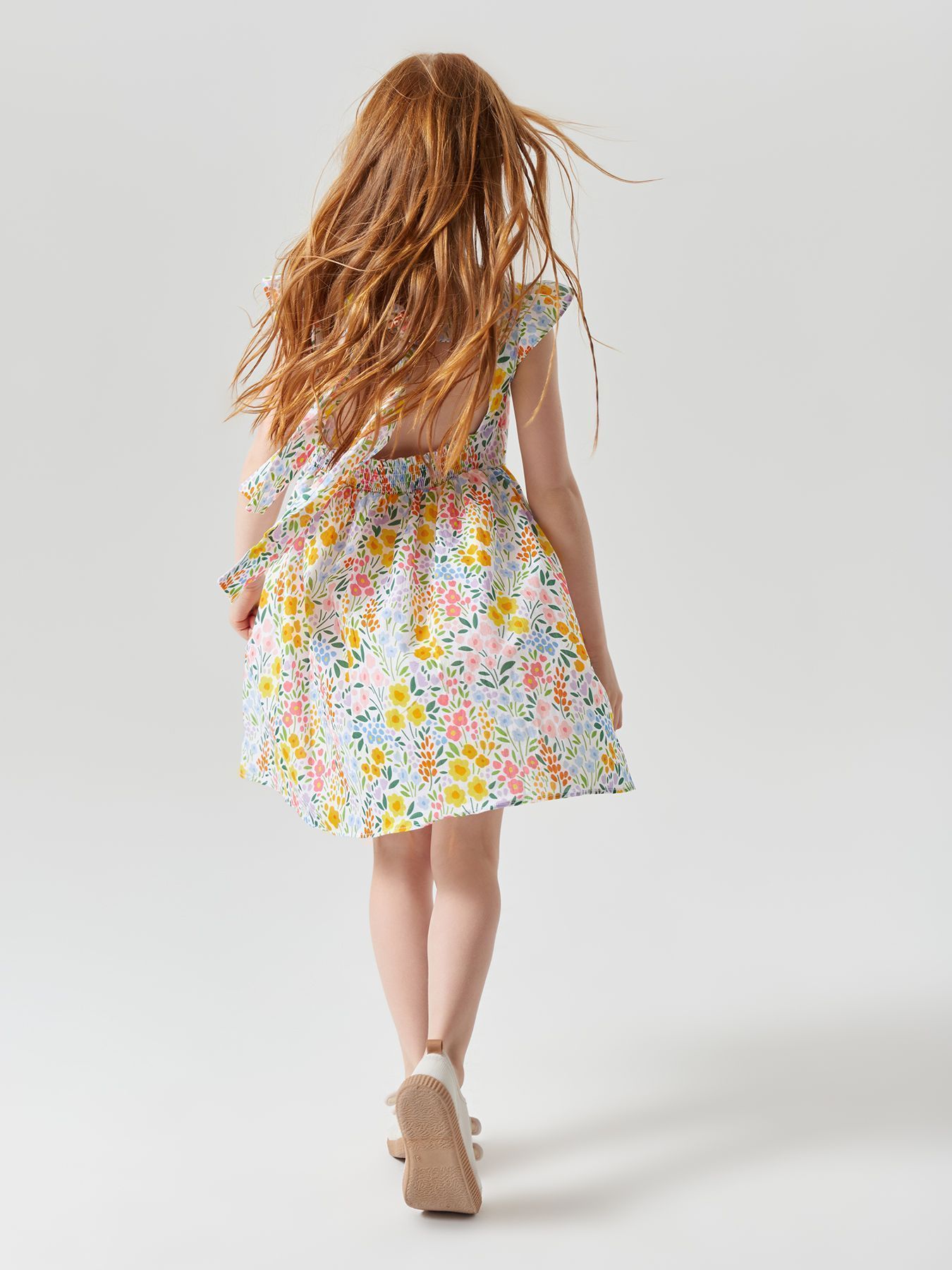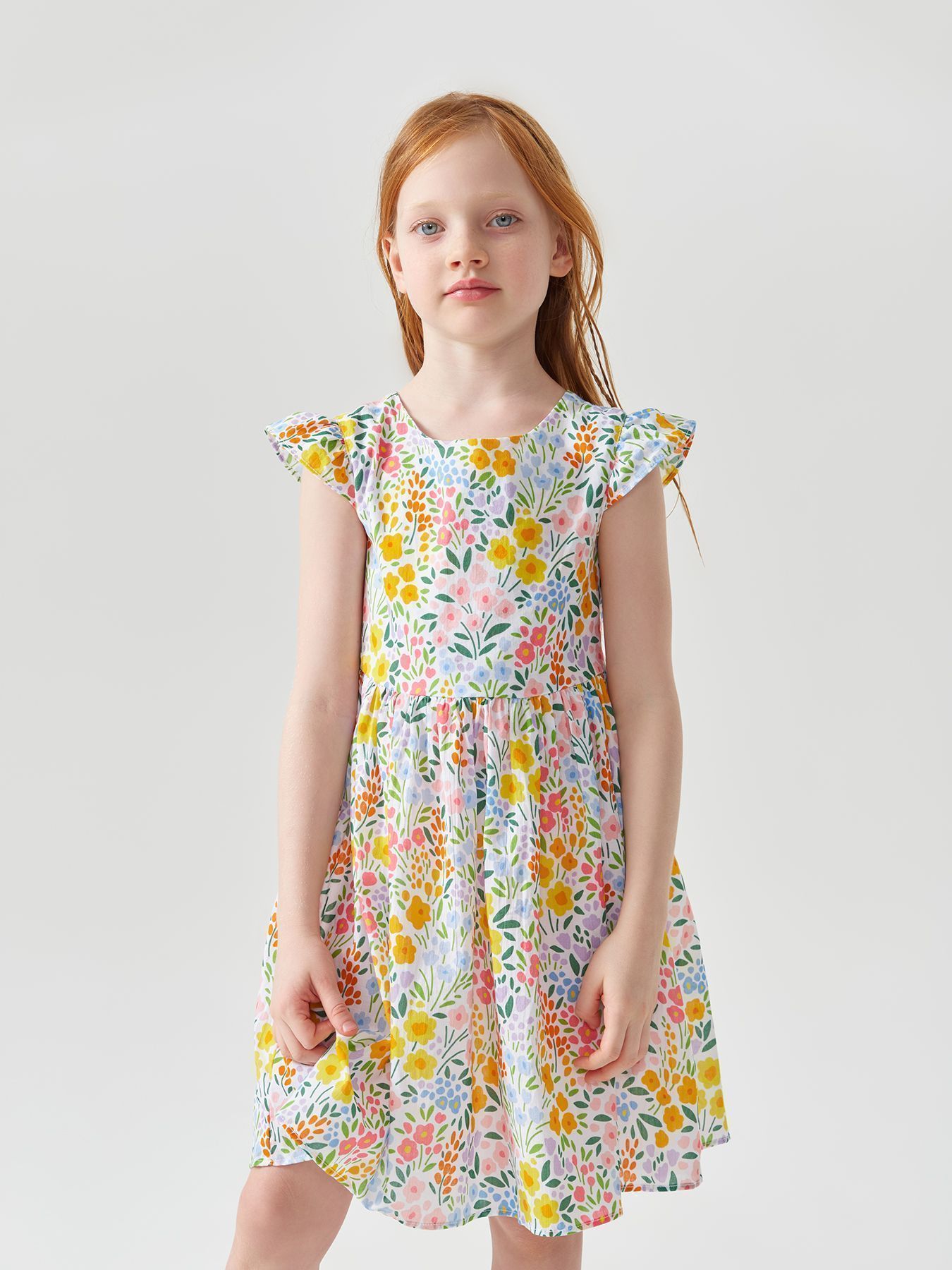 Нарядиться в воздушное платье из яркой хлопковой ткани – достаточное условие для отличного настроения на весь день. Сшито из натурального материала, в составе которого 100% хлопок. Ткань дышит, отводит влагу и позволяет чувствовать себя комфортно в жару. Крой не сковывает движения, а юбка красиво кружится. Подходит для прогулок, садика и праздников.