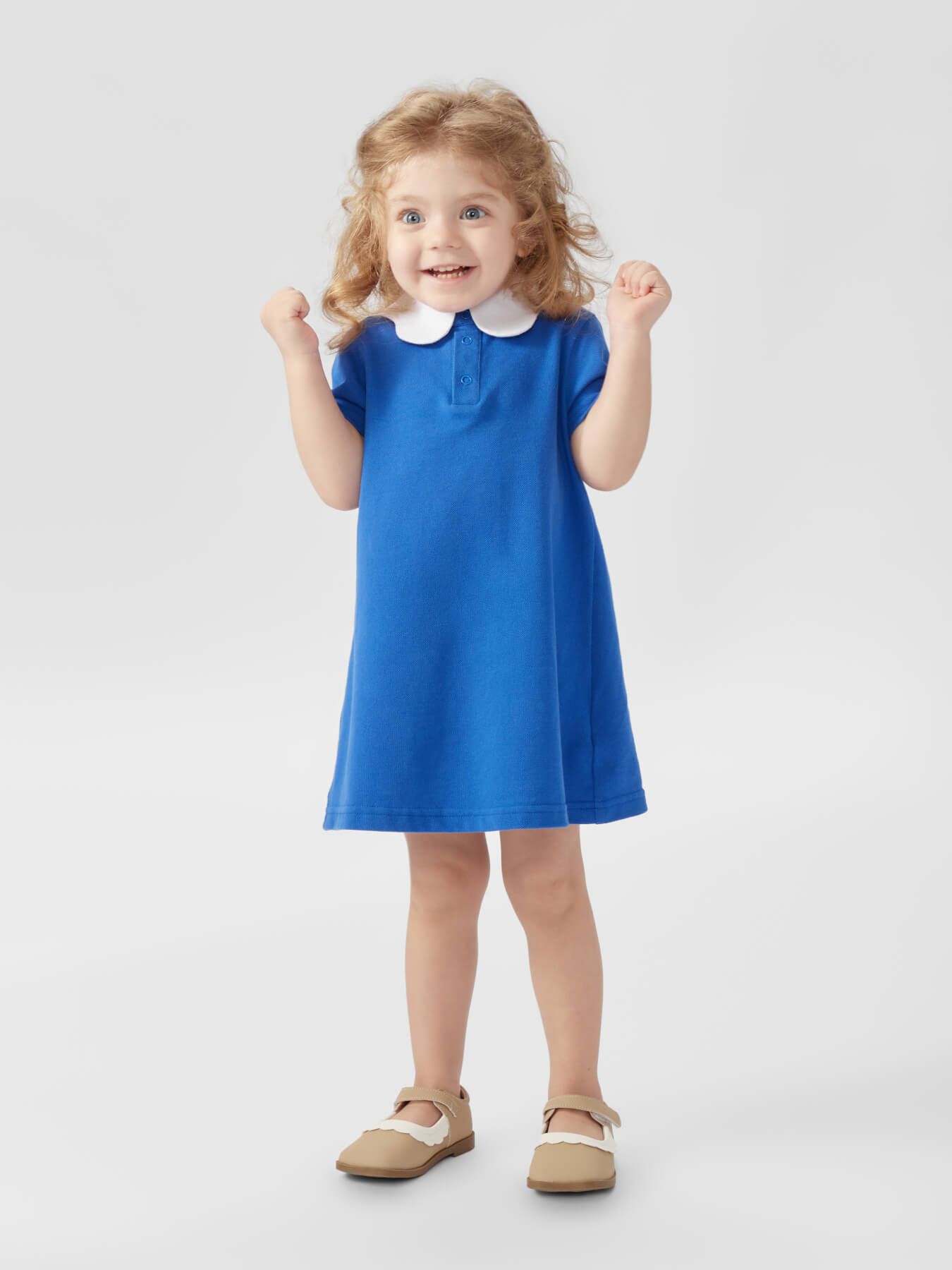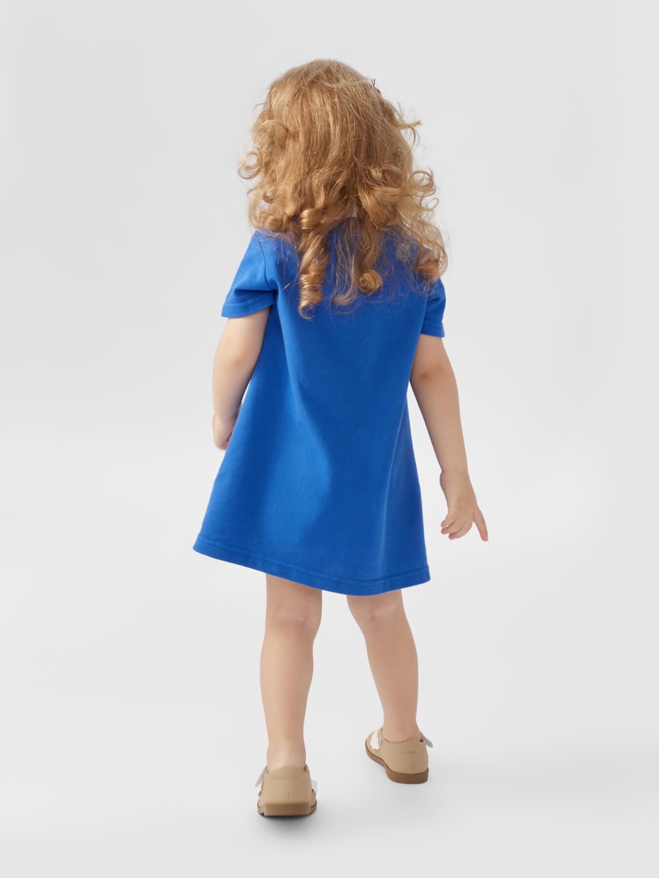 Удобное платье из 100% хлопка уместно в любое время года. Лекало разработано с учетом детской анатомии, потому изделие не сковывает движения. Благодаря застежке горловина становится широкой, что позволяет легко раздеть и одеть ребенка. Классический дизайн с белым воротничком идеально подойдет как для будней, так и для праздников.