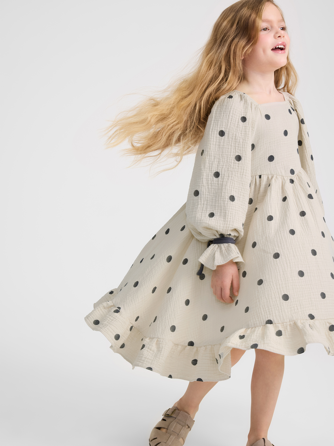 Хлопковое платье для девочек — воплощение нежности и стиля, идеально подходит для маленьких принцесс. Модель с длинными рукавами-фонариками придает образу изысканность, а пышная юбка с рюшами на подоле делает платье по-настоящему волшебным. Выполненное из мягкого и дышащего хлопка, оно обеспечивает максимальный комфорт в течение всего дня. Трендовые цвета позволяют выглядеть модно и привлекательно, а универсальный фасон подходит как для праздничных мероприятий, так и для создания атмосферы праздника в любой день. Платье легко комбинируется с аксессуарами, добавляя образу законченности и изящества.