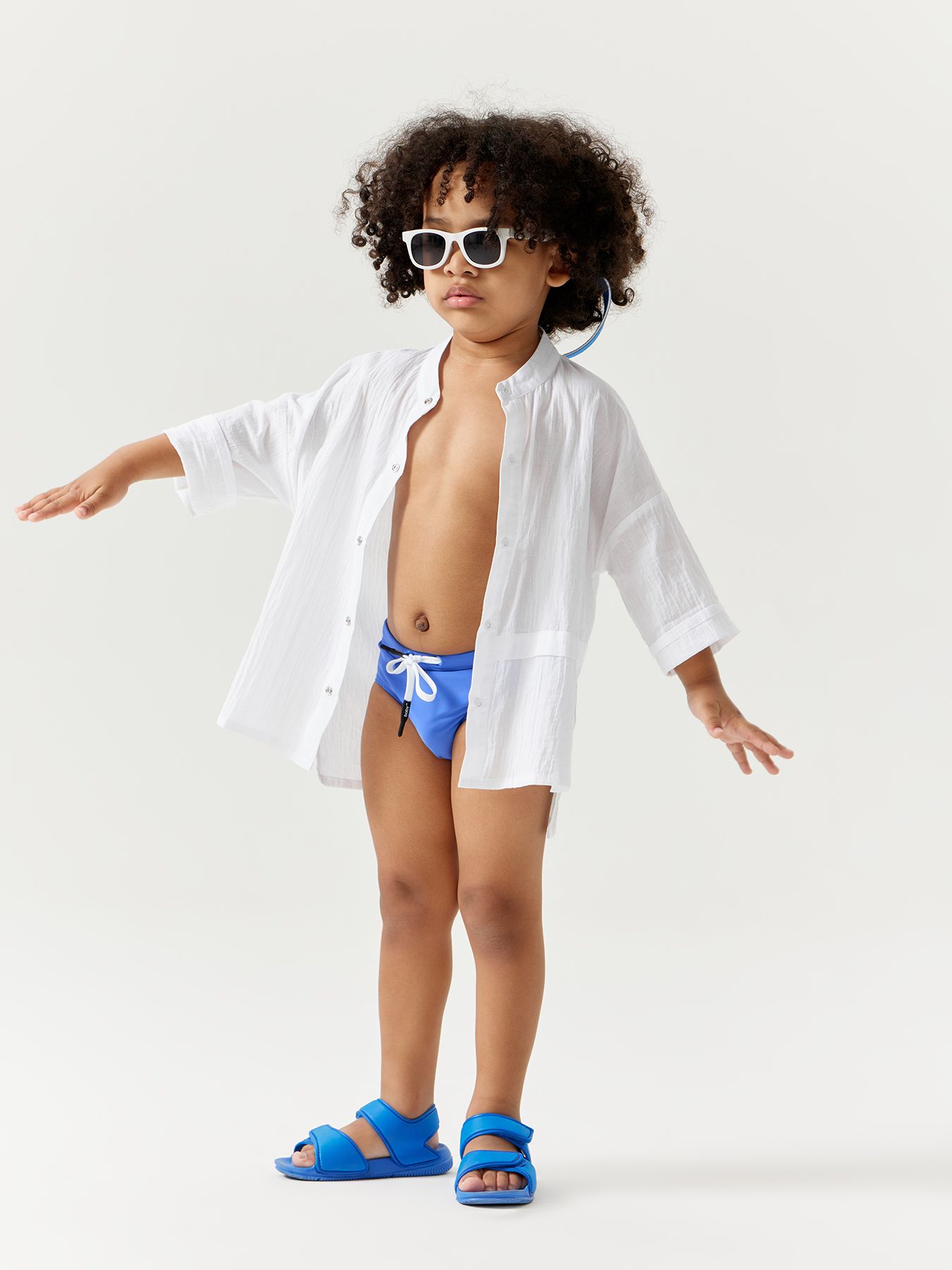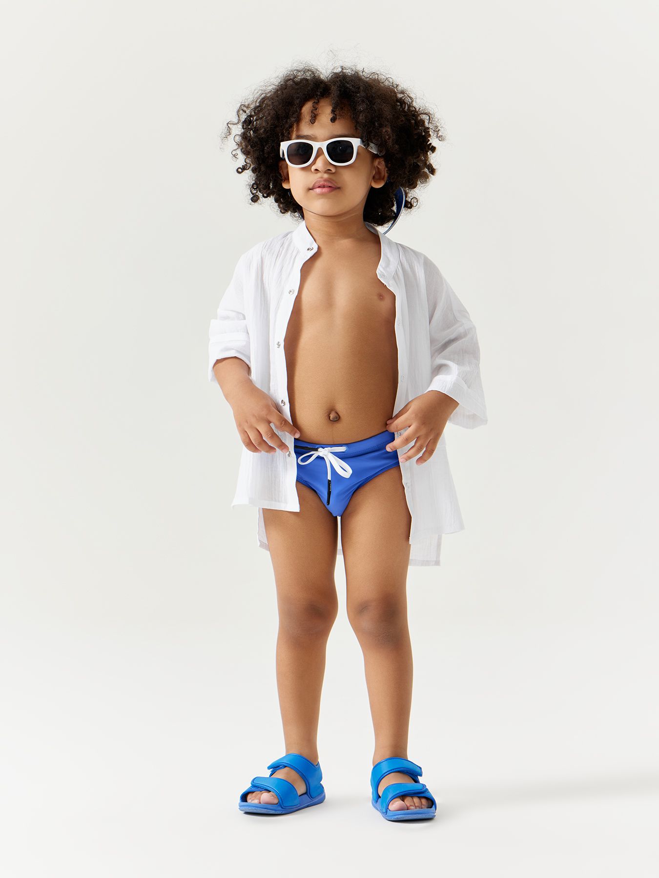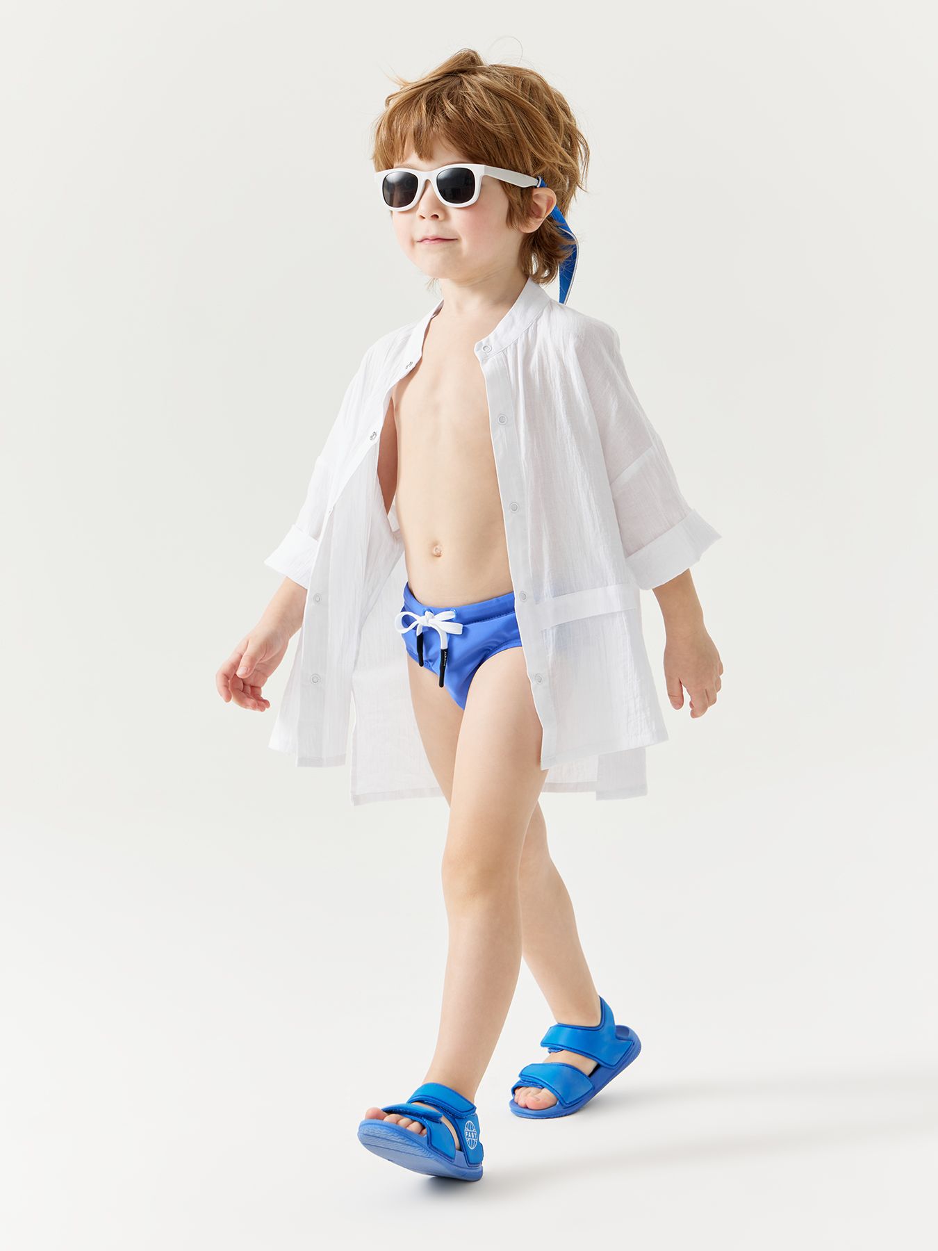 Удобные плавки быстро сохнут и оставляют полную свободу движений. Надежно фиксируются с помощью шнурка на поясе. Сшиты из приятной ткани, которая быстро сохнет – малыш будет находиться в комфорте и тепле все время пребывания на пляже. Материал обладает наивысшим фактором защиты от ультрафиолета UPF 50+. Благодаря яркой расцветке ребенок хорошо заметен в море, в бассейне и на берегу.