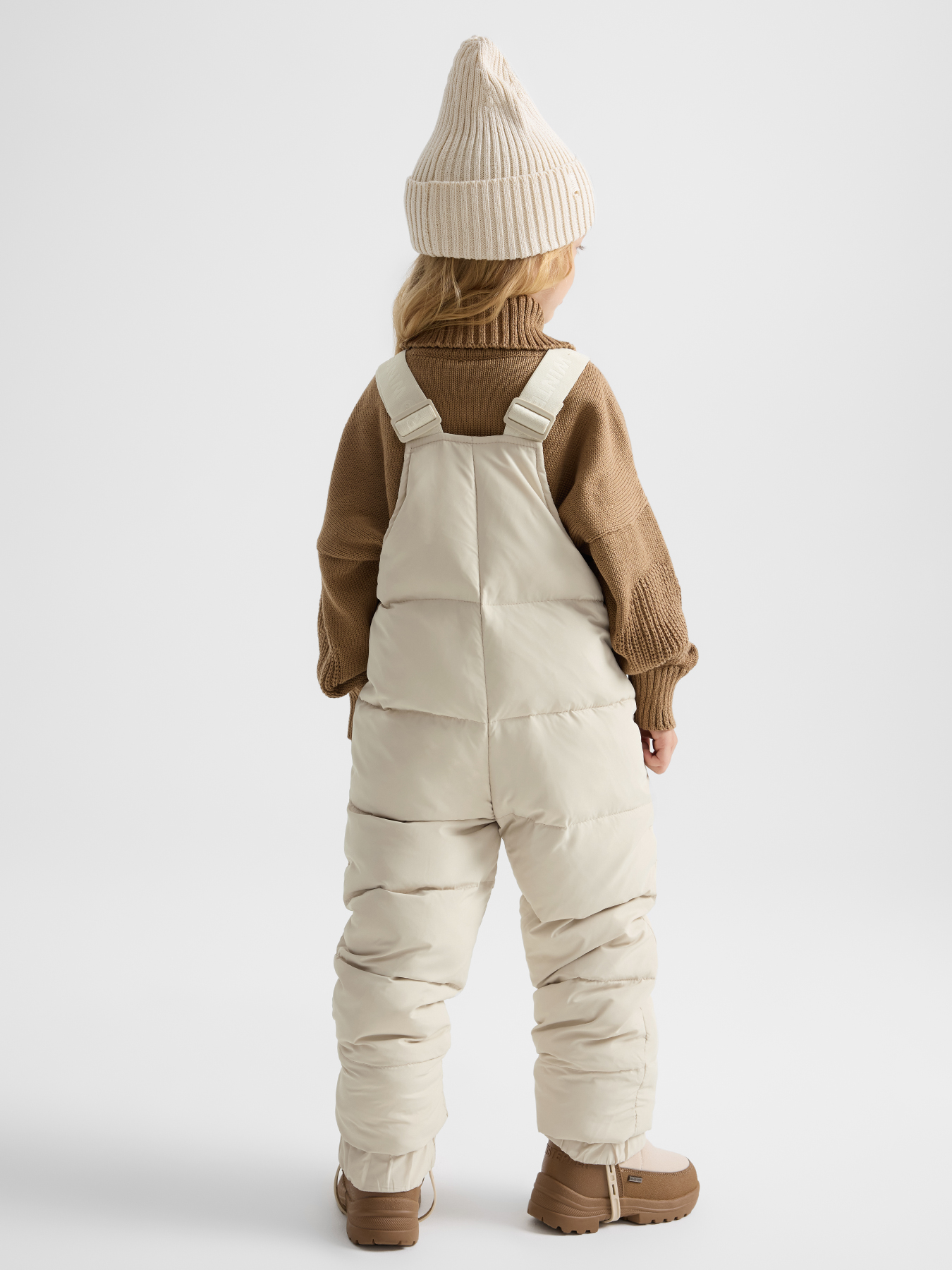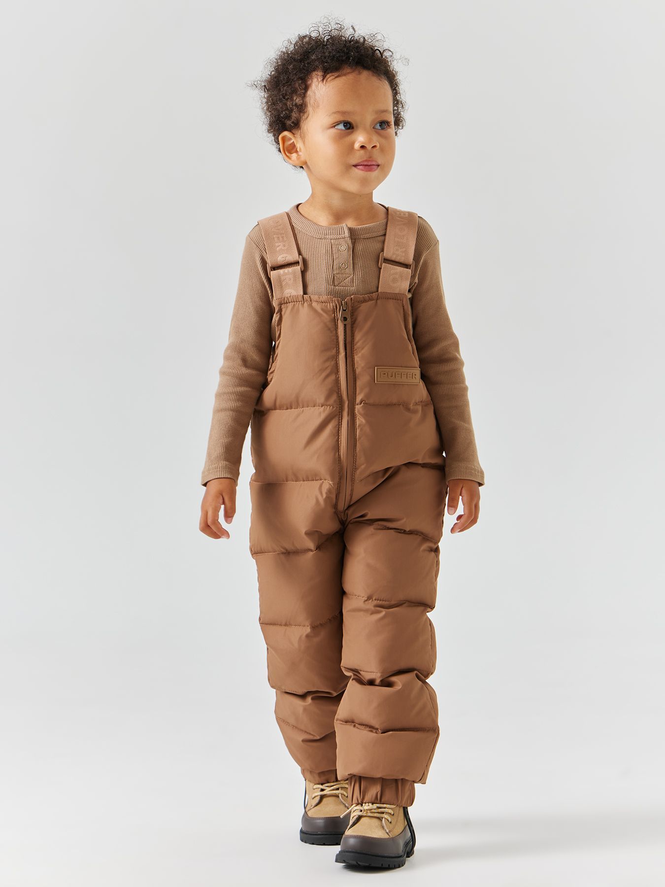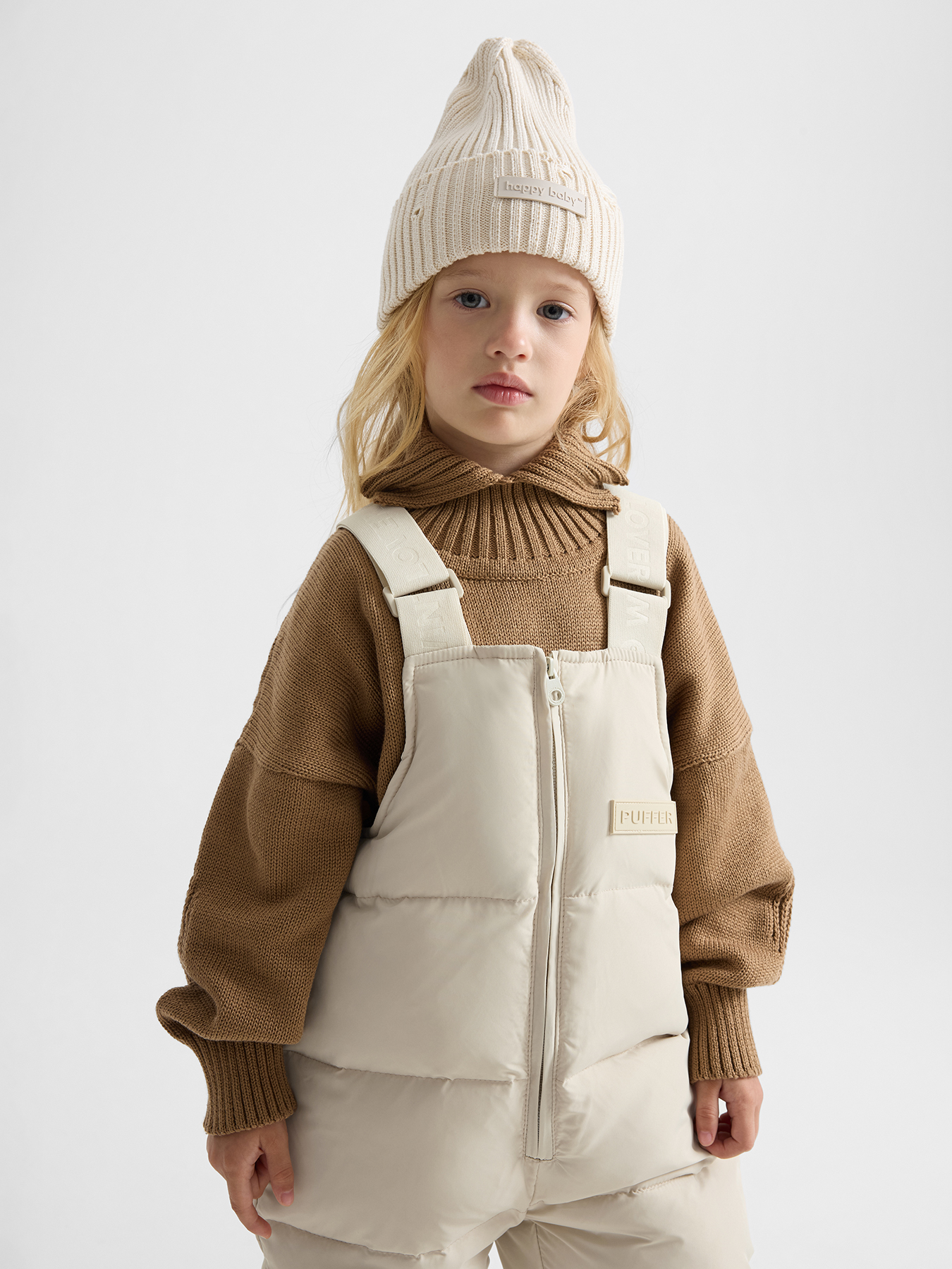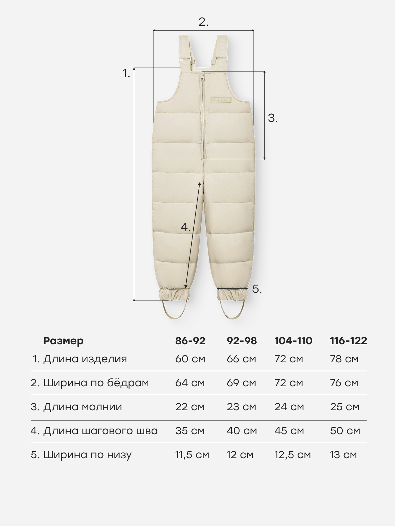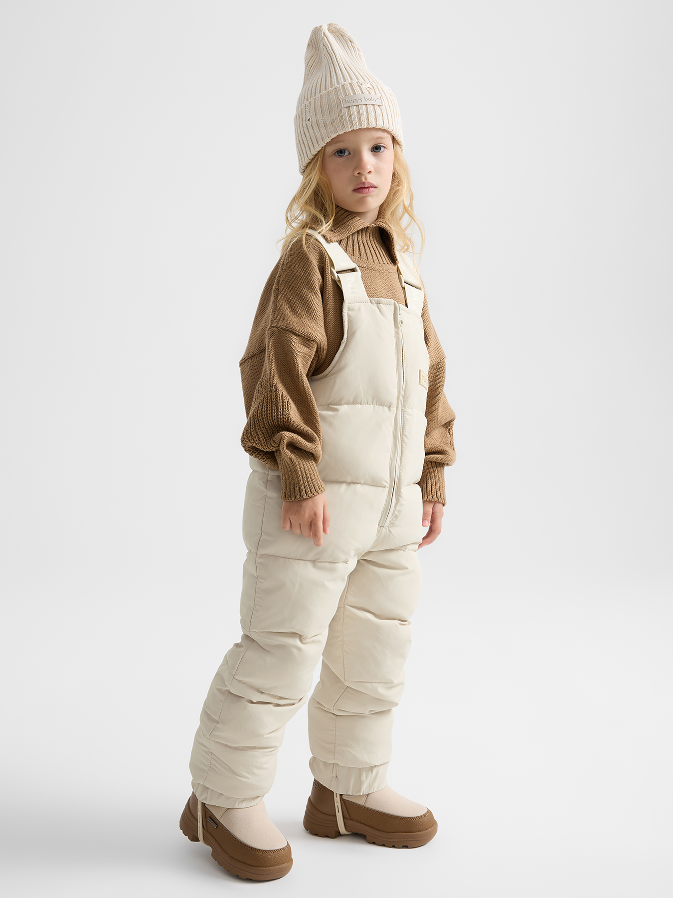 Полукомбинезон выполнен в универсальных цветах, которые легко комбинировать с зимними куртками, аксессуарами и другой верхней одеждой. Благодаря этому он подойдёт и девочкам, и мальчикам, создавая практичный комплект на каждый день.