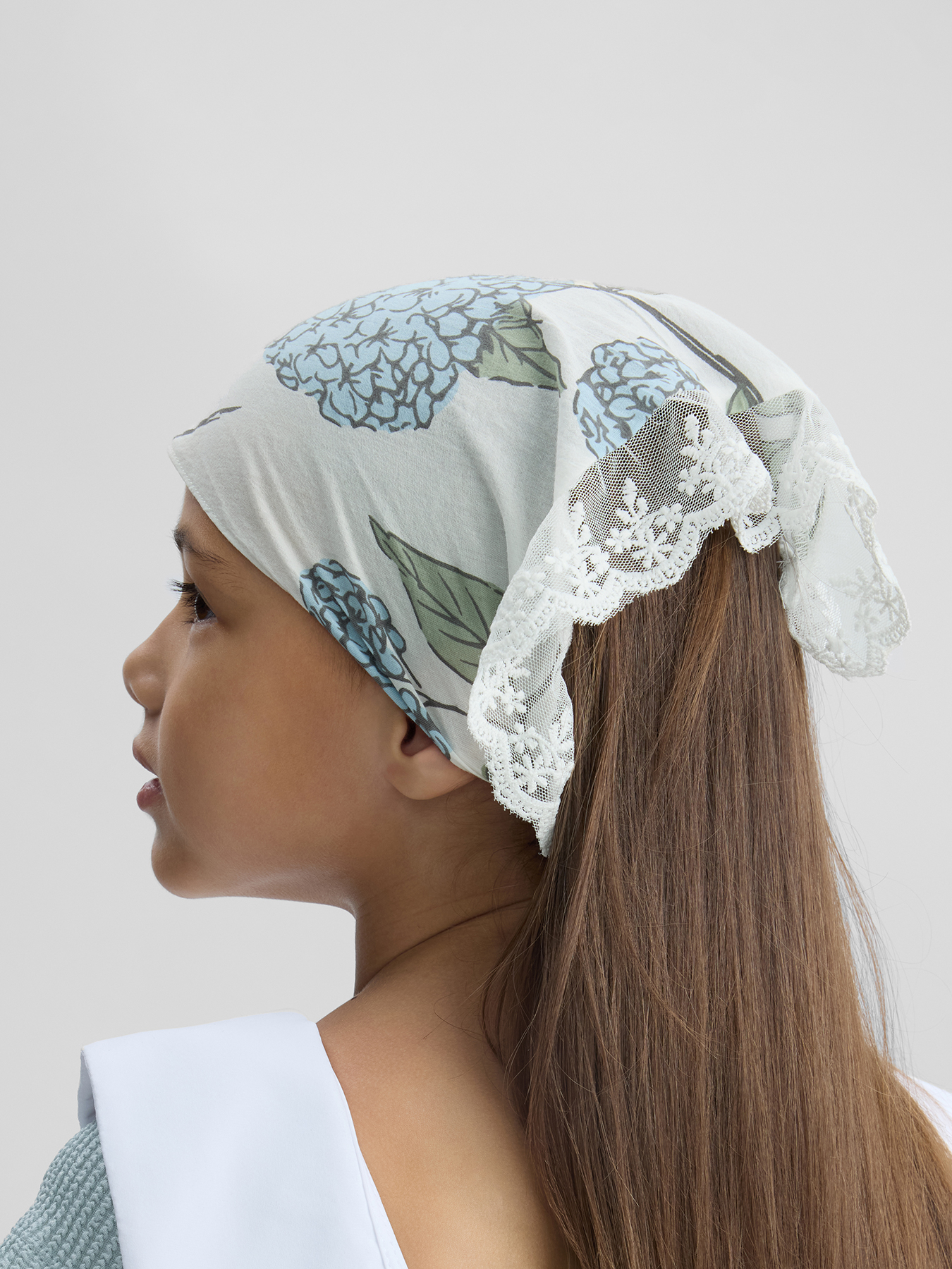 Очаровательная повязка на голову для девочки — стильный аксессуар и защита от солнца. Косынка на резинке выполнена из мягкого хлопка, что обеспечивает комфорт при ношении. Украшенная кружевом, она добавляет образу изысканности и нежности. Удобная резинка надежно держит повязку на голове, не причиняя дискомфорта. Идеальный выбор для создания стильных и нежных образов.