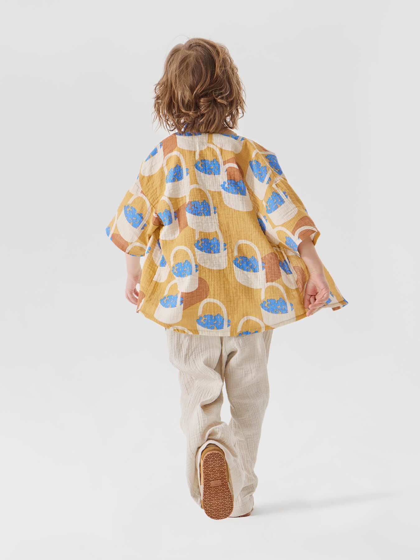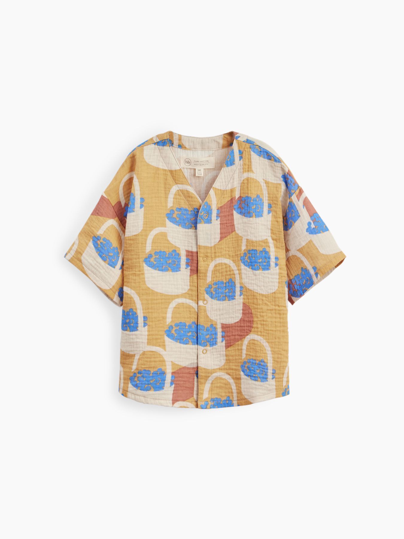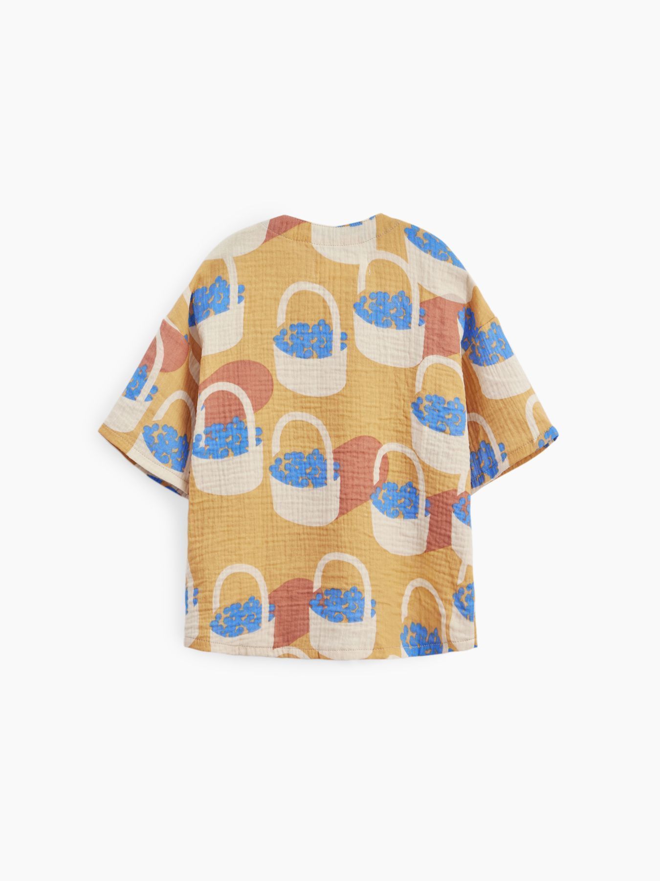 Рубашка из муслина с коротким рукавом подойдет девочкам и мальчикам. Тонкий и приятный на ощупь материал отличается высокой гигроскопичностью, обеспечивая комфорт в любую погоду. Свободный крой не стесняет движений, что делает эту модель универсальной для любых активностей. Светлая рубашка легко впишется в повседневные образы и станет базовым элементом гардероба, подходящим для города, пляжа или отдыха на природе. Можно носить как самостоятельный элемент или накинуть на плечи, дополнив купальный костюм или майку.