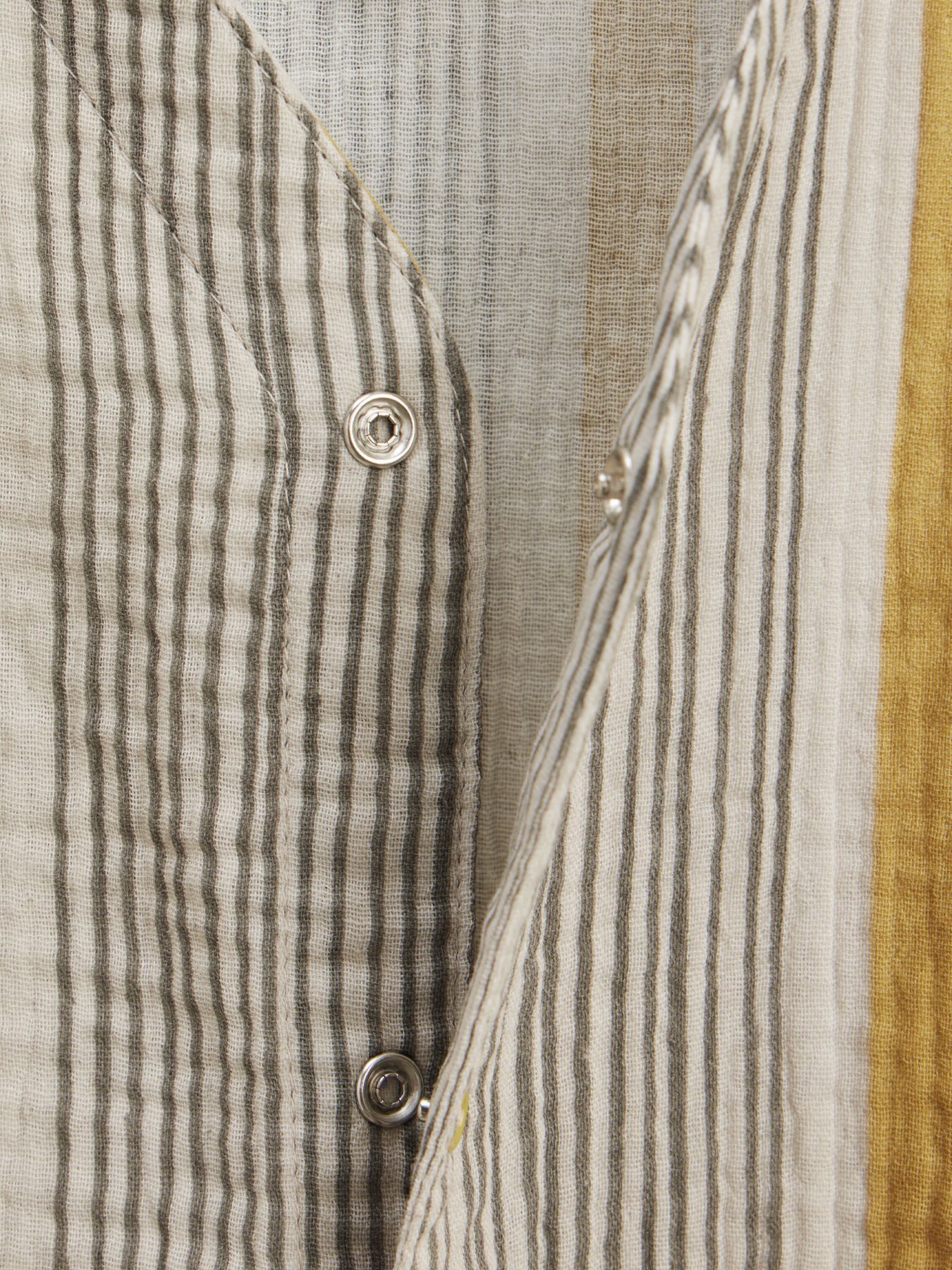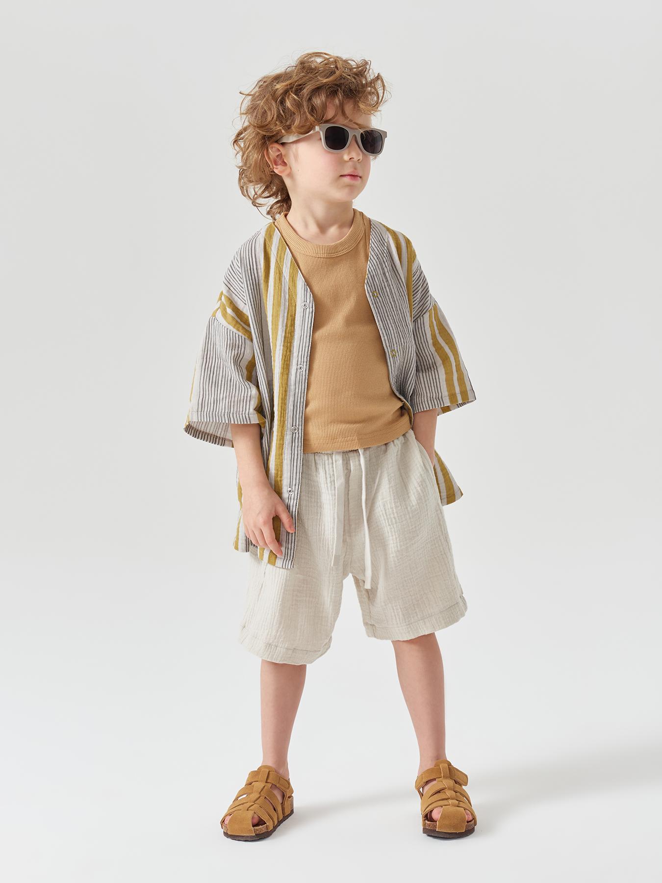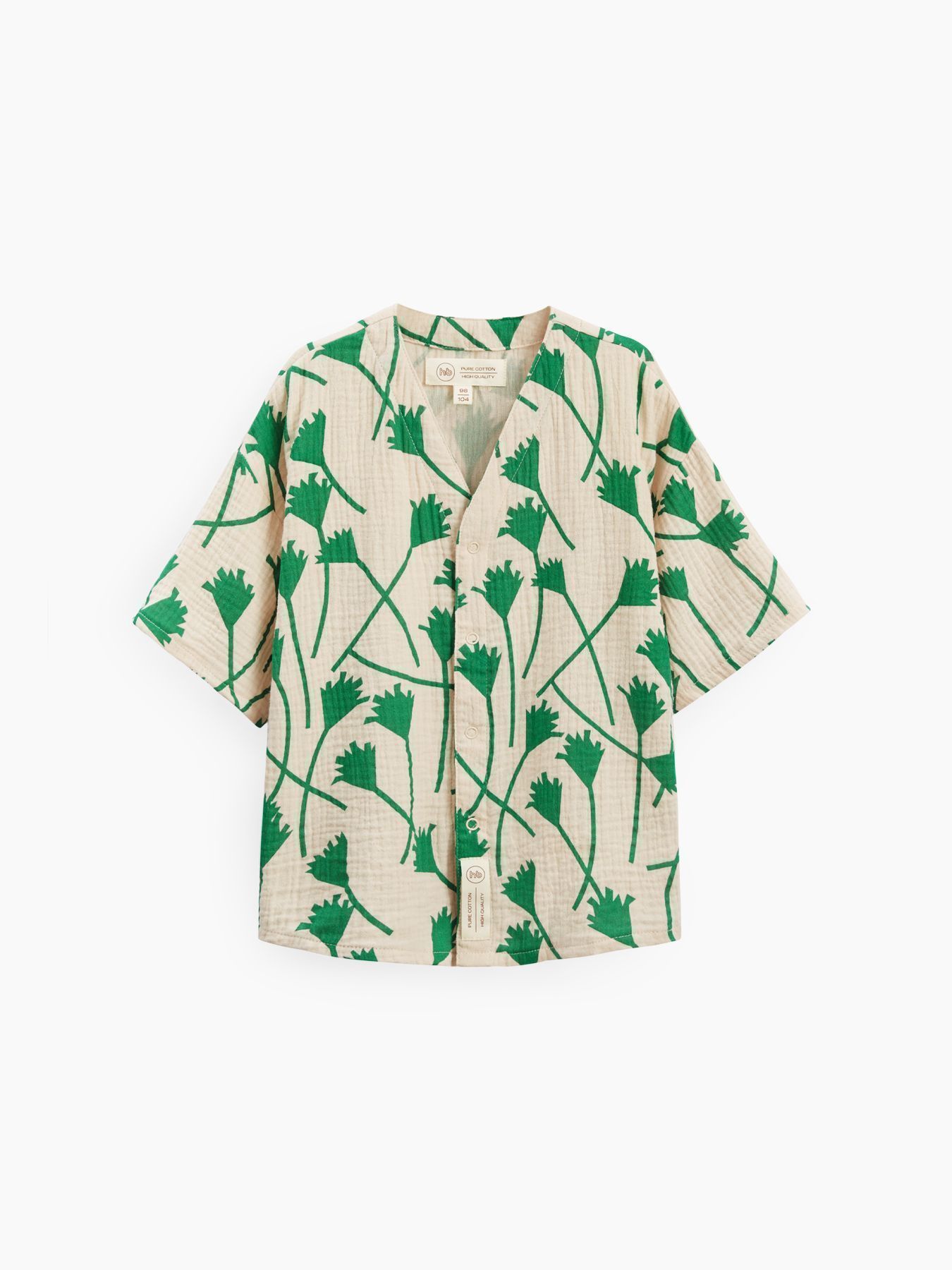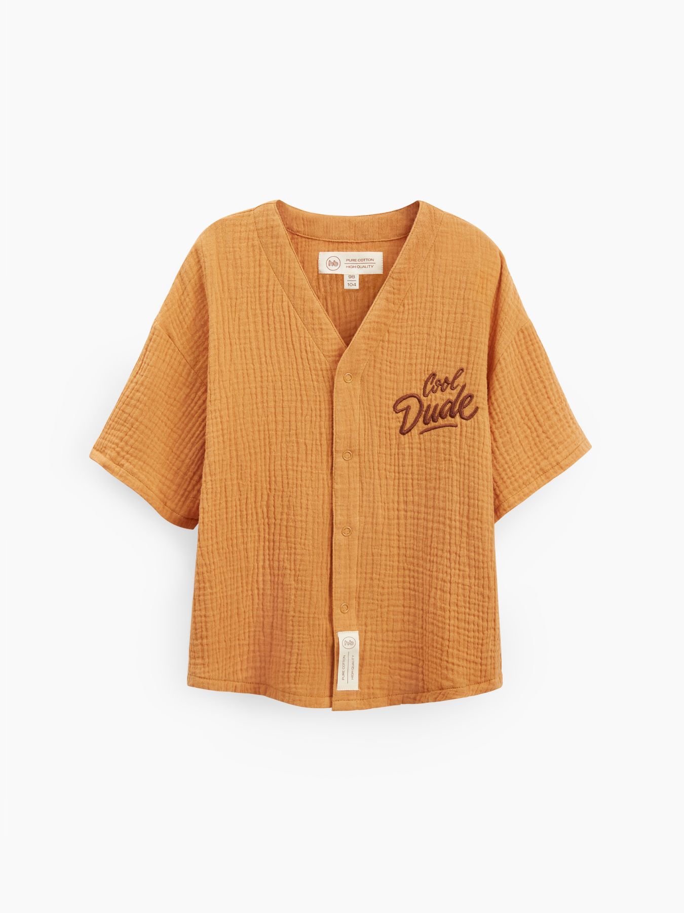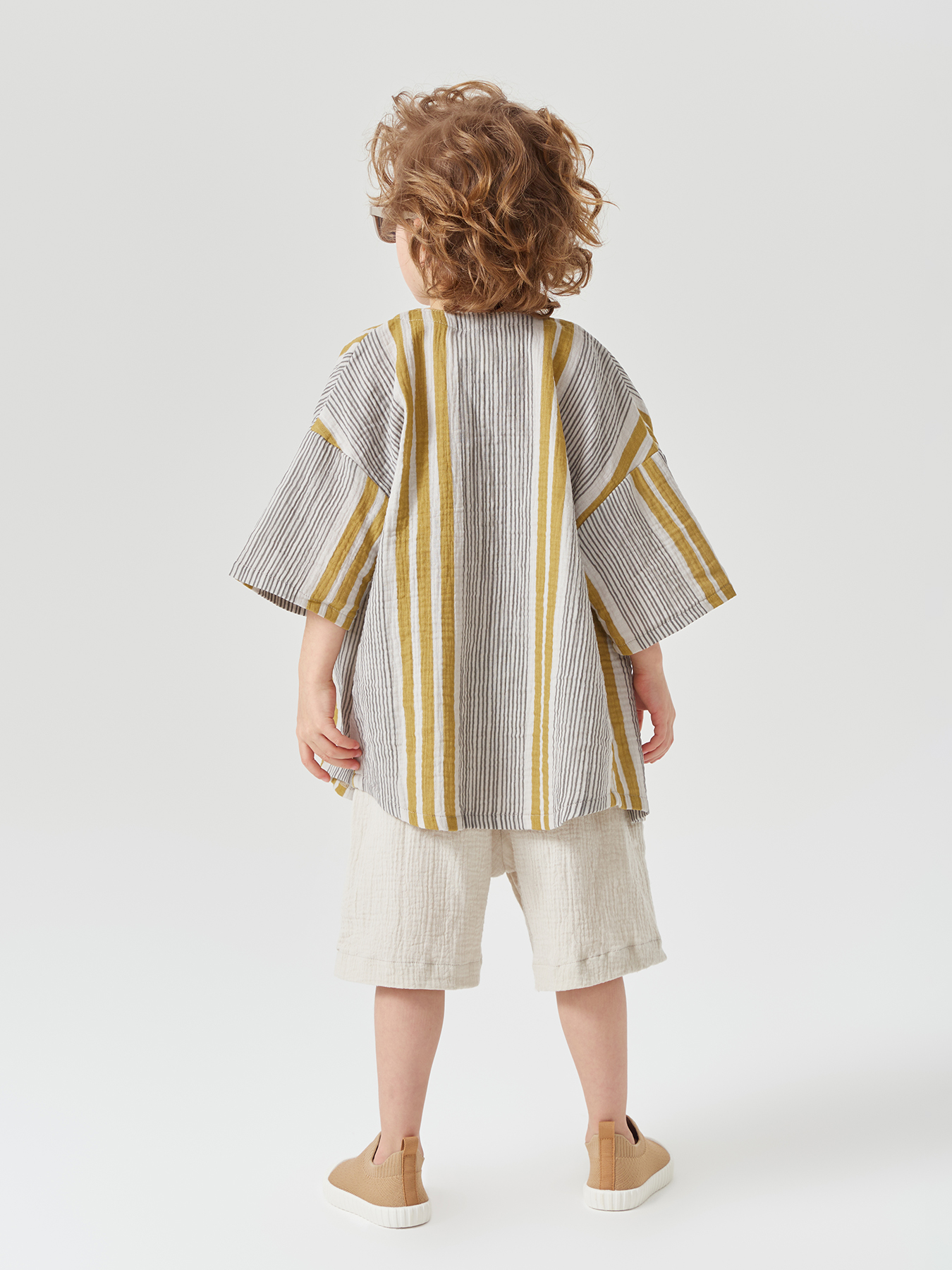 Рубашка из муслина с коротким рукавом подойдет девочкам и мальчикам. Тонкий и приятный на ощупь материал отличается высокой гигроскопичностью, обеспечивая комфорт в любую погоду. Свободный крой не стесняет движений, что делает эту модель универсальной для любых активностей. Светлая рубашка легко впишется в повседневные образы и станет базовым элементом гардероба, подходящим для города, пляжа или отдыха на природе. Можно носить как самостоятельный элемент или накинуть на плечи, дополнив купальный костюм или майку.