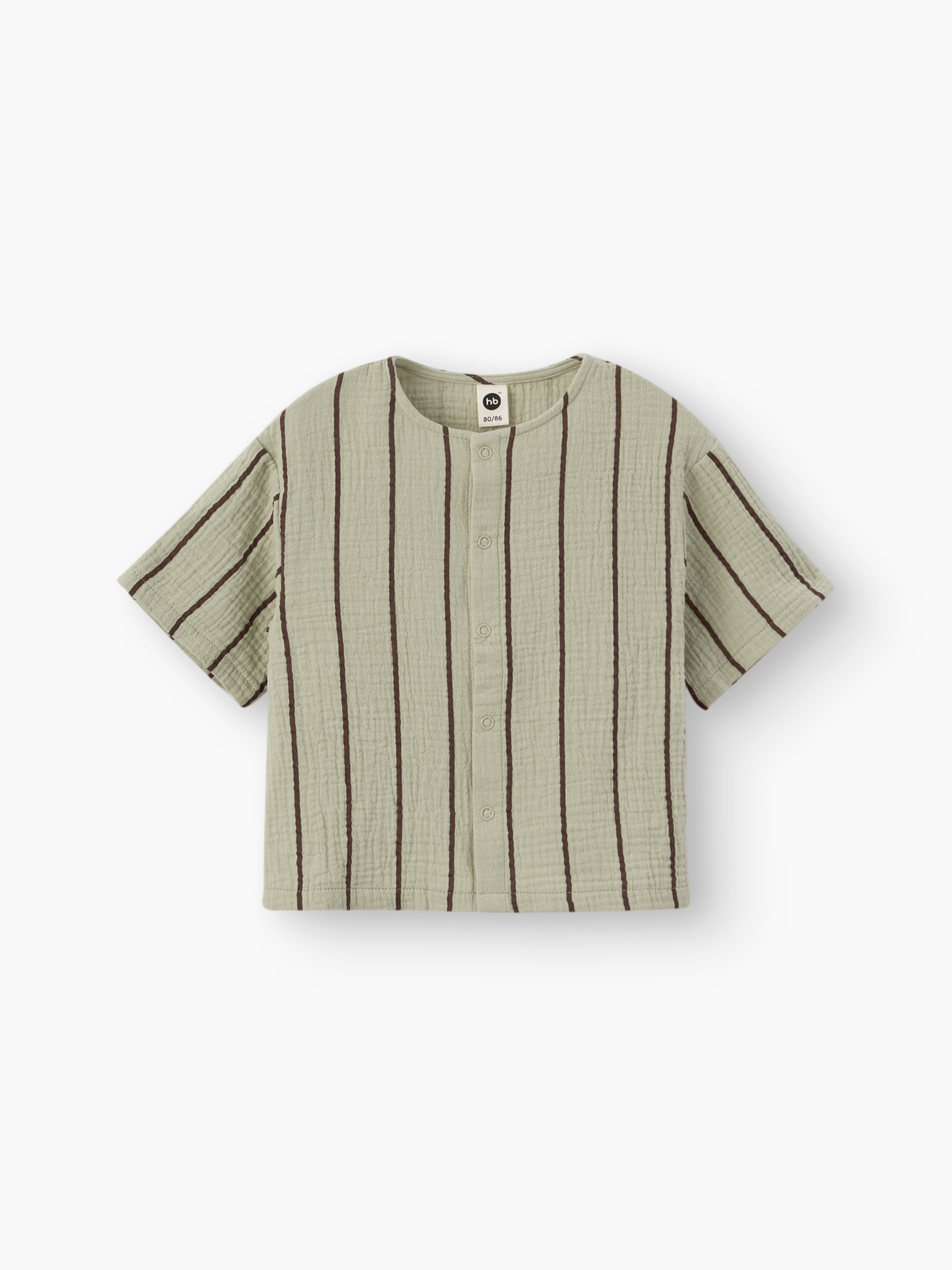 Рубашка для малышей — удобная и стильная модель. Выполнена из мягкого хлопка, обеспечивает комфорт нежной коже ребенка. Классический крой с короткими рукавами и застежкой на пуговицы делает рубашку удобной в использовании, облегчая процесс одевания. Универсальный дизайн и лаконичный стиль позволяют легко сочетать рубашку с любыми элементами гардероба, будь то шорты, брюки или юбки. Подходит для прогулок, детского сада, семейных мероприятий или фотосессий. Благодаря качественному материалу рубашка сохраняет свой вид даже после многократных стирок.