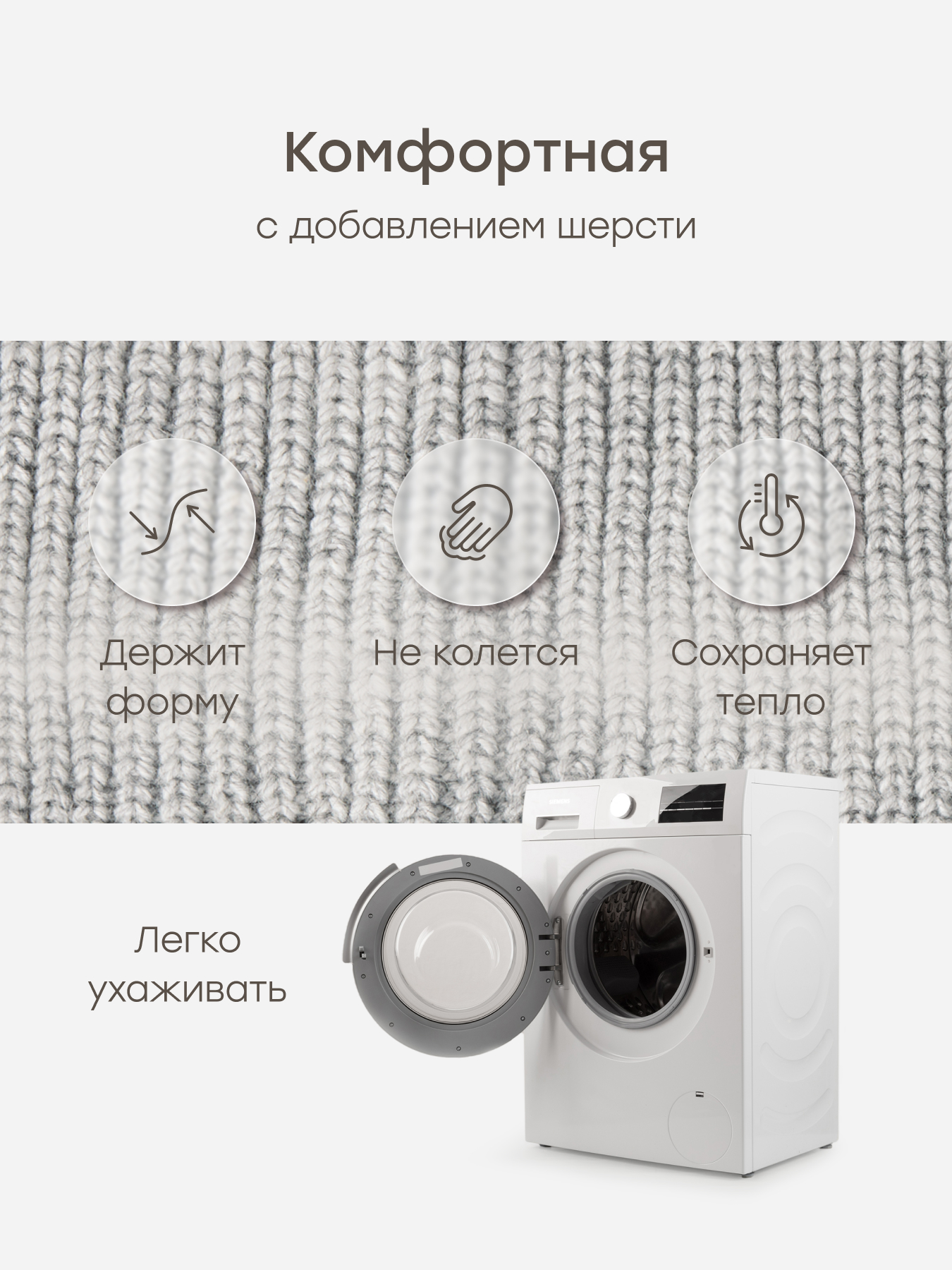 • Мягкий и тёплый материал — не колется и приятно прилегает к коже