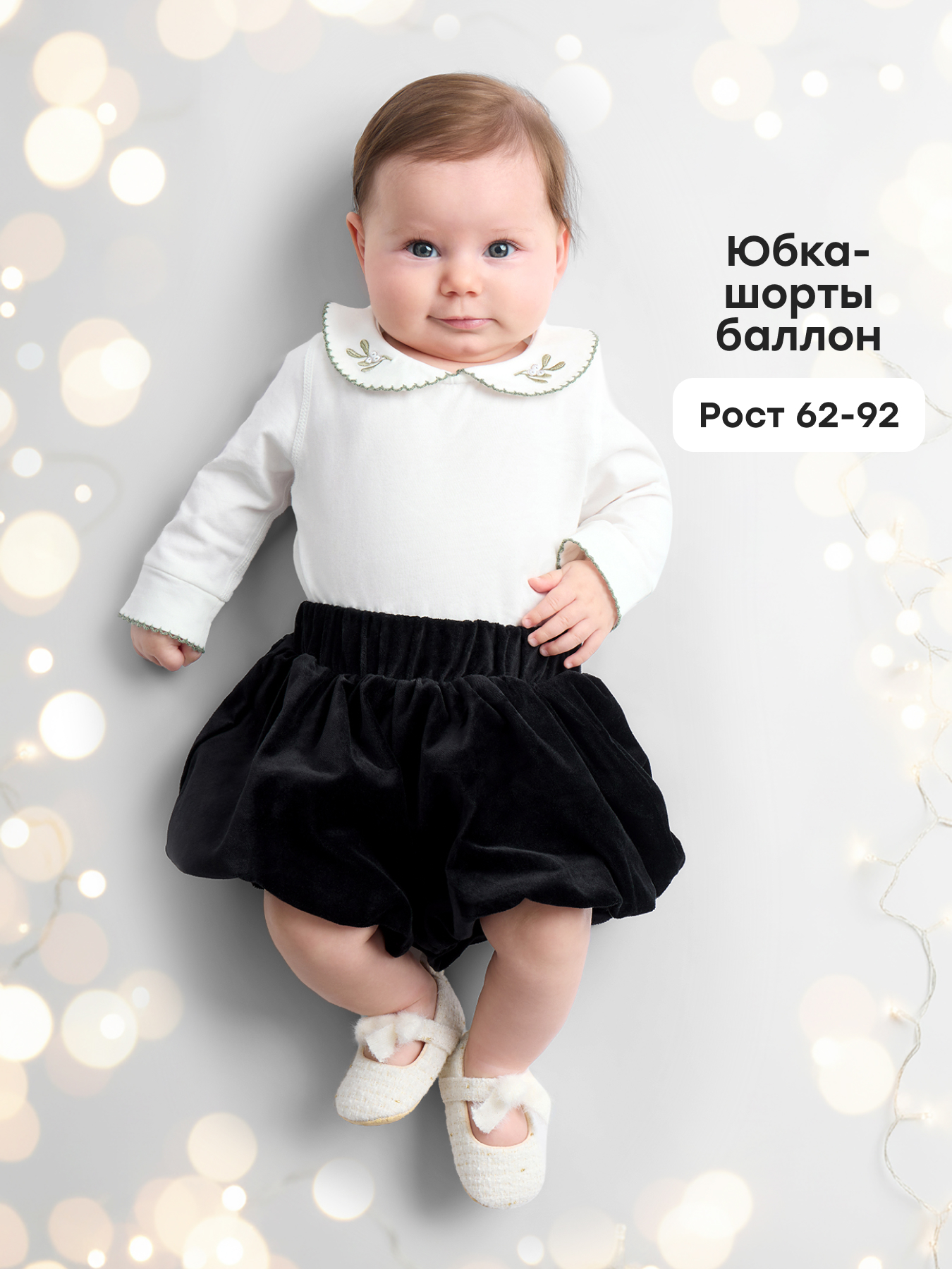 Детские юбка-шорты — уютные шортики для малышей из 100% натурального хлопка. Шорты в садик для девочки выполнены из натурального 100% хлопка, имеют приятную на ощупь фактуру, напоминающую бархат, и хлопковую подкладку, обеспечивающую дополнительный комфорт. Блумеры для малыша без карманов выполнены в классическом черном цвете. Шорты на резинке удобно садятся по талии и не сковывают движений. Продуманный объёмный крой с запасом под подгузник делает шорты однотонные для девочки комфортными для повседневной носки дома, в садике или на прогулке. Универсальный дизайн позволяет использовать шорты детские в сочетании с различными элементами одежды.