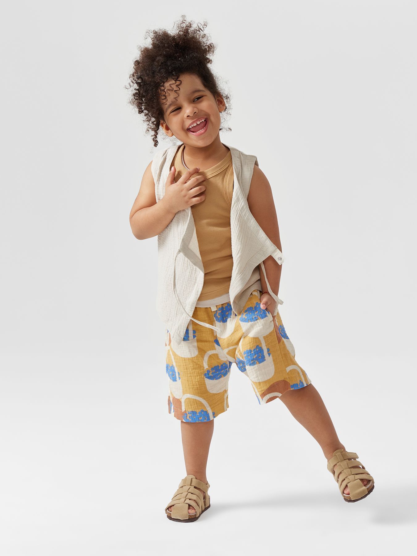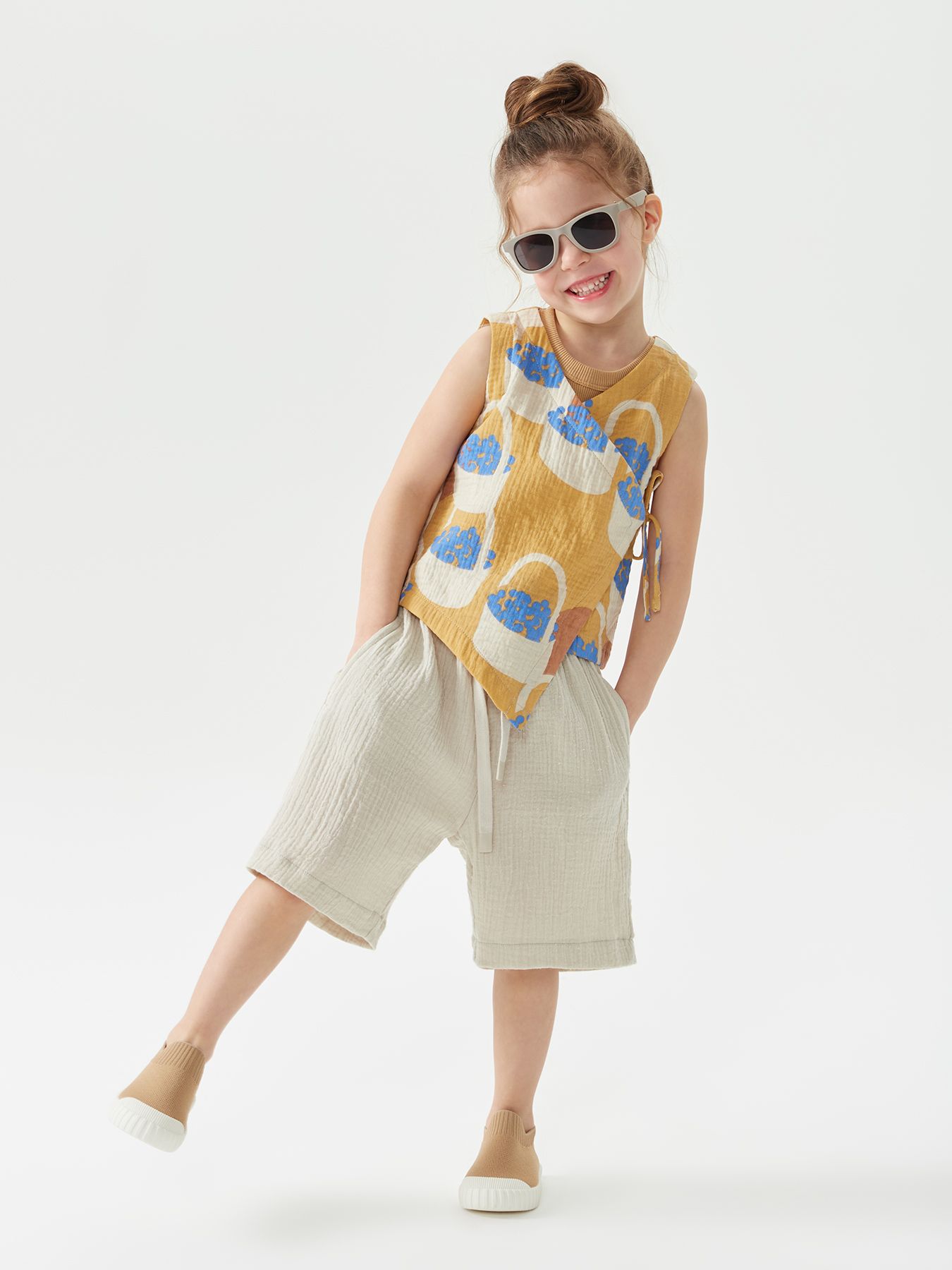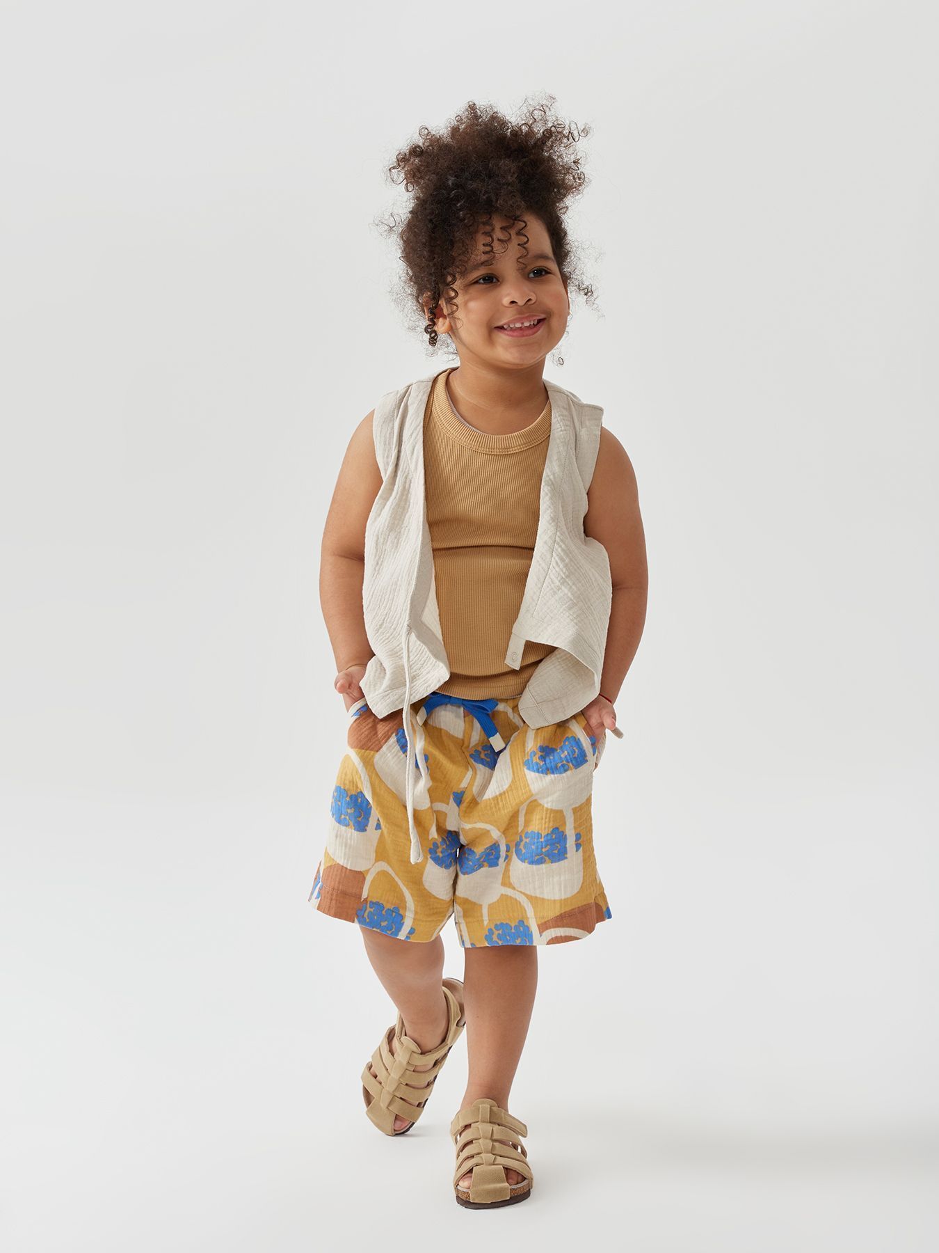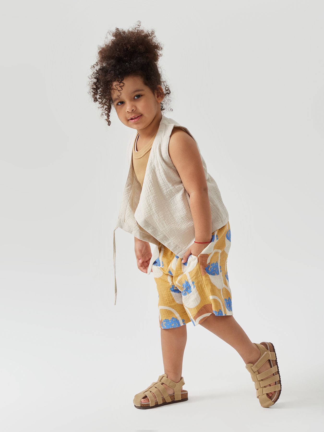 Шорты из невесомого муслина идеальны для жарких дней. Яркие принты на ткани добавят стильные акценты в образ. Свободный крой не сковывает движения, а благодаря тщательно проработанному лекалу и завязкам на талии обеспечивается правильная посадка. Натуральный материал отлично впитывает влагу, быстро сохнет, спасает от жары, поэтому шорты комфортно носить каждый день, на пляж или на выход.