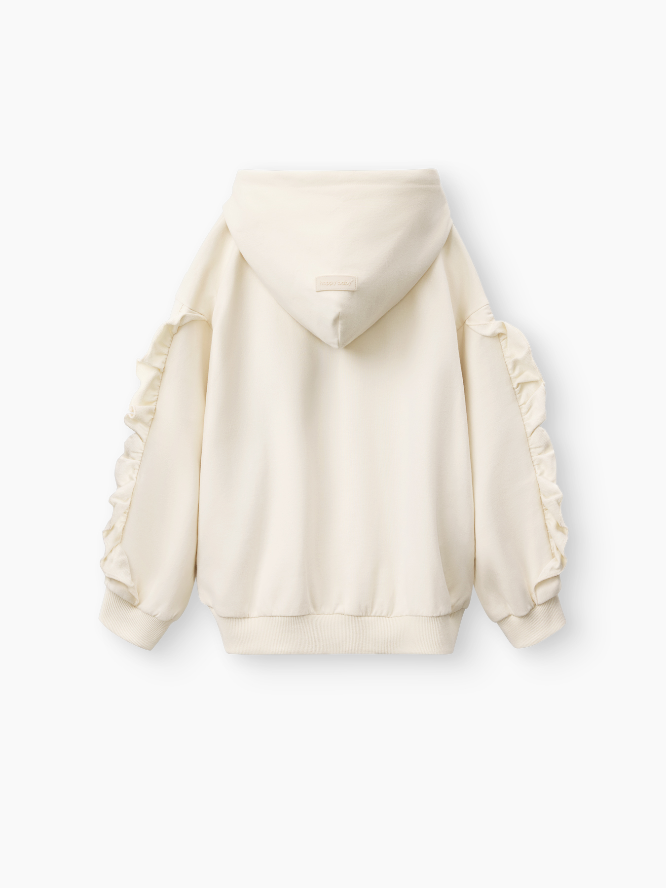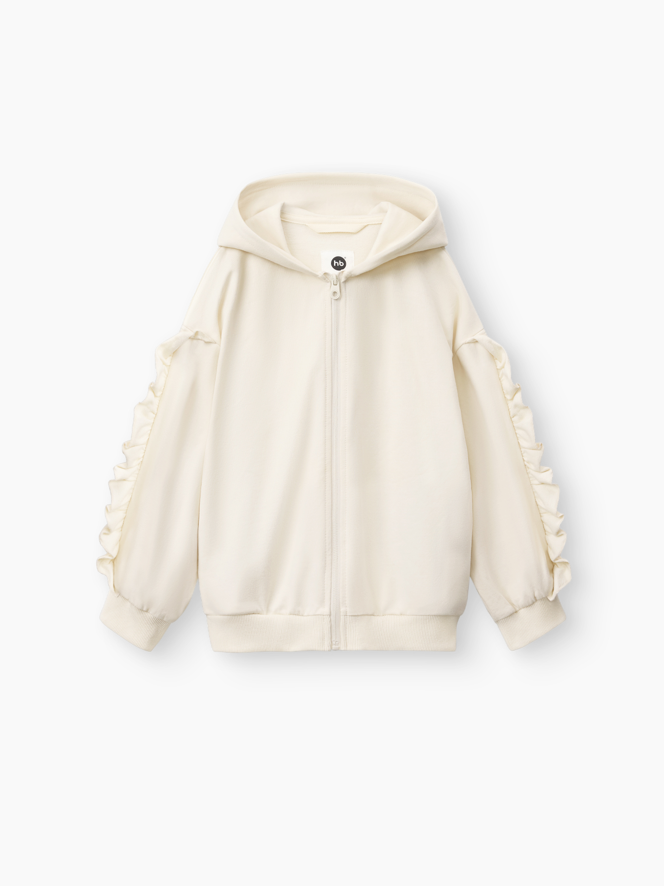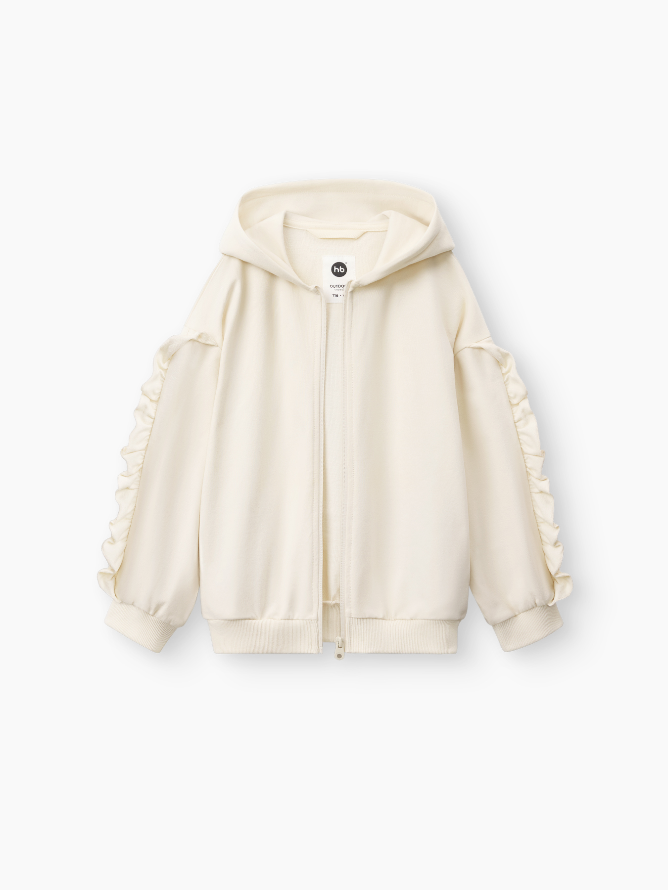 - Молочный цвет: декоративные рюши на рукавах и необычный капюшон с проволочным каркасом, позволяющим фиксировать его форму.