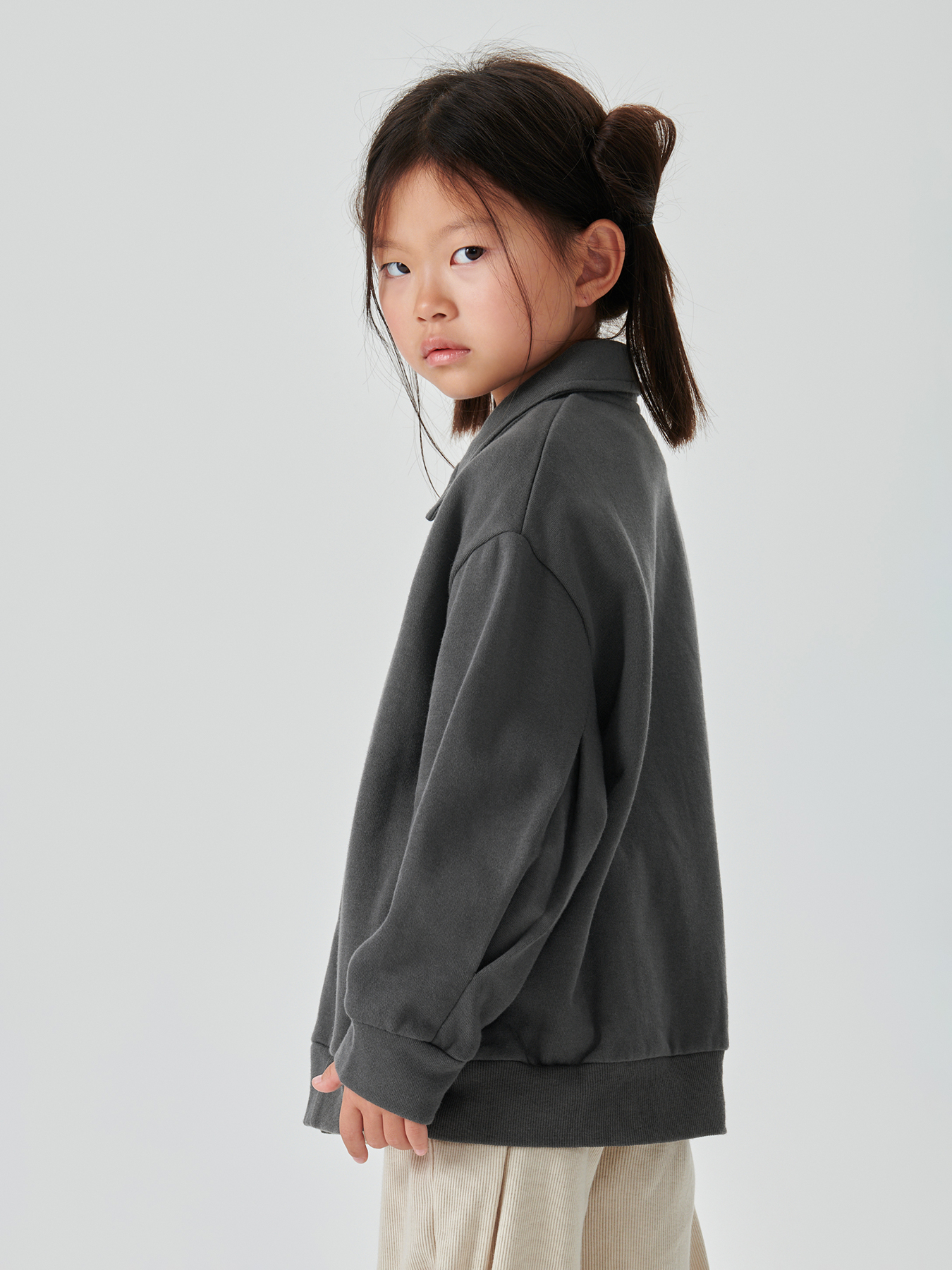 Толстовку с воротником «поло» можно носить под верхнюю одежду зимой или вместо ветровки летом. Благодаря классическому силуэту толстовка легко сочетается с одеждой разных стилей. Резинка по линии низа и манжеты на рукавах защищают от ветра. В боковые карманы можно убрать руки. Отложной воротник защищает от холода шею.
