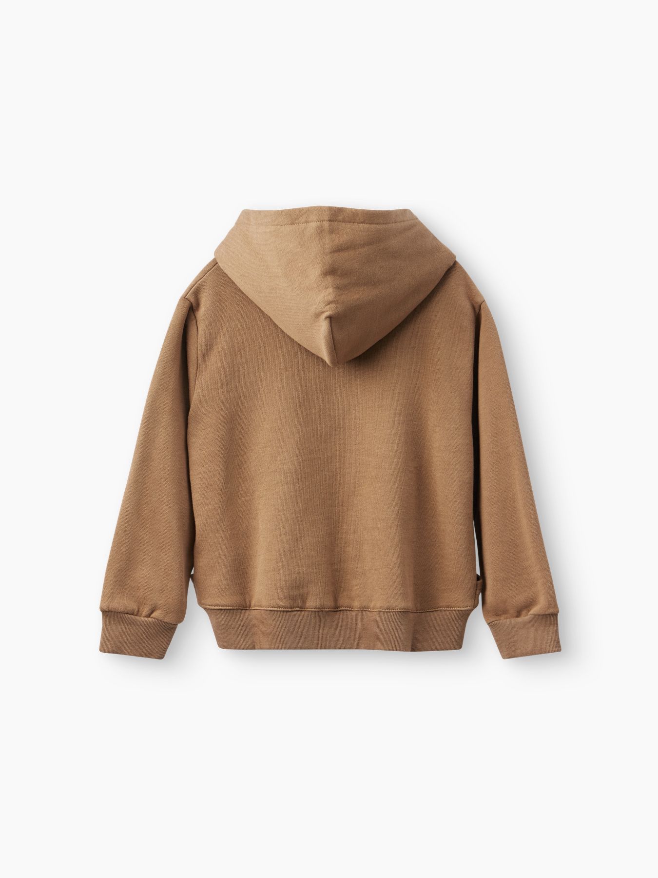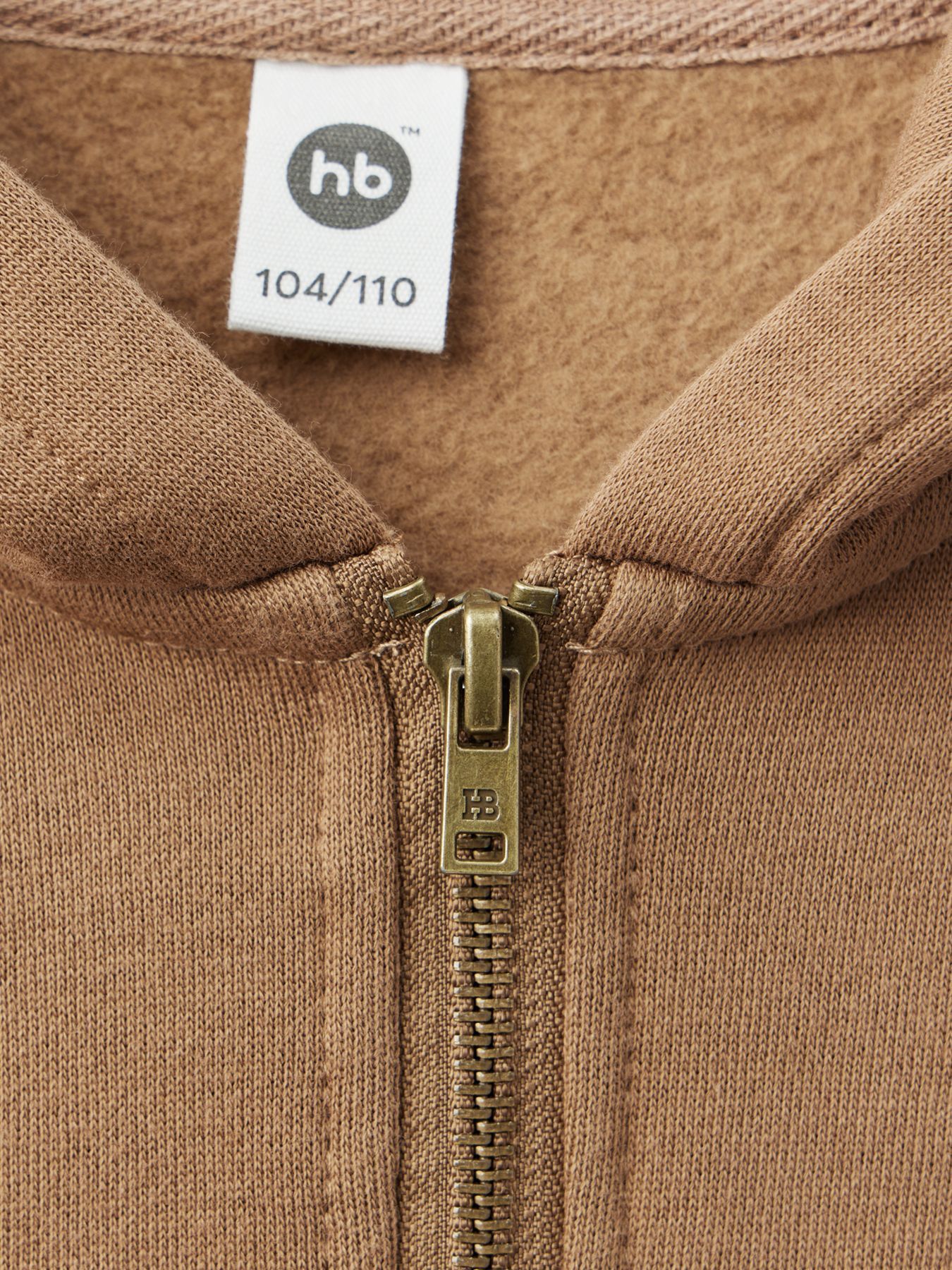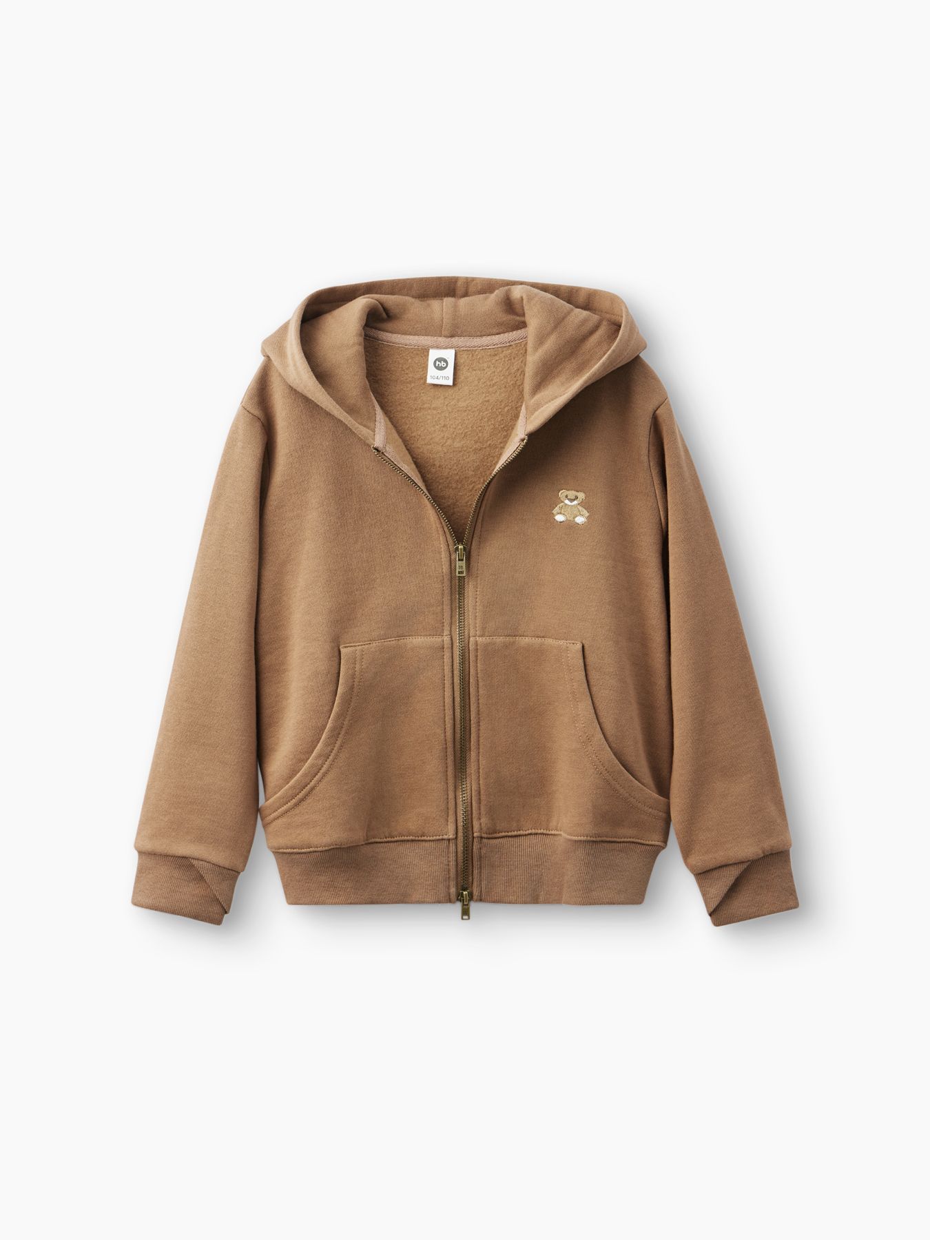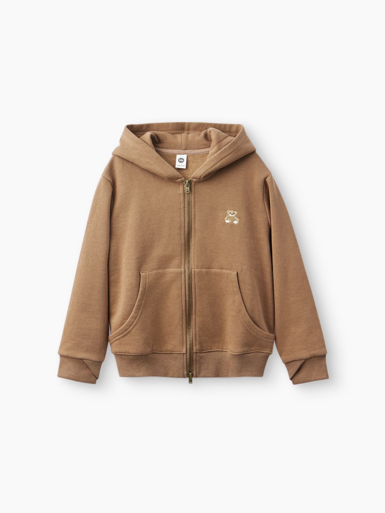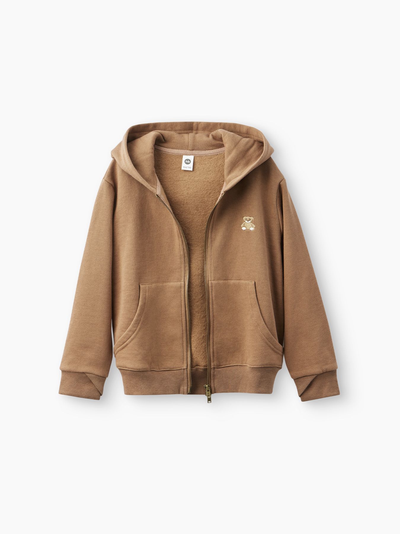 Толстовка на молнии позволит каждый день создавать новые многослойные образы. Изделие легко надевать и снимать: понравится детям, которые испытывают дискомфорт от вещей с плотной горловиной. Манжеты на рукавах и резинка по низу изделия защитят от ветра. В накладные карманы спереди можно спрятать руки. Капюшон не спадает и помогает дополнительно утеплиться. Спущенная линия плеча обеспечивает свободную посадку.