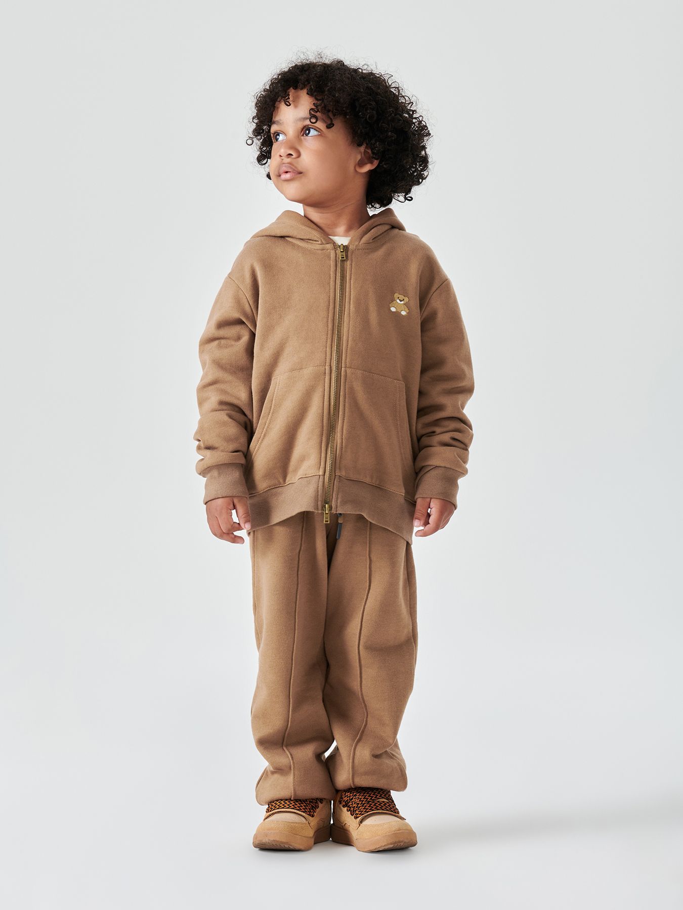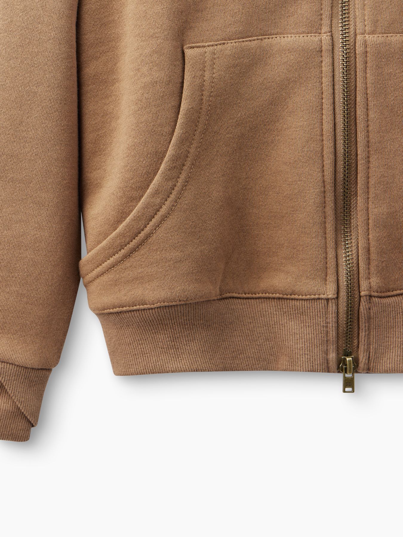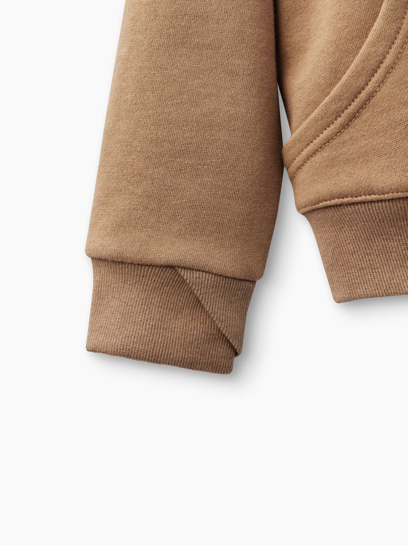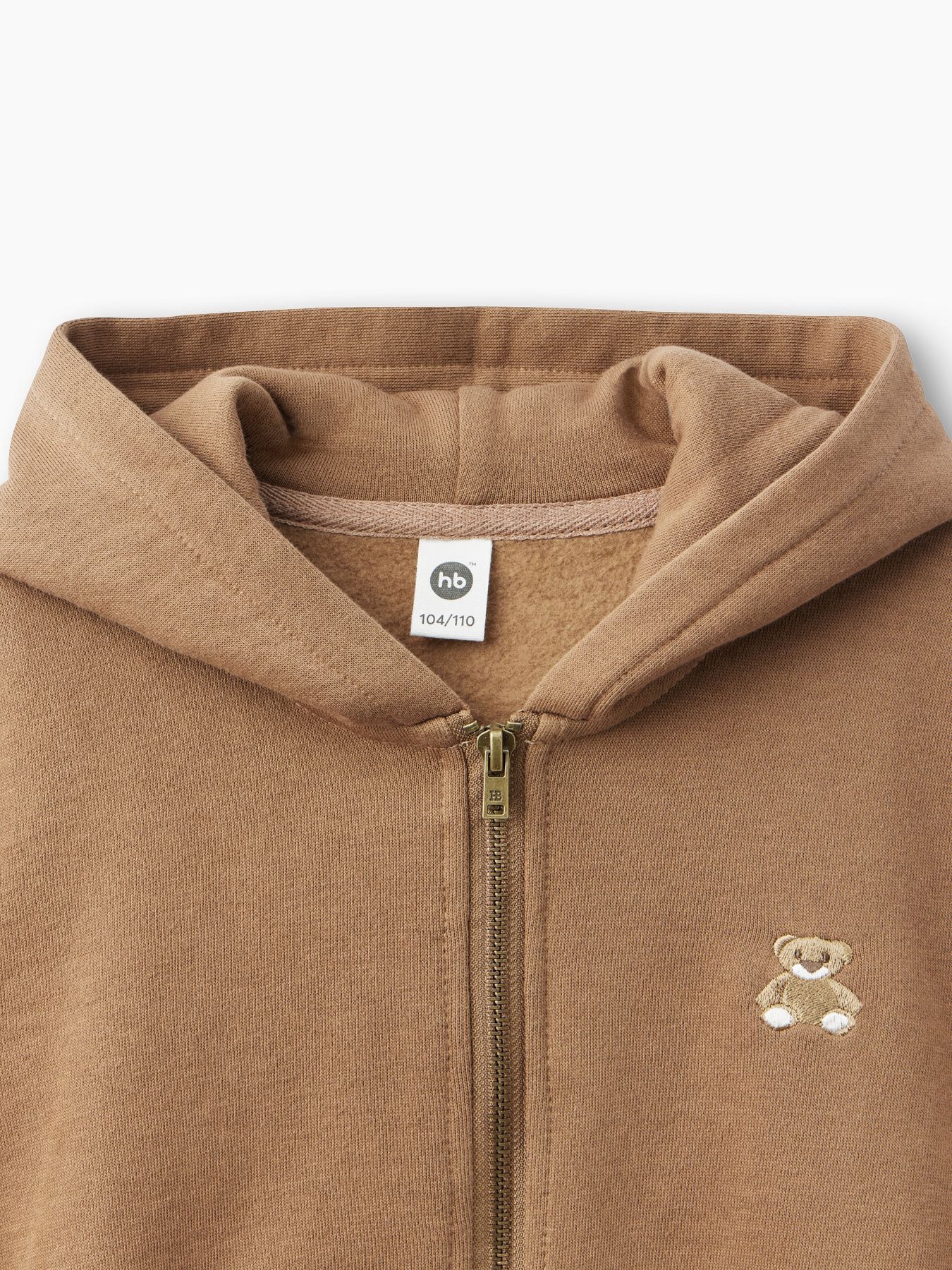 Толстовка на молнии позволит каждый день создавать новые многослойные образы. Изделие легко надевать и снимать: понравится детям, которые испытывают дискомфорт от вещей с плотной горловиной. Манжеты на рукавах и резинка по низу изделия защитят от ветра. В накладные карманы спереди можно спрятать руки. Капюшон не спадает и помогает дополнительно утеплиться. Спущенная линия плеча обеспечивает свободную посадку.