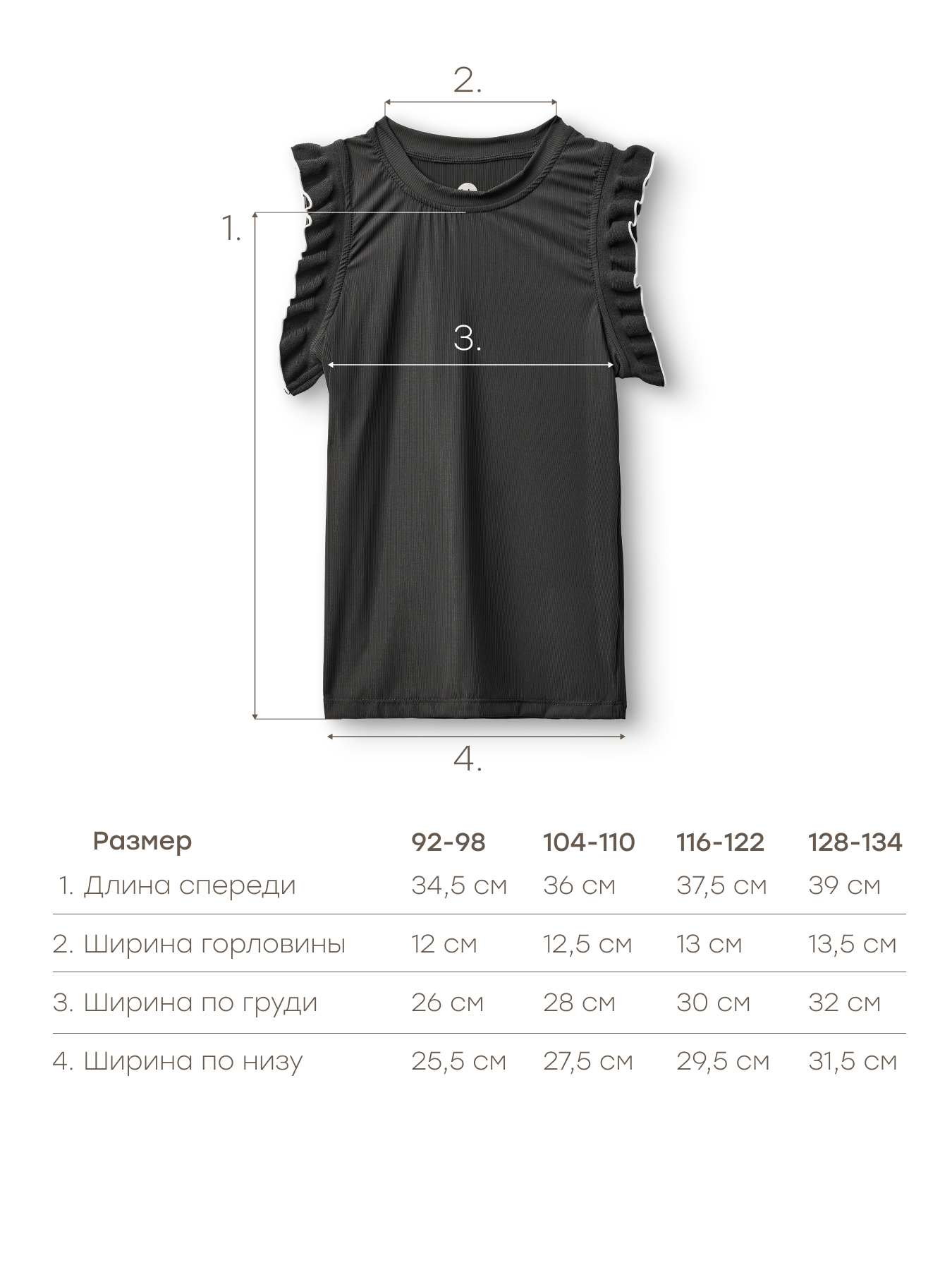Майка для девочки станет идеальным дополнением гардероба маленькой модницы. Этот топ отлично подходит как для повседневной носки, так и для особых случаев — рюши на рукавах напоминают крылышки и украсят любой образ. Особое внимание стоит уделить укрепленной горловине, которая обеспечивает дополнительную надежность и не растянется после стирки. Эластичный материал позволяет свободно двигаться и чувствовать себя уютно в течение всего дня, а дышащая ткань не даст ребенку запариться в жаркий летний день. Сочетание стильного дизайна и практичности делает эту модель универсальной. Майка детская также станет отличным выбором на летние прогулки или отдых у моря.