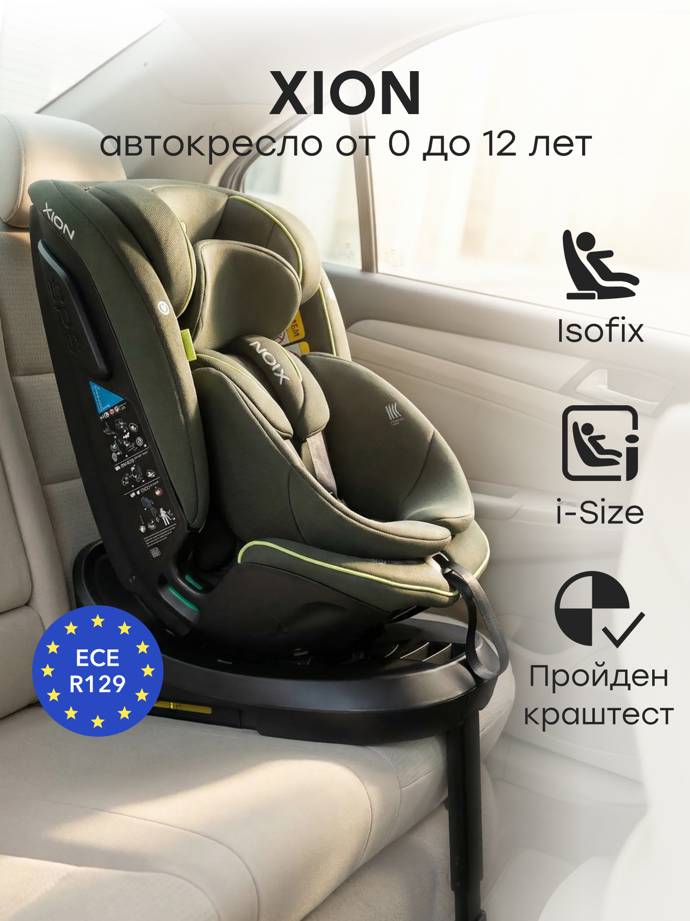 Детское поворотное автокресло от 0 XION — это надёжное и современное решение для безопасных путешествий с рождения и до 12 лет (0-36 кг). Модель разработана с учётом анатомии ребёнка и полностью соответствует европейскому стандарту безопасности i-Size (ECE R129). Растущее автокресло 0-36 кг сочетает в себе безопасность, практичность и стиль. С ним любая поездка пройдёт спокойно, а родители могут быть уверены — их малыш надёжно защищён.