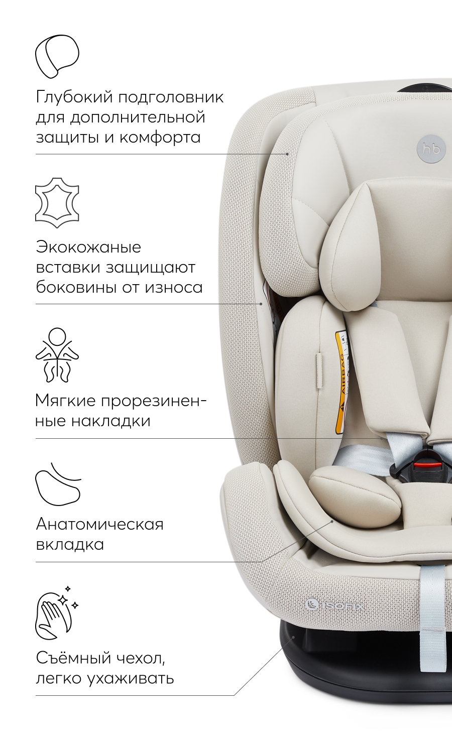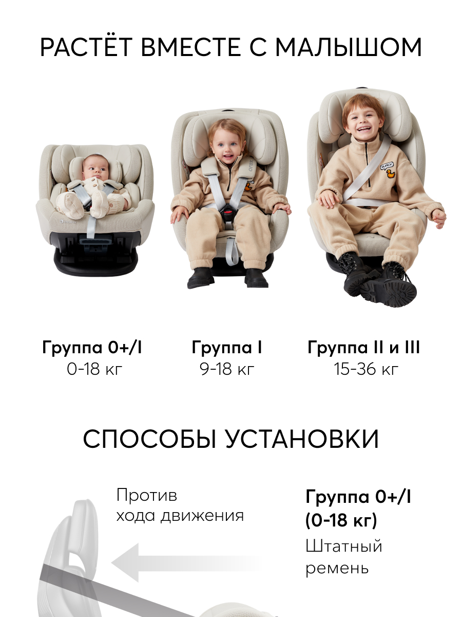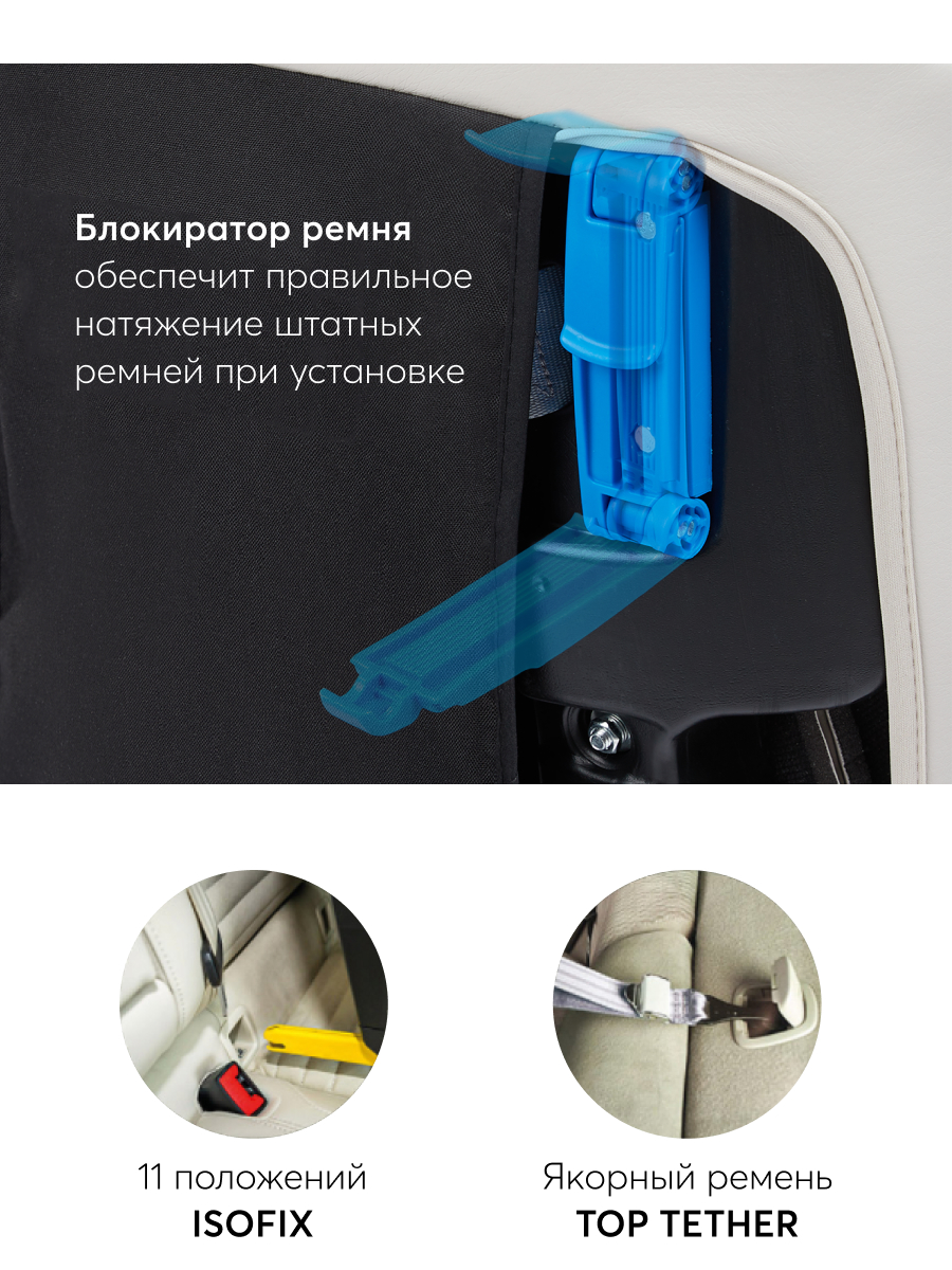 • Комбинированная система крепления — ISOFIX + якорное крепление Top Tether + штатный ремень автомобиля для быстрой и простой установки