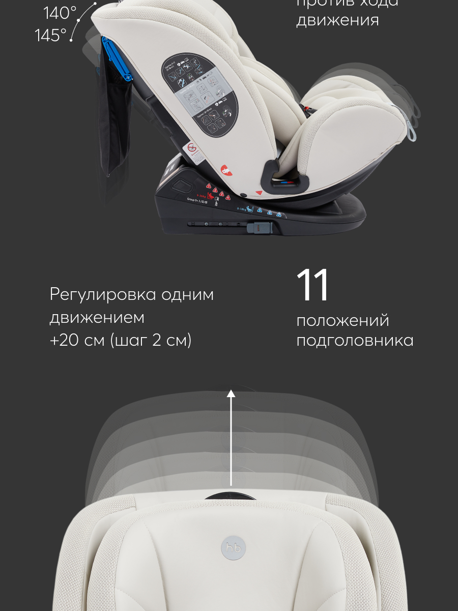 • 11 положений подголовника и 7 положений наклона спинки — подстройка под рост и предпочтения ребёнка от 0 до 12 лет