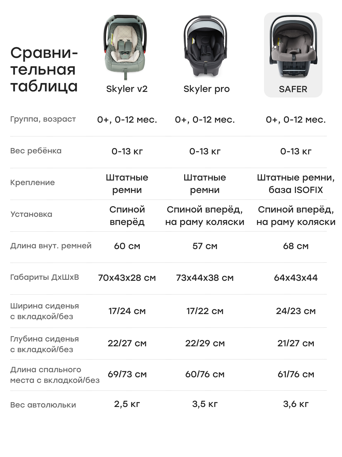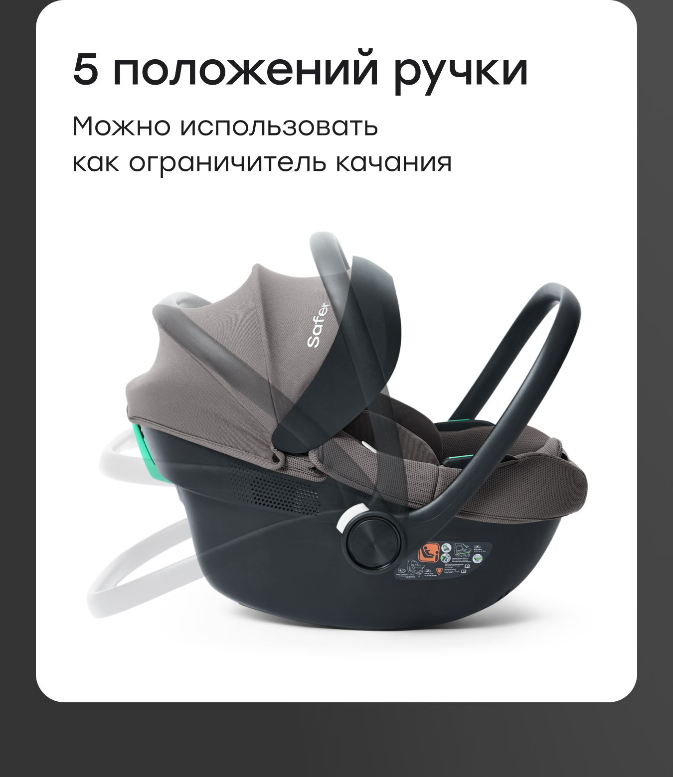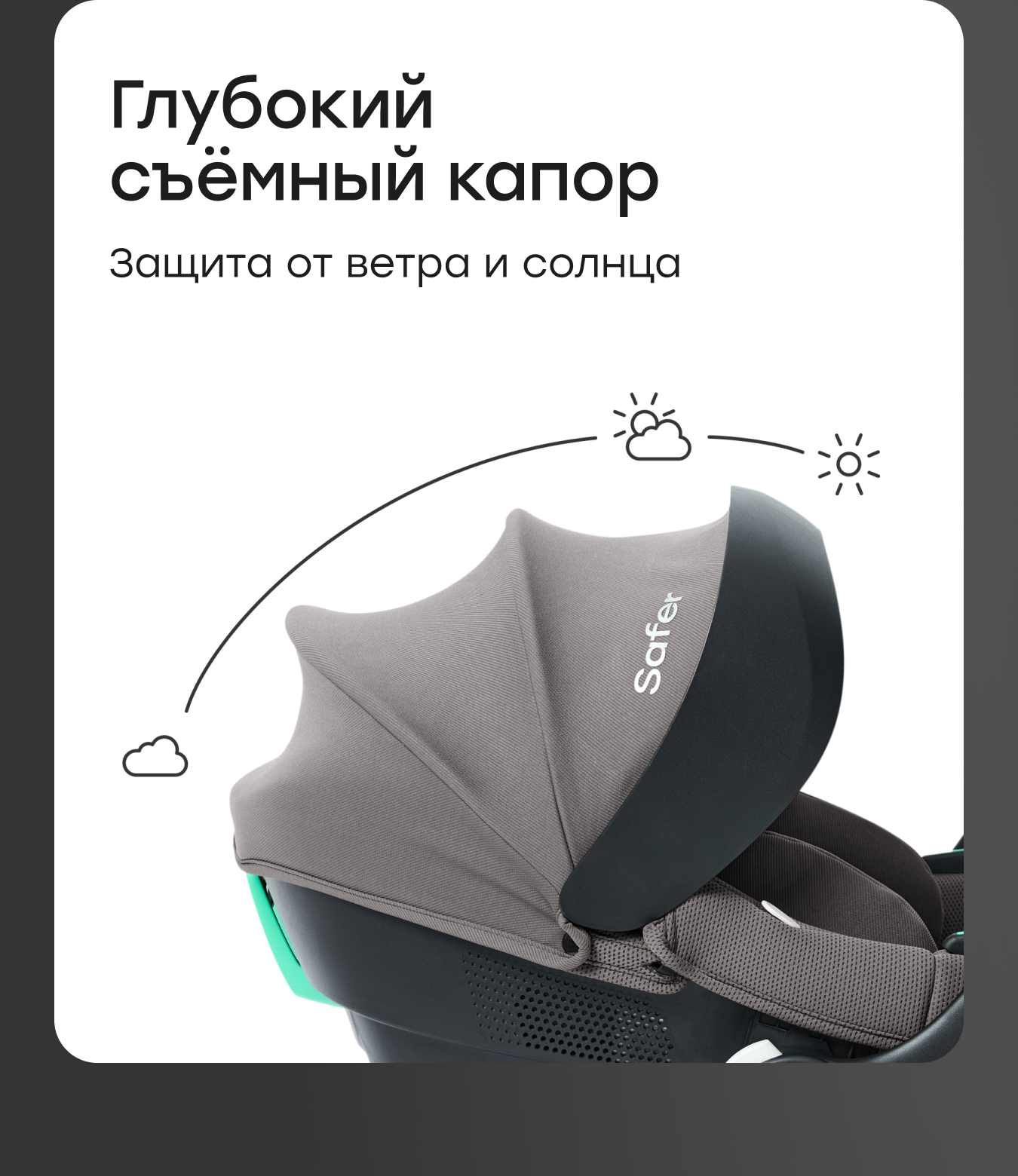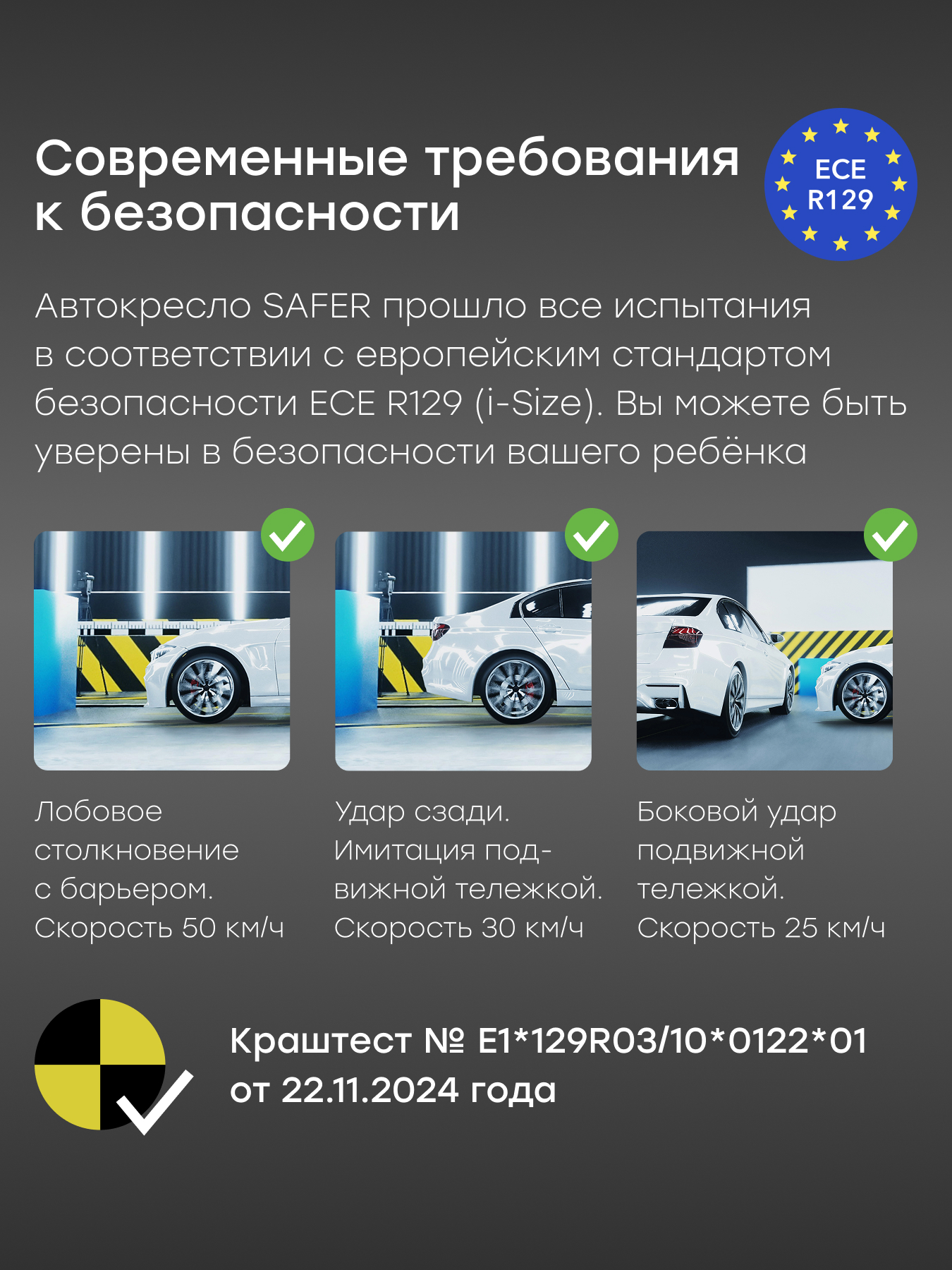 Автокресло SAFER – это сочетание современных стандартов безопасности и максимального комфорта для самых маленьких пассажиров. Предназначено для детей с самого рождения и до достижения веса 13 кг или роста 87 см, оно идеально подходит для первых путешествий вашего малыша. Кресло оснащено пятиточечными ремнями с мягкими накладками, которые надежно фиксируют ребенка и не травмируют его кожу. Анатомическая подушка обеспечивает поддержку позвоночника и комфорт новорожденным, а возможность регулировки подголовника в 6 положениях позволяет подстроить автокресло под рост ребенка. Легкий вес (3,6 кг) и удобная ручка для переноса делают SAFER идеальным решением для путешествий и ежедневных поездок. Капюшон защитит от солнца, создавая уютное пространство для сна и отдыха малыша. Автокресло устанавливается спиной вперед с использованием штатных ремней безопасности. Совместимость с поворотной базой i-BASE позволяет сделать процесс установки еще более удобным. Автокресло проходит обязательные краш-тесты (номер краштеста: № E1*129R03/10*0122*01 от 22.11.2024 года) при сертификации (сертификат безопасности детских кресел ECE R129/03).