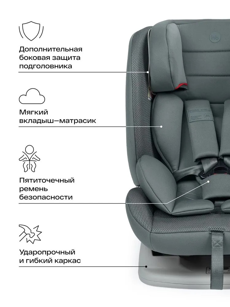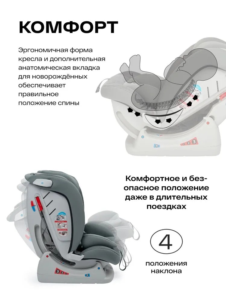 • В комплекте анатомическая подушка, мягкие накладки на внутренние ремни