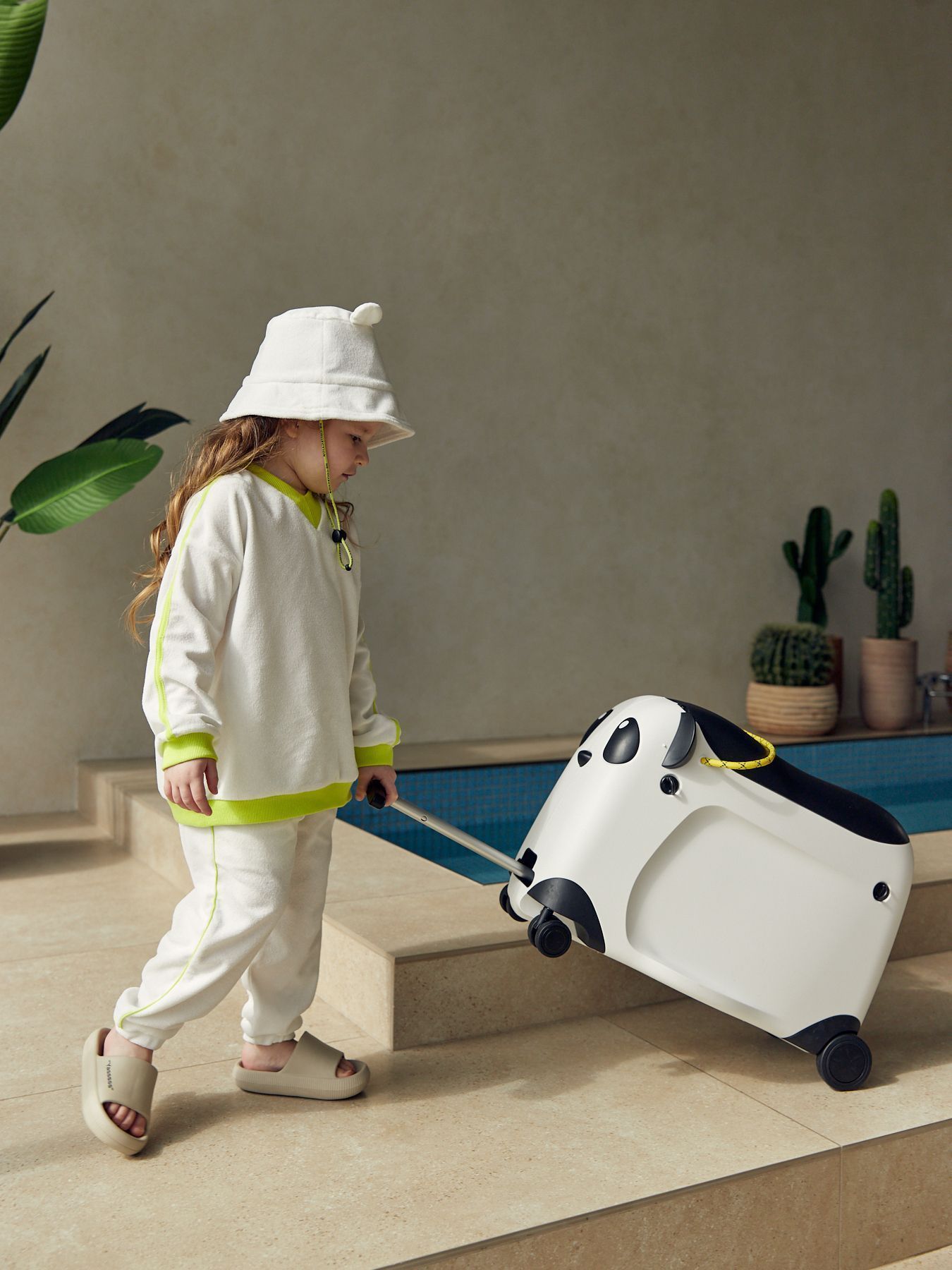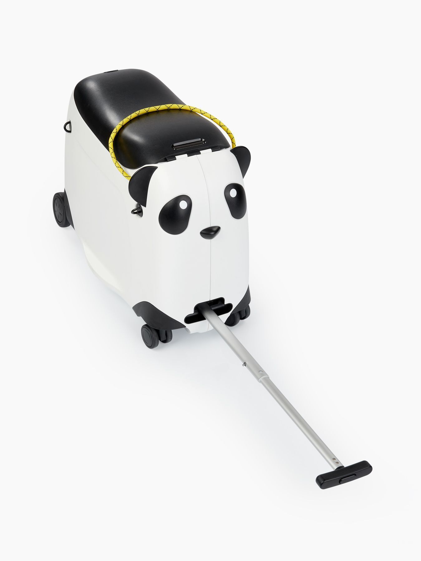Чемодан-каталка позволит ребёнку почувствовать себя настоящим взрослым путешественником. Собирая собственный чемодан, малыш научится оценивать вещи по приоритету и быть самостоятельным. Чемодан имеет откидное сиденье и загружается вертикально. Есть несколько вариантов транспортировки: ребёнку будет удобно браться за тканевую ручку сверху, а взрослым катить чемодан за телескопическую ручку или использовать плечевой ремень.