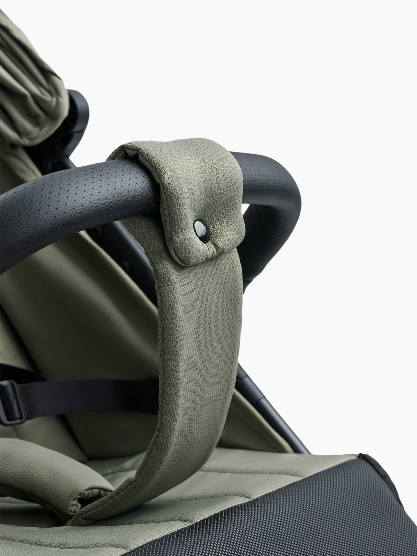 • Откидной съемный бампер — дает возможность легко вытащить ребенка из коляски