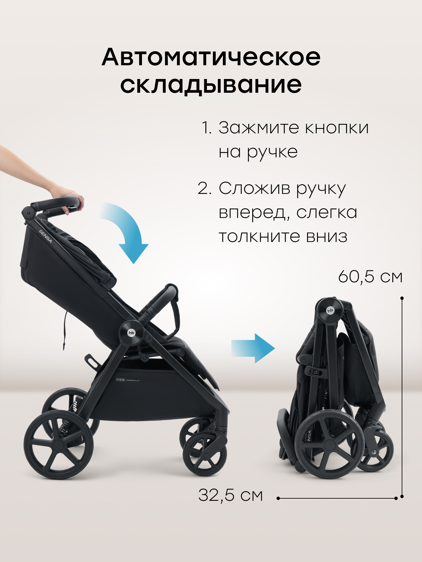 • Управление одной рукой и автоматическое складывание — делает модель универсальной и простой в использовании, благодаря продуманной конструкции