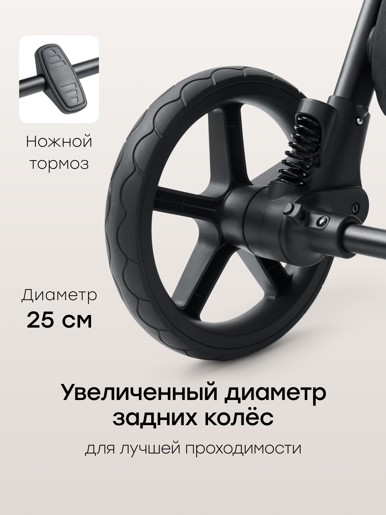 • Пружины амортизации на задней оси — облегчают движение на неровных поверхностях, оберегая ребёнка от тряски и толчков при езде