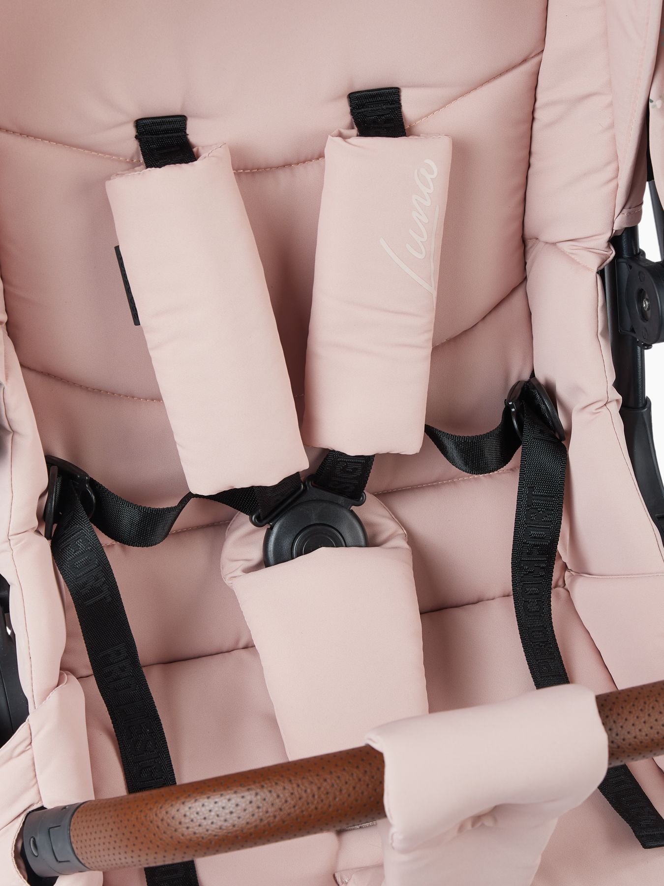 Изящная LUNA создана для долгих приятных прогулок, а благодаря низкому весу и простой системе складывания удобна для путешествий. У LUNA реверсивный блок – устанавливайте сиденье по ходу движения или лицом к родителям. Наклон спинки регулируется – 110ᵒ, 140ᵒ и 170ᵒ. У подножки 2 положения – 180ᵒ для удобства во время сна и 240ᵒ для прогулок в сидячем положении. Передние колеса поворачиваются на 360° с возможностью фиксации и оснащены амортизаторами, поэтому коляска маневренная и легкая в управлении. Большие прочные колёса отлично преодолевают неровности на дорогах. Малыш надежно фиксируется пятиточечными ремнями, а для дополнительной безопасности и комфорта предусмотрен съемный бампер из экокожи. Капюшон с возможностью расширения до бампера защитит от солнца и непогоды. Для безопасности в тёмное время суток надпись на капюшоне и логотип на корзине светятся в темноте. Вместительная корзина для покупок позволит взять с собой всё необходимое. В комплекте: дождевик, тёплый чехол на ножки, москитная сетка.