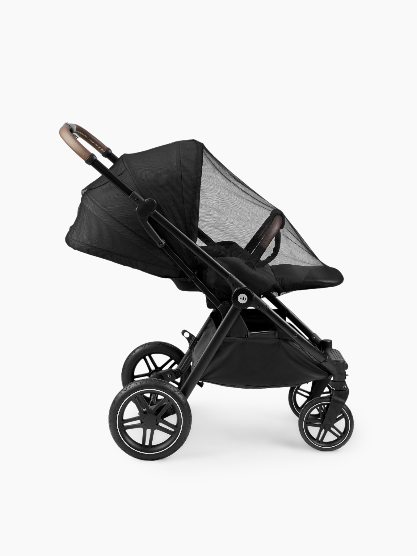 Передние колеса также вращаются на 360° для максимальной маневренности, облегчая управление даже одной рукой. Капюшон с возможностью расширения до бампера надежно защищает от солнца, дождя и ветра. Большая корзина позволит взять с собой все необходимое для прогулки.