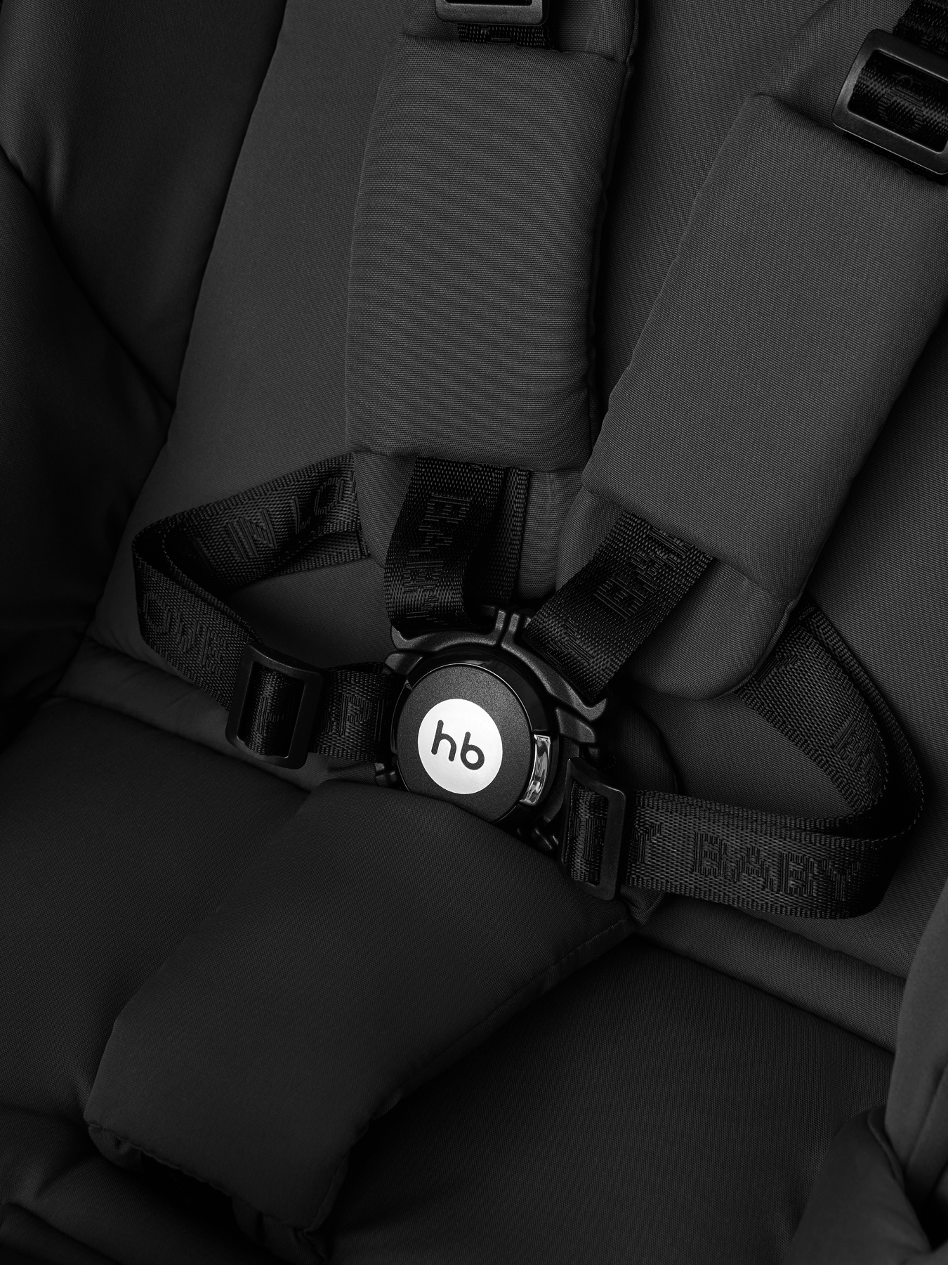 • Безопасность: откидной съемный бампер, магнитная пряжка на пятиточечных ремнях безопасности с мягкими накладками, стояночный тормоз блокирует оба задних колеса