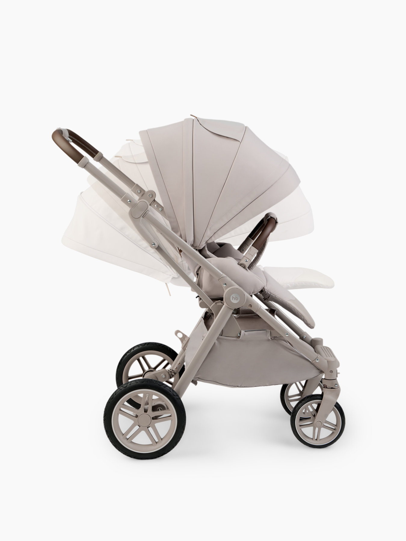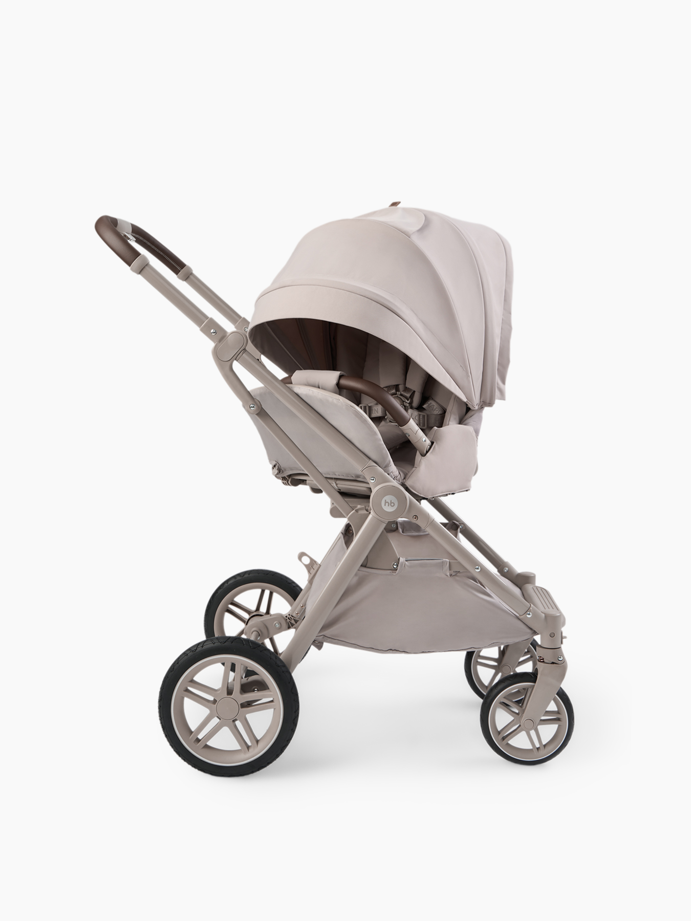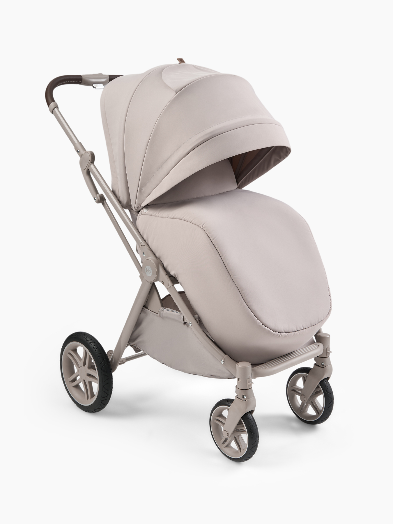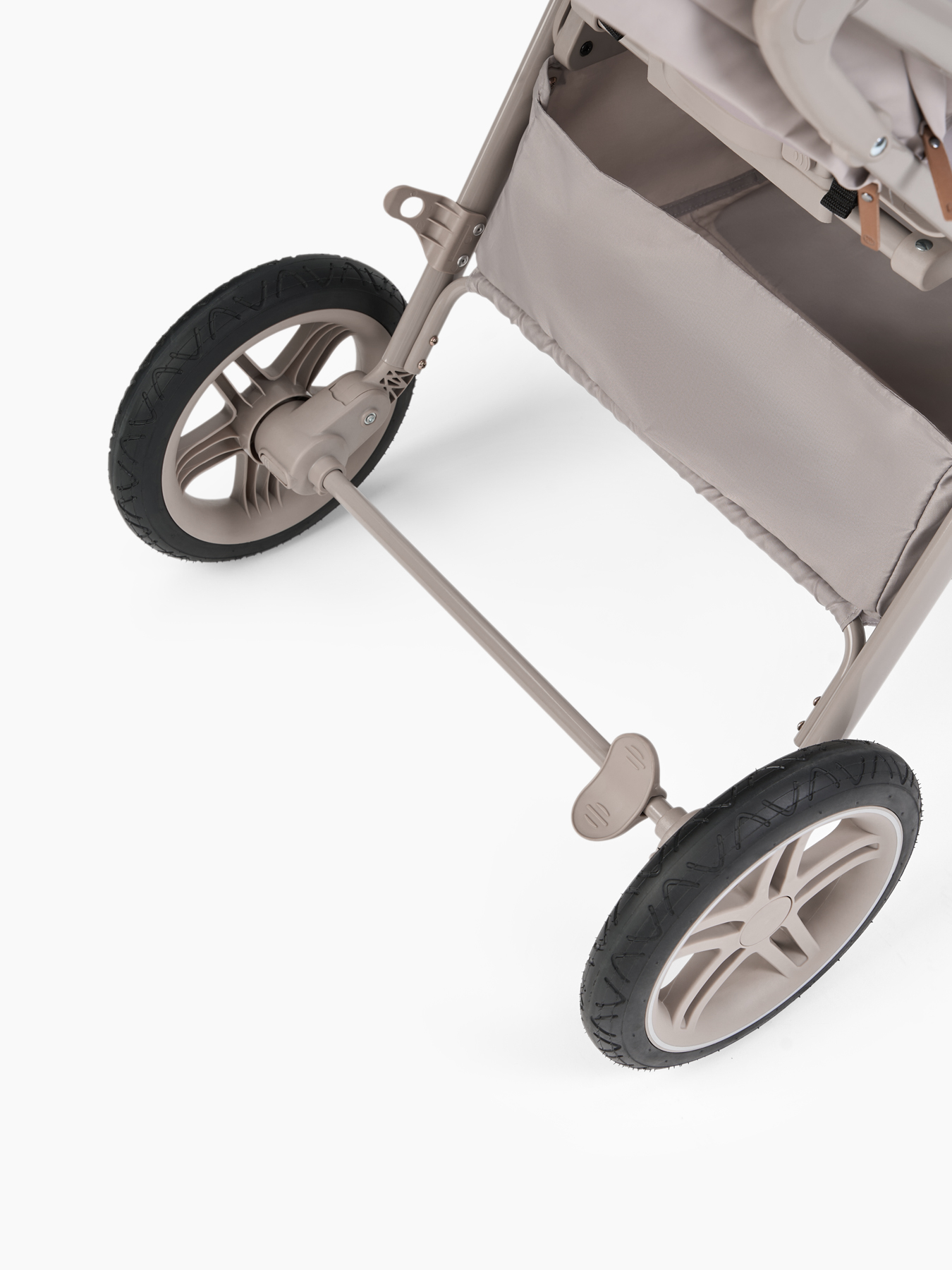 Передние колеса также вращаются на 360° для максимальной маневренности, облегчая управление даже одной рукой. Капюшон с возможностью расширения до бампера надежно защищает от солнца, дождя и ветра. Большая корзина позволит взять с собой все необходимое для прогулки.