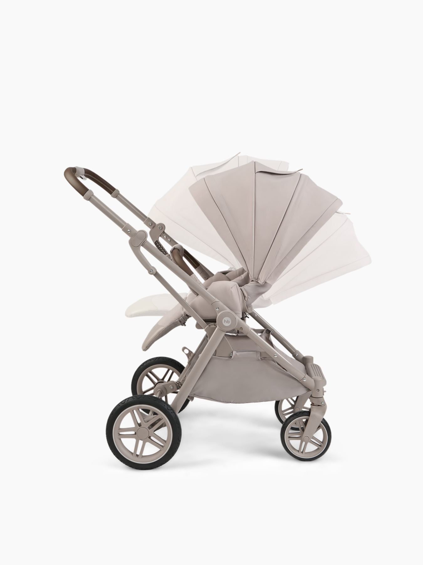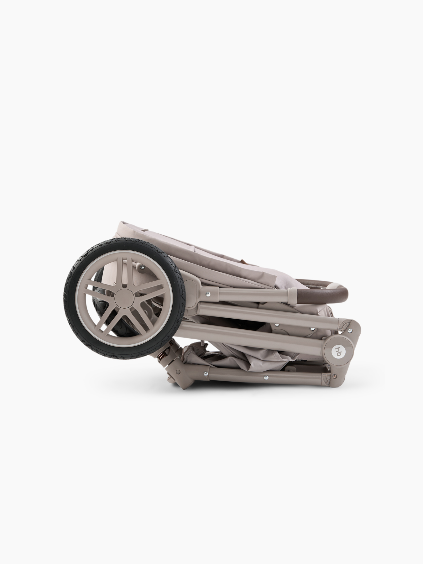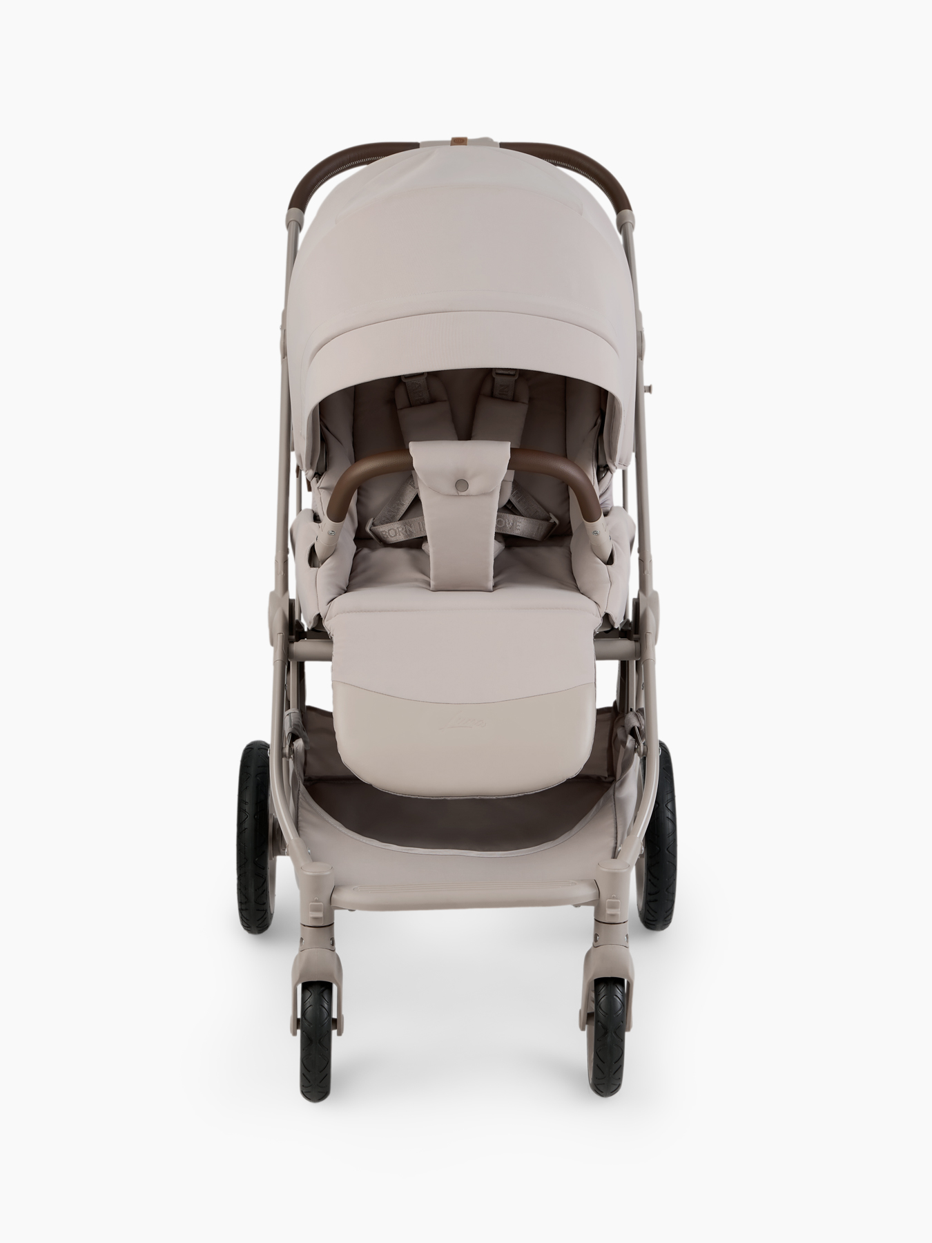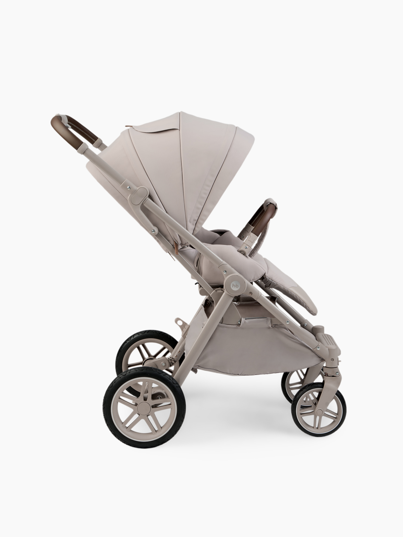 Передние колеса также вращаются на 360° для максимальной маневренности, облегчая управление даже одной рукой. Капюшон с возможностью расширения до бампера надежно защищает от солнца, дождя и ветра. Большая корзина позволит взять с собой все необходимое для прогулки.