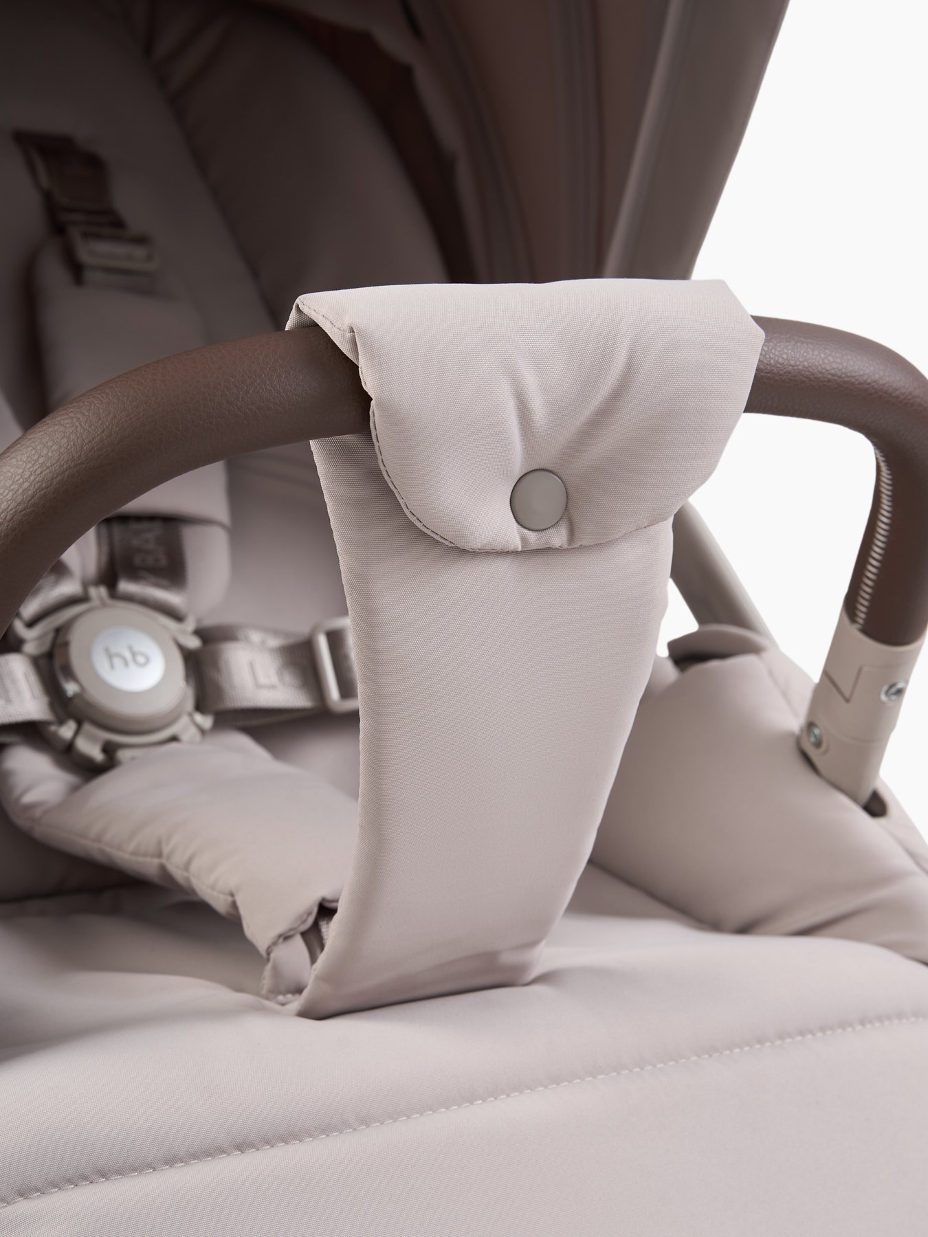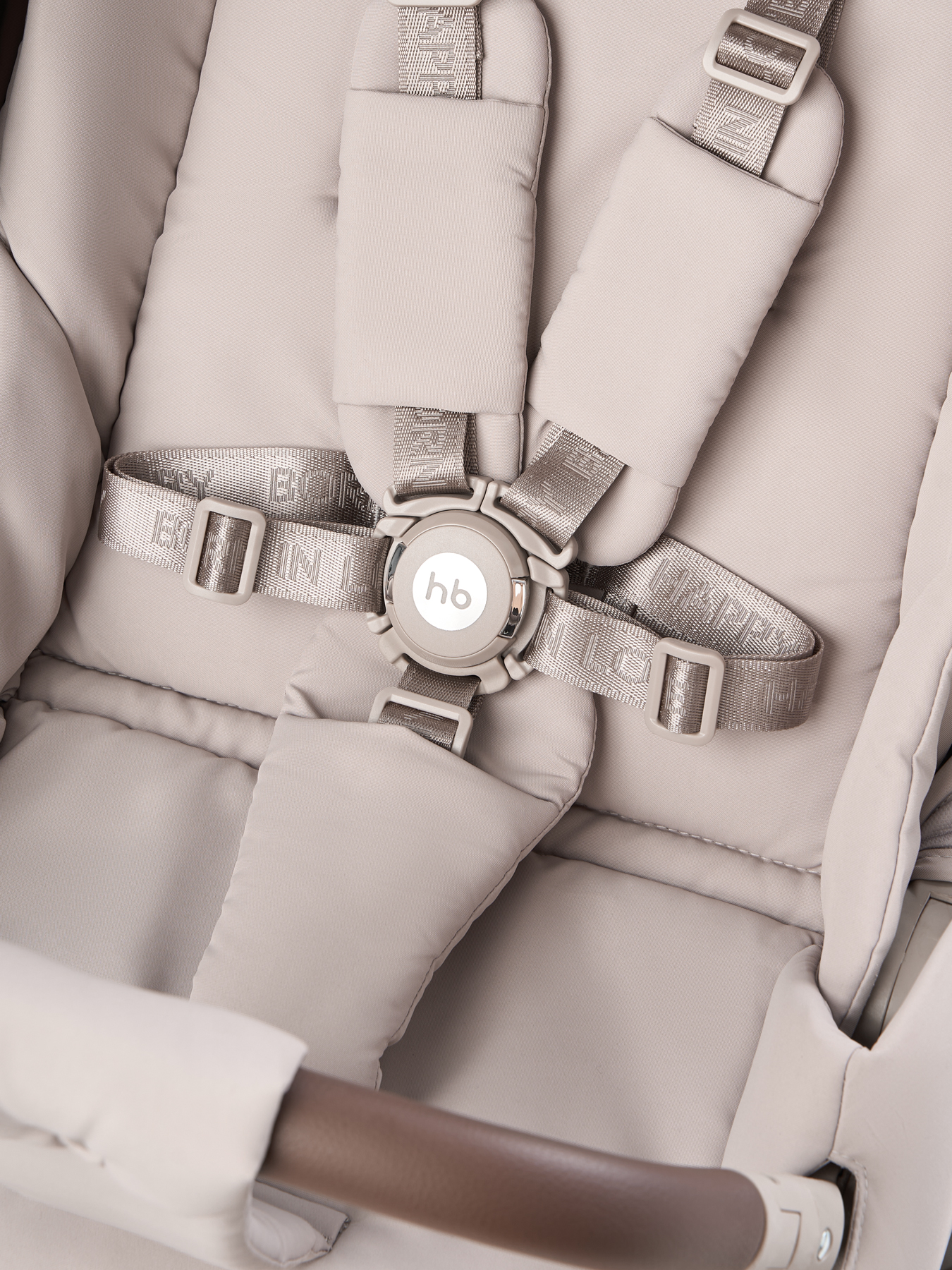 • Безопасность: откидной съемный бампер, магнитная пряжка на пятиточечных ремнях безопасности с мягкими накладками, стояночный тормоз блокирует оба задних колеса