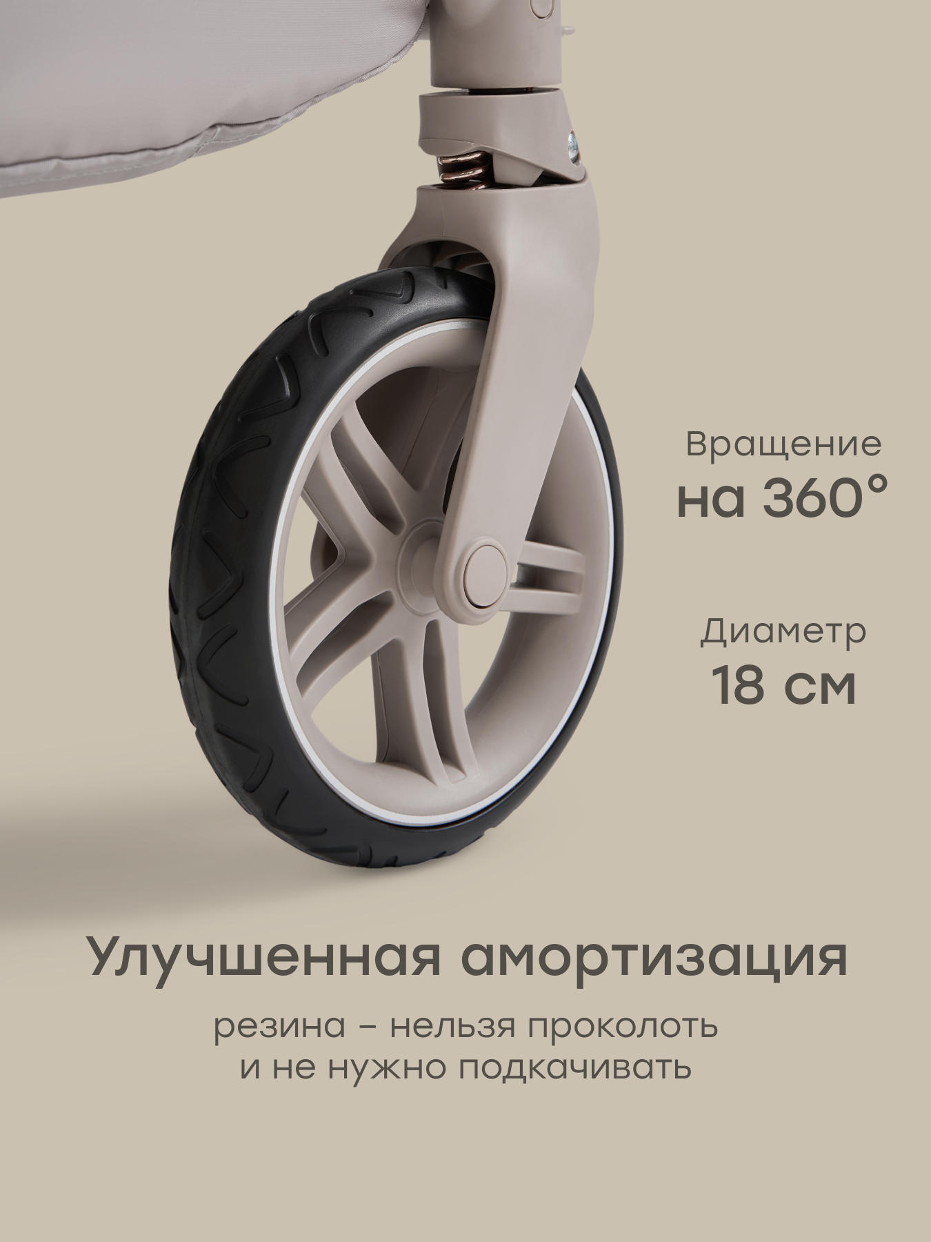 • Колеса вращаются на 360 градусов — плавный и точный разворот на месте, отличная маневренность с амортизацией четырех колес