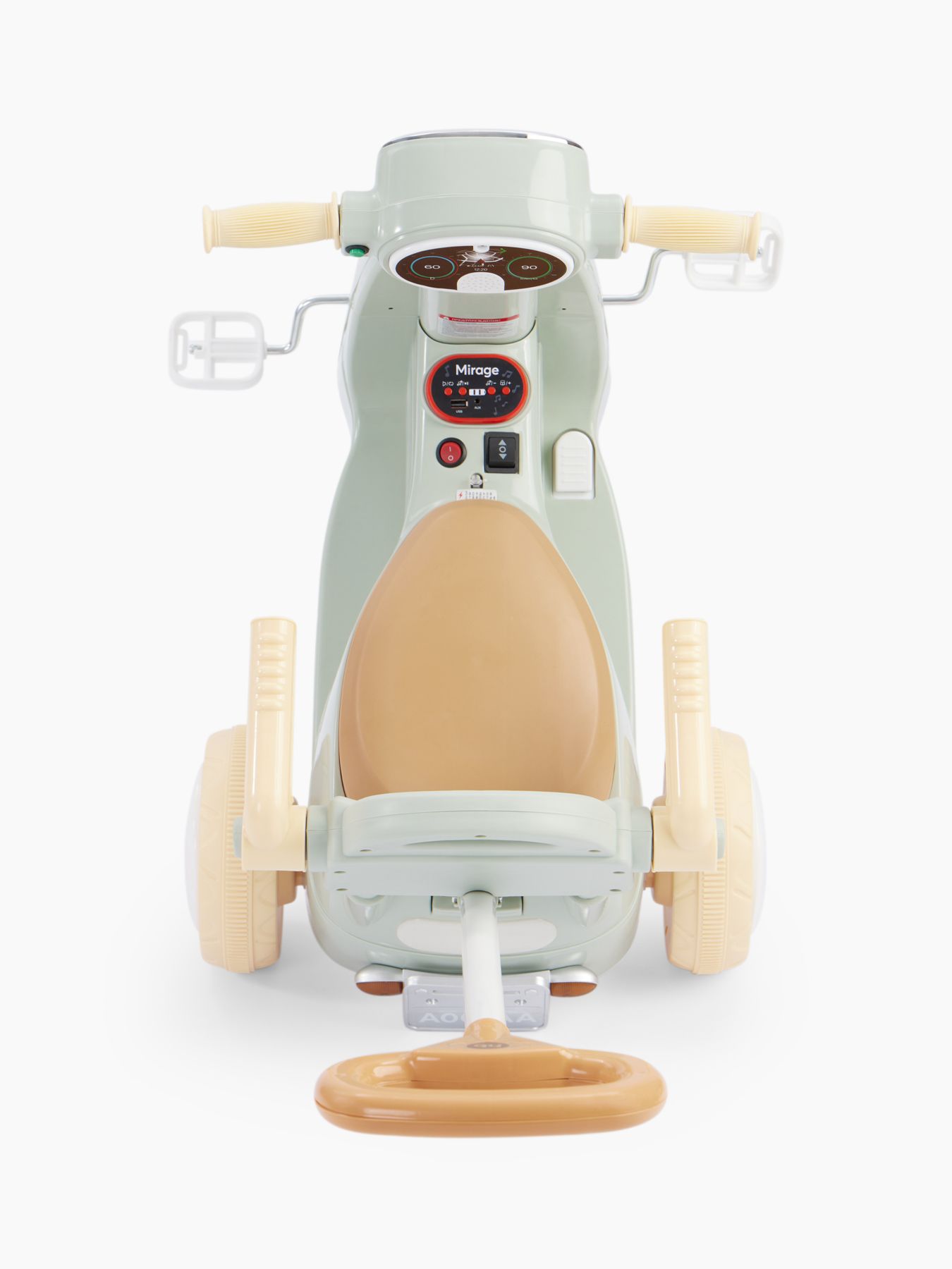 MIRAGE – каталка, трехколесный велосипед и электромопед в одном. Малыш может кататься на ней, отталкиваясь ножками, крутя педали или самостоятельно, нажав ногой на педаль «газа». Также движением могут управлять взрослые с помощью пульта управления, когда ребенок самостоятельно рулит.