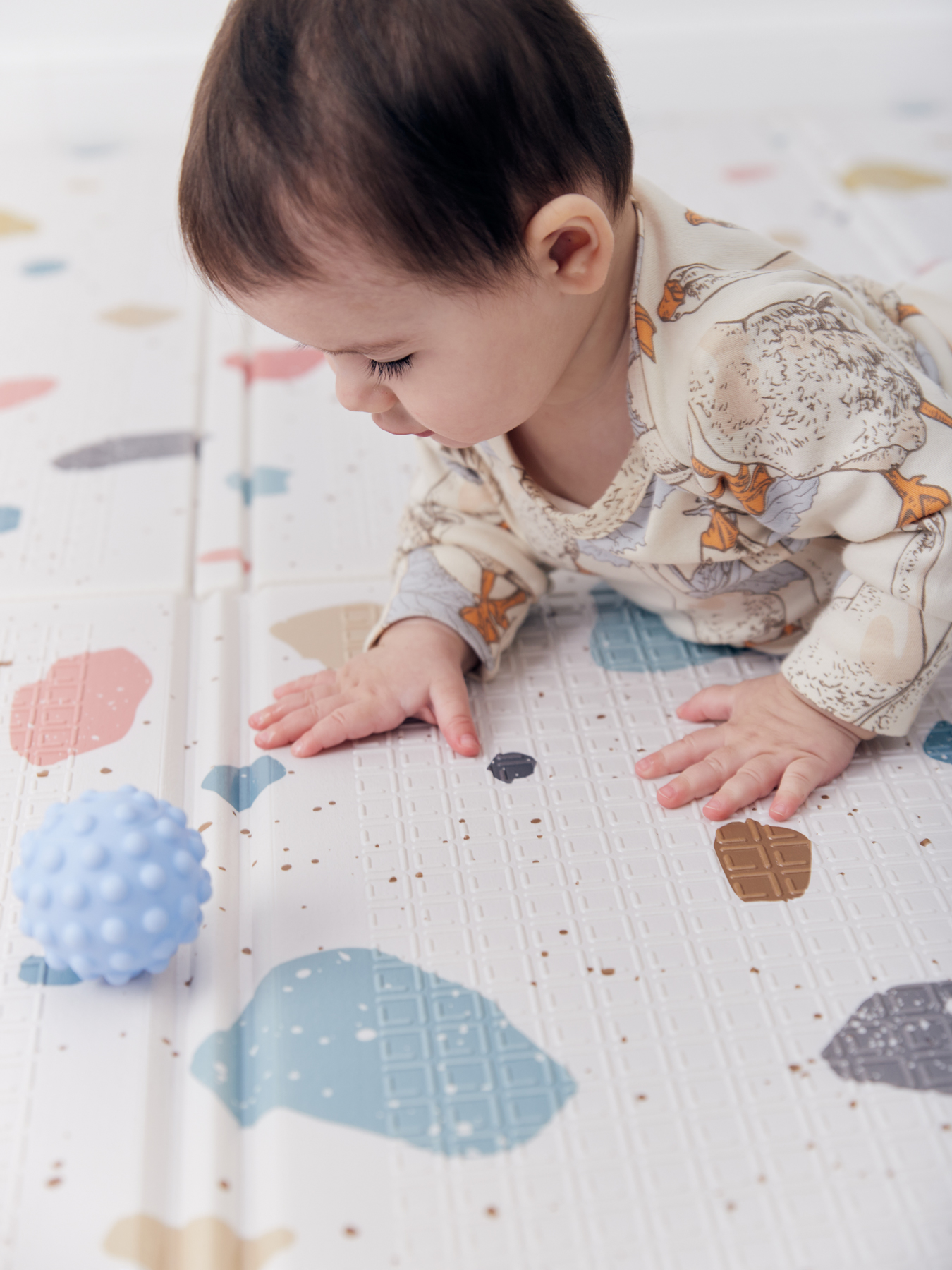 Складной коврик SOFT FLOOR подходит для малышей с первых месяцев жизни. Складывается гармошкой и экономит место в квартире. Коврик можно разложить не полностью – в зависимости от доступной вам площади. Сделан из плотного непромокаемого материала, который легко моется. Рельефная поверхность обладает массажным эффектом, развивает тактильное восприятие. Спокойные цвета не перегружают нервную систему малыша.