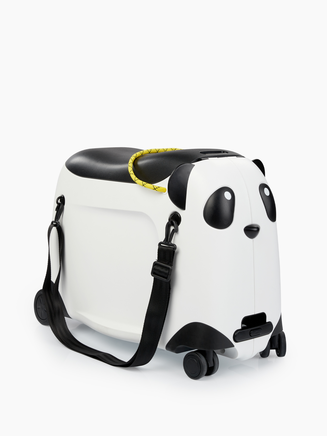 Чемодан-каталка позволит ребёнку почувствовать себя настоящим взрослым путешественником. Собирая собственный чемодан, малыш научится оценивать вещи по приоритету и быть самостоятельным. Чемодан имеет откидное сиденье и загружается вертикально. Есть несколько вариантов транспортировки: ребёнку будет удобно браться за тканевую ручку сверху, а взрослым катить чемодан за телескопическую ручку или использовать плечевой ремень.