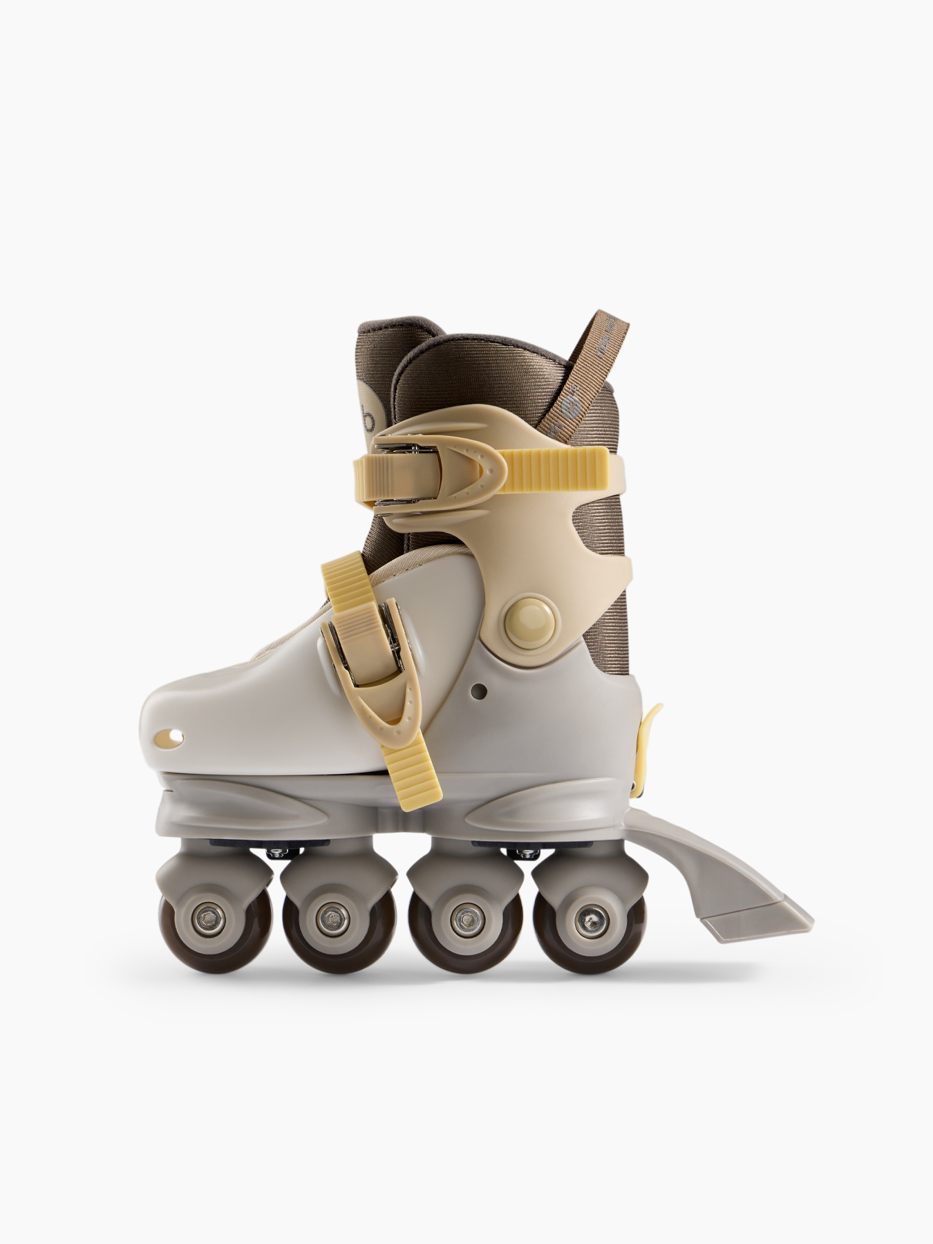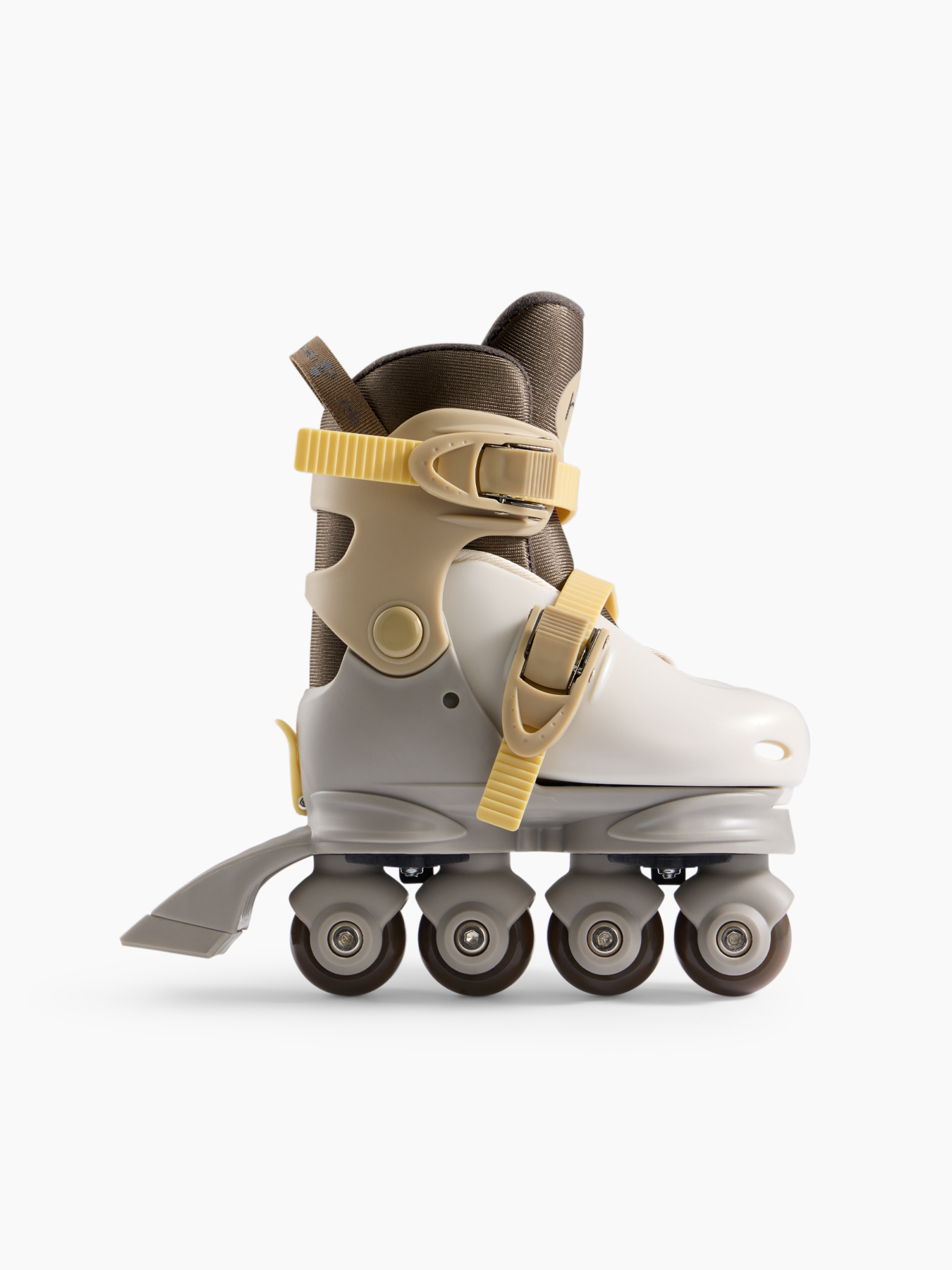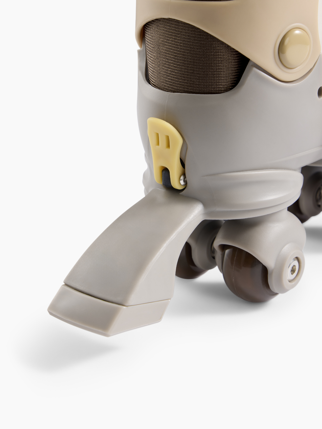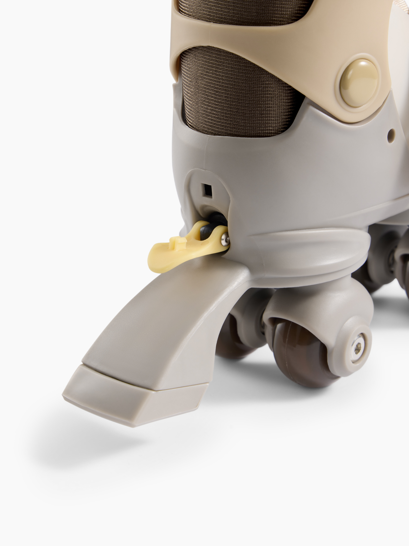• Раздвижная система на 4 размера — плавная регулировка с помощью кнопки-фиксатора на пятке без использования дополнительных инструментов, позволяет роликам расти вместе с ребенком.