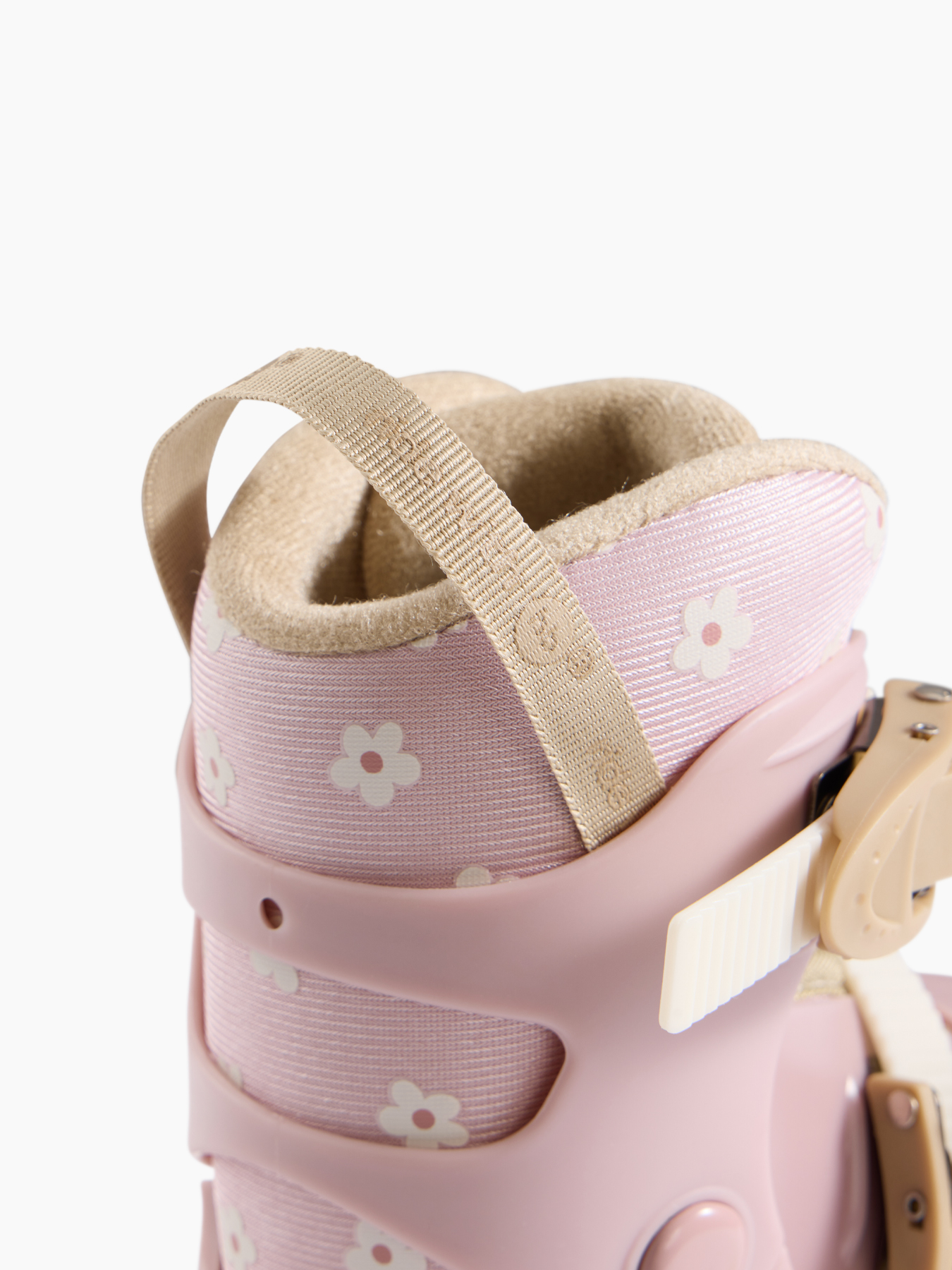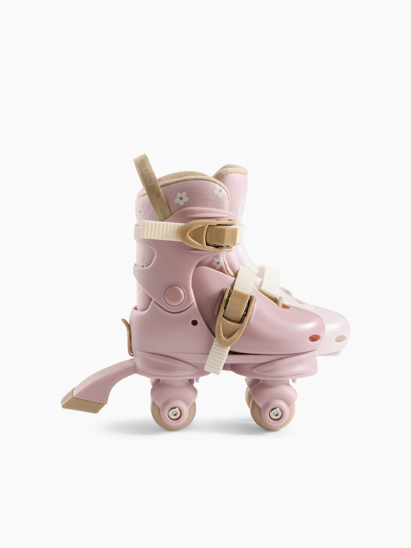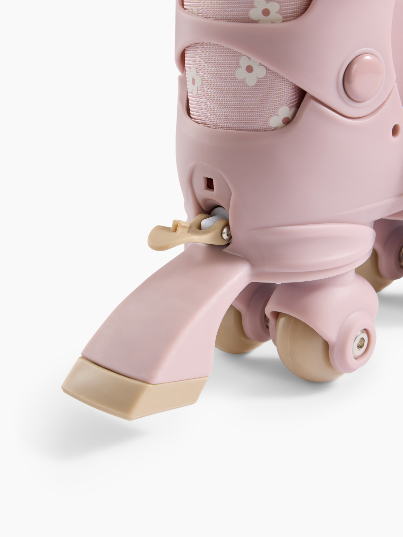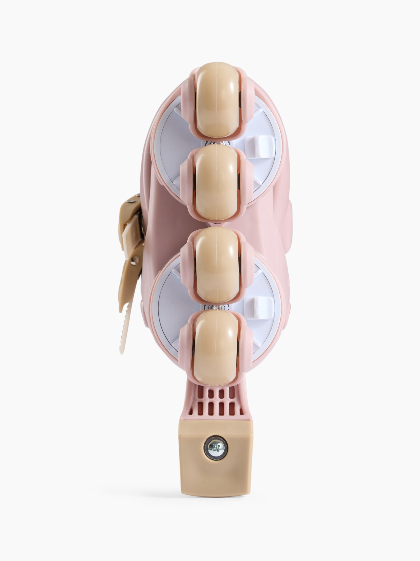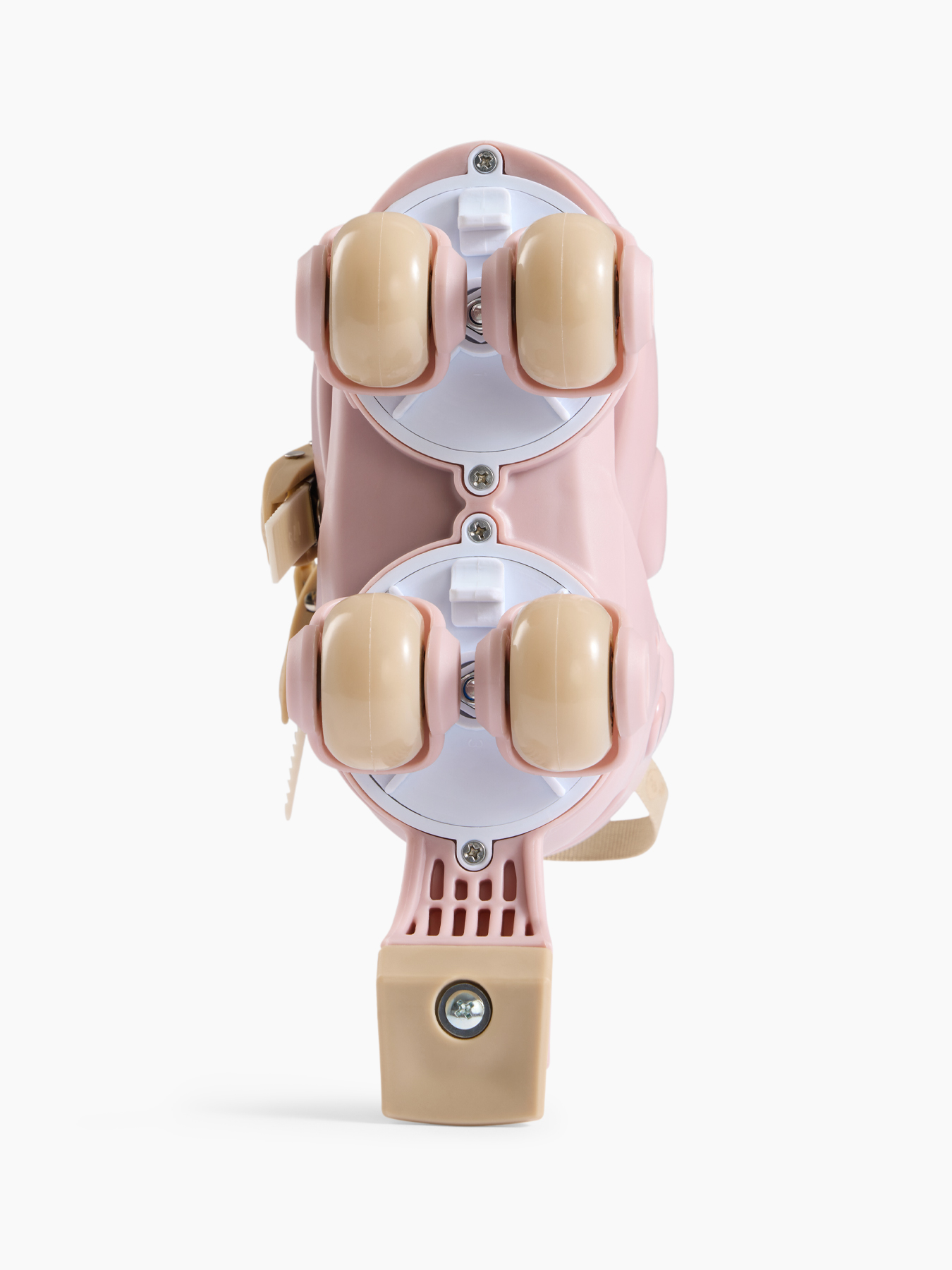 • Раздвижная система на 4 размера — плавная регулировка с помощью кнопки-фиксатора на пятке без использования дополнительных инструментов, позволяет роликам расти вместе с ребенком.